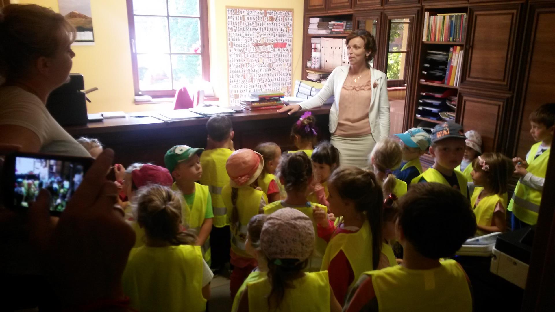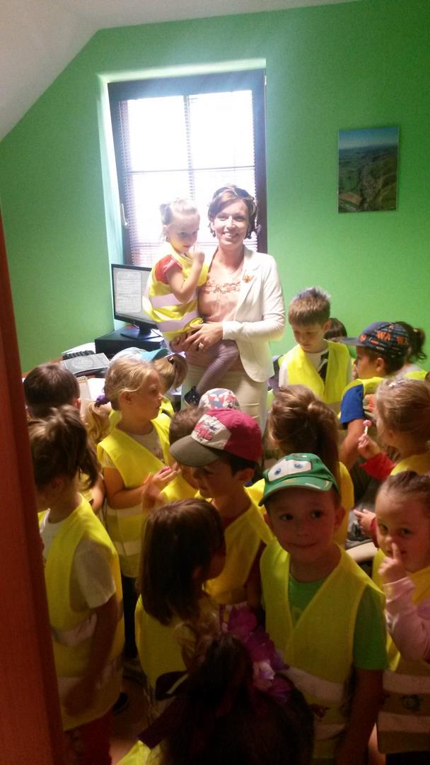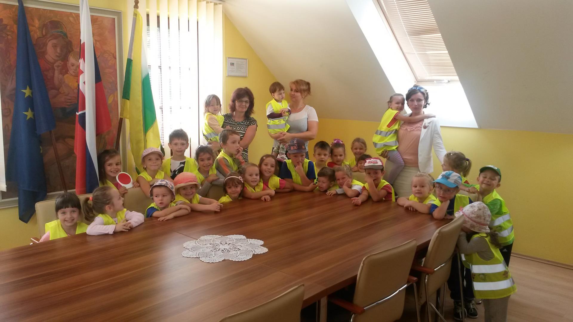 Vo štvrtok 17. septembra 2015 prišla na obecný úrad milá a pre nás veľmi vzácna návšteva. O 10.00 hodine pani starostka v zasadačke privítala deti spolu s pani učiteľkami z našej materskej školy. Návšteva detí bola zaujímavá a aj užitočná. Pani starostka deťom porozprávala o tom ako sa na úrade pracuje a ukázala im všetky kancelárie. Deti si preverili aj svoje vedomosti. Určovali vlajky - obecnú, slovenskú a európsku. Hravou formou sa oboznámili aj s erbom obce. V kancelárii pani starostky si detičky vyskúšali, aké je to sedieť na starostovskej stoličke. Ďalej si prezreli ako vyzerá kancelária matričného úradu. Potom sa presunuli do miestnosti odkiaľ sa vyhlasuje do obecného rozhlasu, kde sme si pustili znelku Dedinôčka. Boli sme milo prekvapení, keď sa naši malí škôlkari k spevu pridali. Nakoniec pani starostka popriala detičkám a pani učiteľkám všetko dobré a poďakovala im za návštevu.