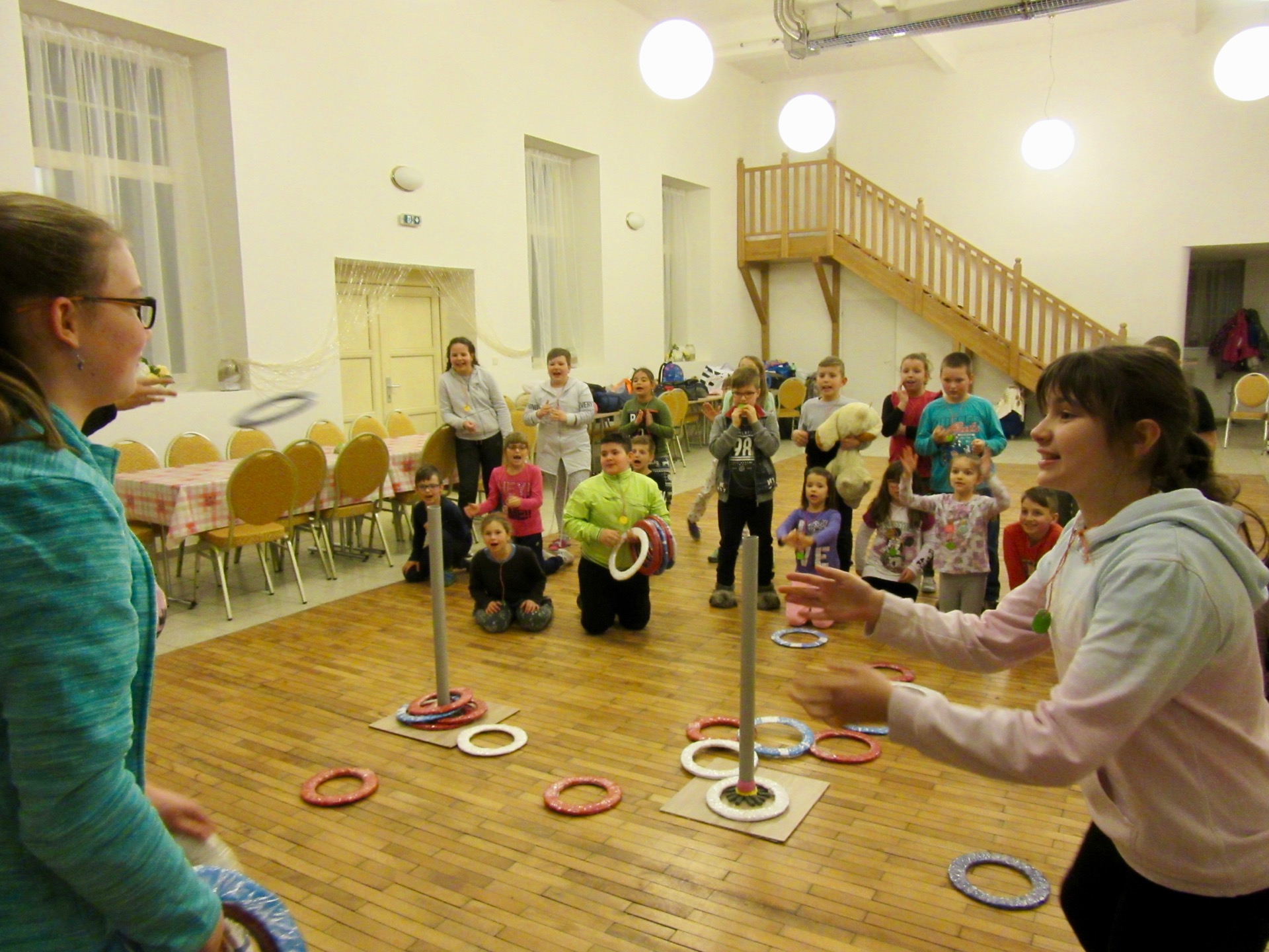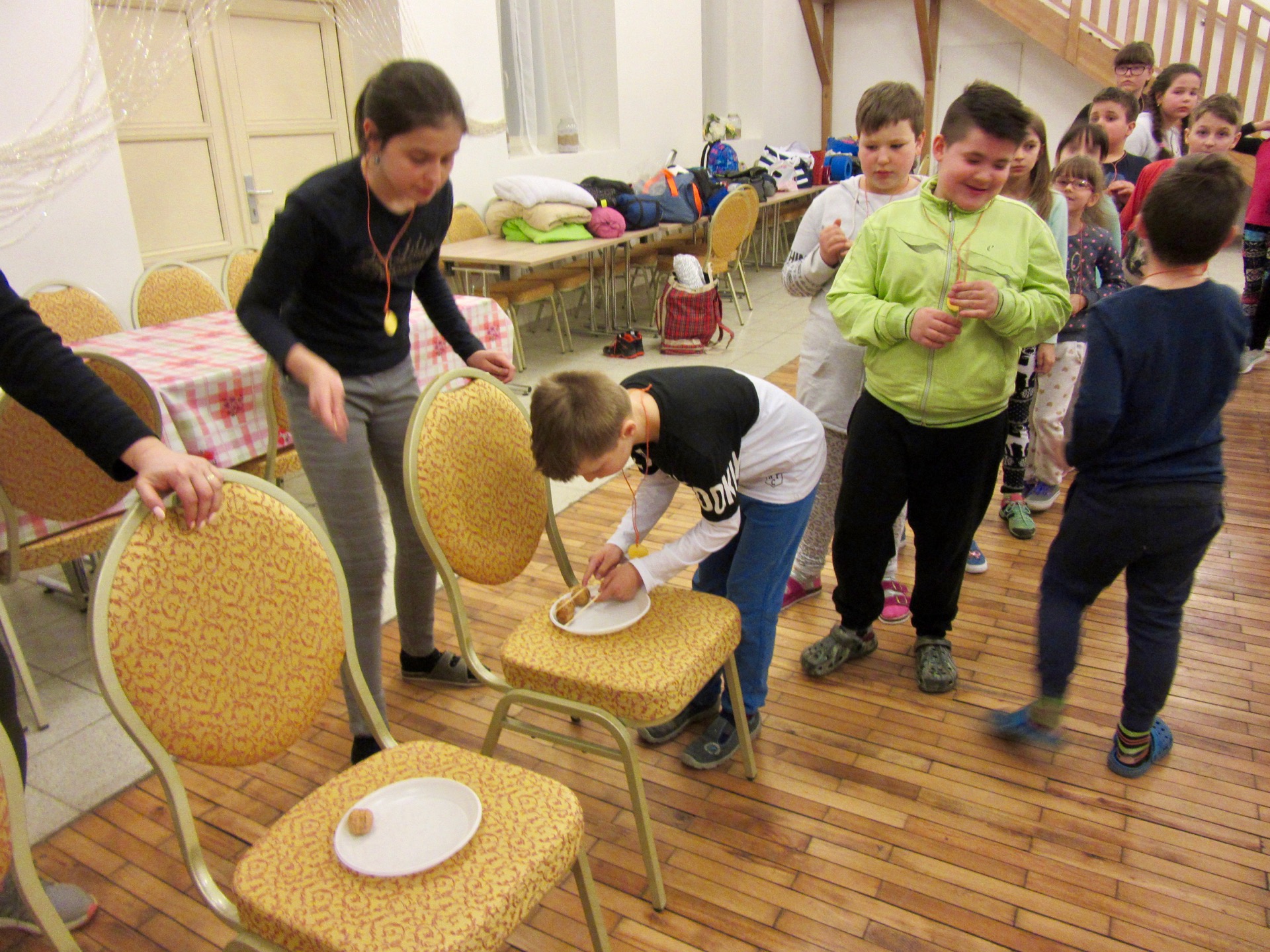 Už pred 17.00 hod. začali pomaly prichádzať rodičia so svojimi deťmi, ktoré  si zároveň od nich vypočuli aj to, ako sa majú správať. Keď už sme boli všetci pokope, nezabudli sme ani na Andersenovský sľub, ktorý sa končil.....že sa slušne správať budem,  a ak nie, tak sa pobalím a domov pôjdem. No nikto sa nepobalil a daný sľub splnili do bodky. Začali sme čítaním z knižky Rozprávky o psíkovi a mačičke a potom sa deti rozdelili do dvoch družstiev, na zelené a žlté a prišiel rad na  rôzne hry, v ktorých sa súťažilo nielen o zručnosť a rýchlosť, ale aj o vedomosti.  No ale po toľkej námahe sa bolo treba aj posilniť, a tak  bol na rade výborný guľáš. Nezabudli sme ani na pitný  režim.  Ako deti videli, poklad bol zamknutý a bolo treba  nájsť od neho kľúče. Nebolo to ale jednoduché, lebo boli ukryté v priestoroch na Rínku. Kto má šťastie , nájde. Kľúč našiel  jeden člen zo zeleného družstva  a radosť bola veľká. Ale v truhlici s pokladom okrem sladkostí nebolo nič také, čo by sa na poklad podobalo  Boli tam hádanky, ktoré ich mali k tomu ozajstnému pokladu zaviesť. A tam malo šťastie zase žlté družstvo. Hra je hra a hlavné, že ten poklad sa našiel a ukrýval krásne hrnčeky pre každého. Šťastie je predsa prelietavé, a tak si ono lietalo raz na jedno , raz na druhé družstvo. Deti sa bavili a  to bolo hlavné. Po nájdení pokladu ich čakali dve torty, na ktorých si pochutili. Bolo niečo 23.00 hod  a začala sa príprava na spánok. Večerná hygiena a šup do spacáka.  Bolo sa treba pekne vyspinkať, lebo ráno ich čakala rozcvička a raňajky. No a po raňajkách, ktoré sa pripravili v kuchynke,  sa išiel posadiť Strom republiky – LIPA. Chlapci pobrali lopaty, hrable a do fúrika sa naložila  Lipa a hajde s ňou na tvar miesta. Jama bola vykopaná, už len pekne lipku posadiť. No skôr než sa lipka išla sadiť, p. starostka, Simona Guláková, v malom príhovore vysvetlila deťom, že tento rok bude 100 rokov od vzniku Československa  a táto lipka nám bude pripomínať nielen túto udalosť, ale aj to, že sa na jej sadení zúčastnili deti . No a potom sa začali chlapci zvŕtať s lopatami  a naberali zem do fúrika. Trošku sme im pomohli. Dievčatá z Lúčky krásne  zaspievali, aby sa lipke lepšie rástlo. No a to bol koniec krásnej akcie. Okolo 10.00 hod. odchádzali deti domov. Zo sebou si vzali sladké balíčky, na ktoré  prispeli sponzori  a pravdaže krásne hrnčeky, ktoré dala pre ne urobiť p. starostka. Poďakovanie patrí štedrým sponzorom, ktorými boli : Obecný úrad vo Svätom Antone, p. Murgašová Jana, p. Baranyaiová Ditta p. Hikl Ján, COOP Jednota Žarnovica, Jozef Gulák, p. Arvajová, pekáreň Anton Antol, Kafe na Rínku, p. Kmeťová, p..Goralová. Za výborne uvarený guľáš p. A. Buzalkovi a za spoluprácu pri tejto akcii p. starostke Simone Gulákovej, Mgr. Martine Belákovej, Mgr. Sylvii Kollárovej, Bc. Eve Buzalkovej a Zuzane Binderovej. O rok sa stretneme!