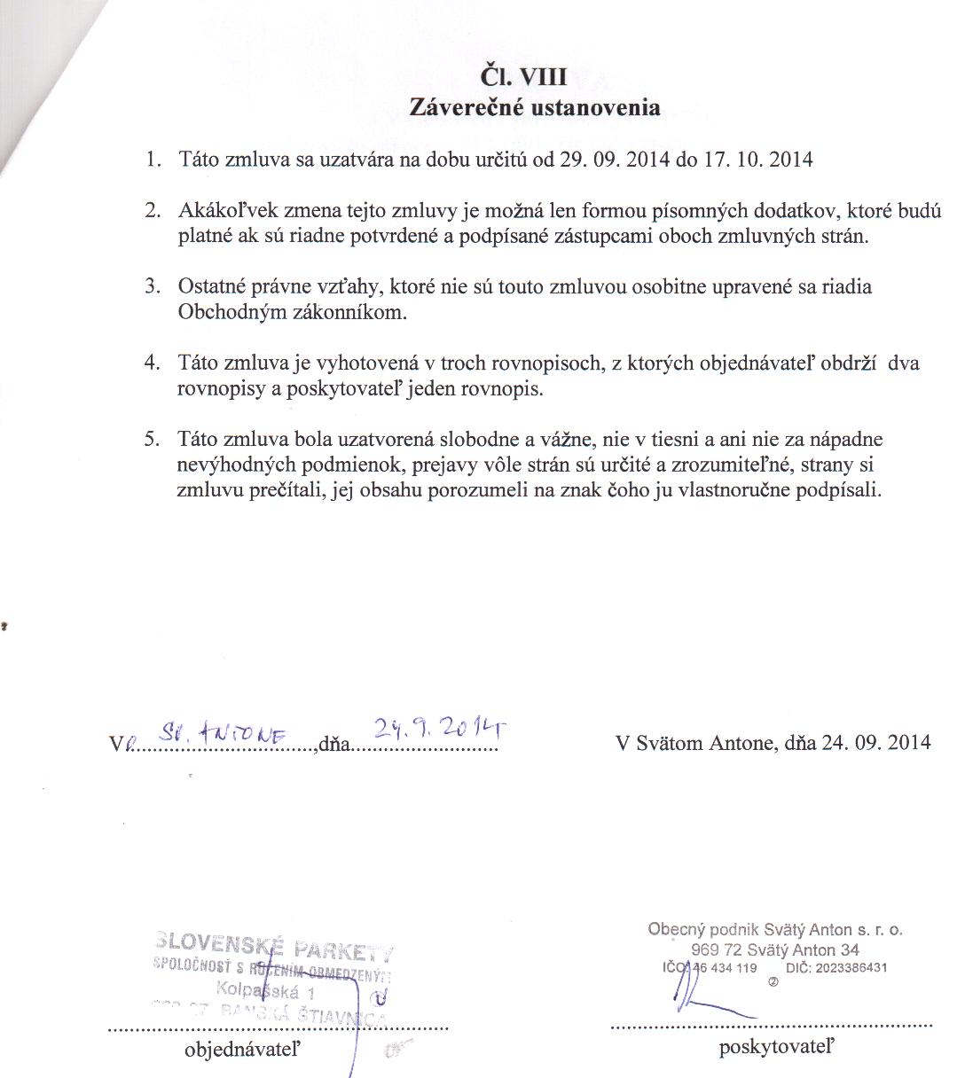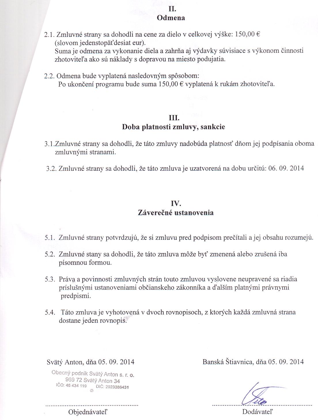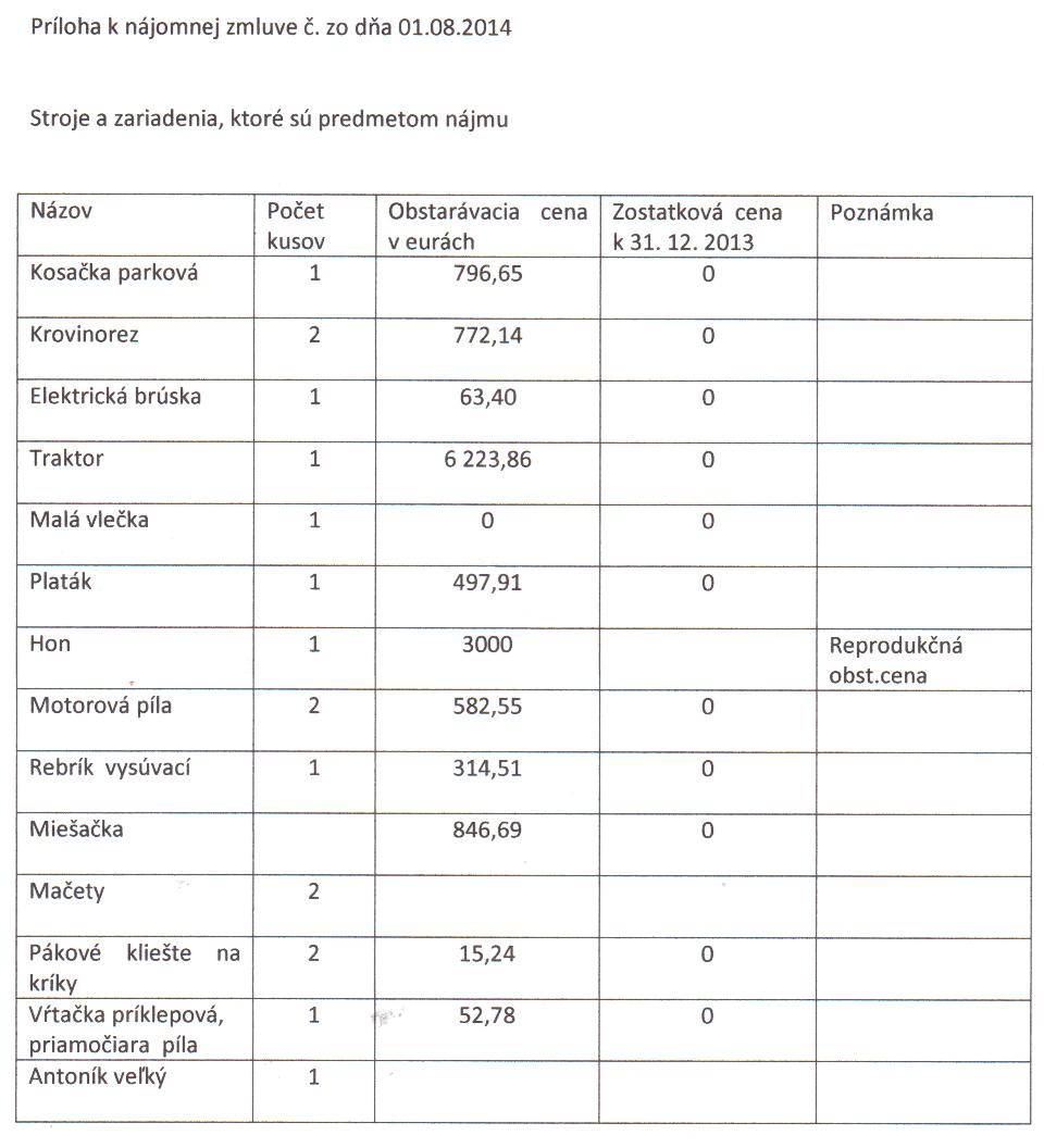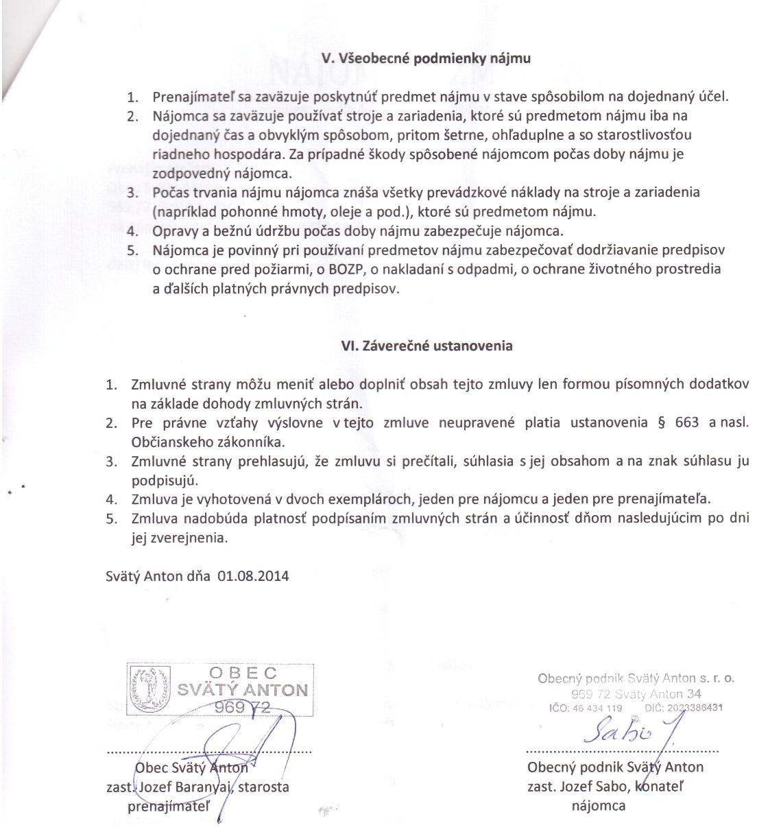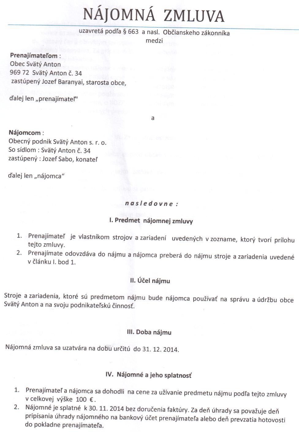 OP-Z-9/2014, Obec Svätý Anton, nájomná zmluva na stroje a zariadenia |