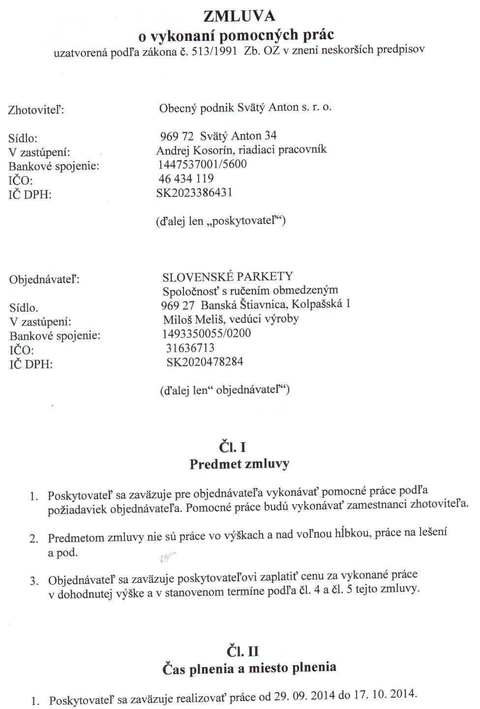 OP-Z-8/2014, Slovenské parkety, Banská Štiavnica, vykonávanie pomocných prác podľa požiadaviek objednávateľa |