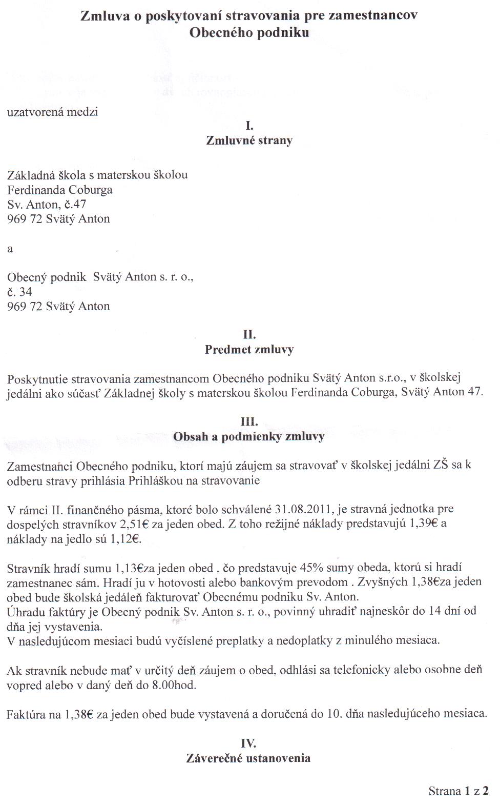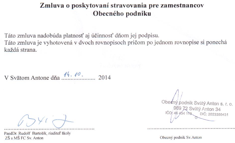 OP-Z-10/2014, ZŠ s MŠ F. Coburga Svätý Anton, poskytnutie stravovania zamestnancom Obecného podniku |