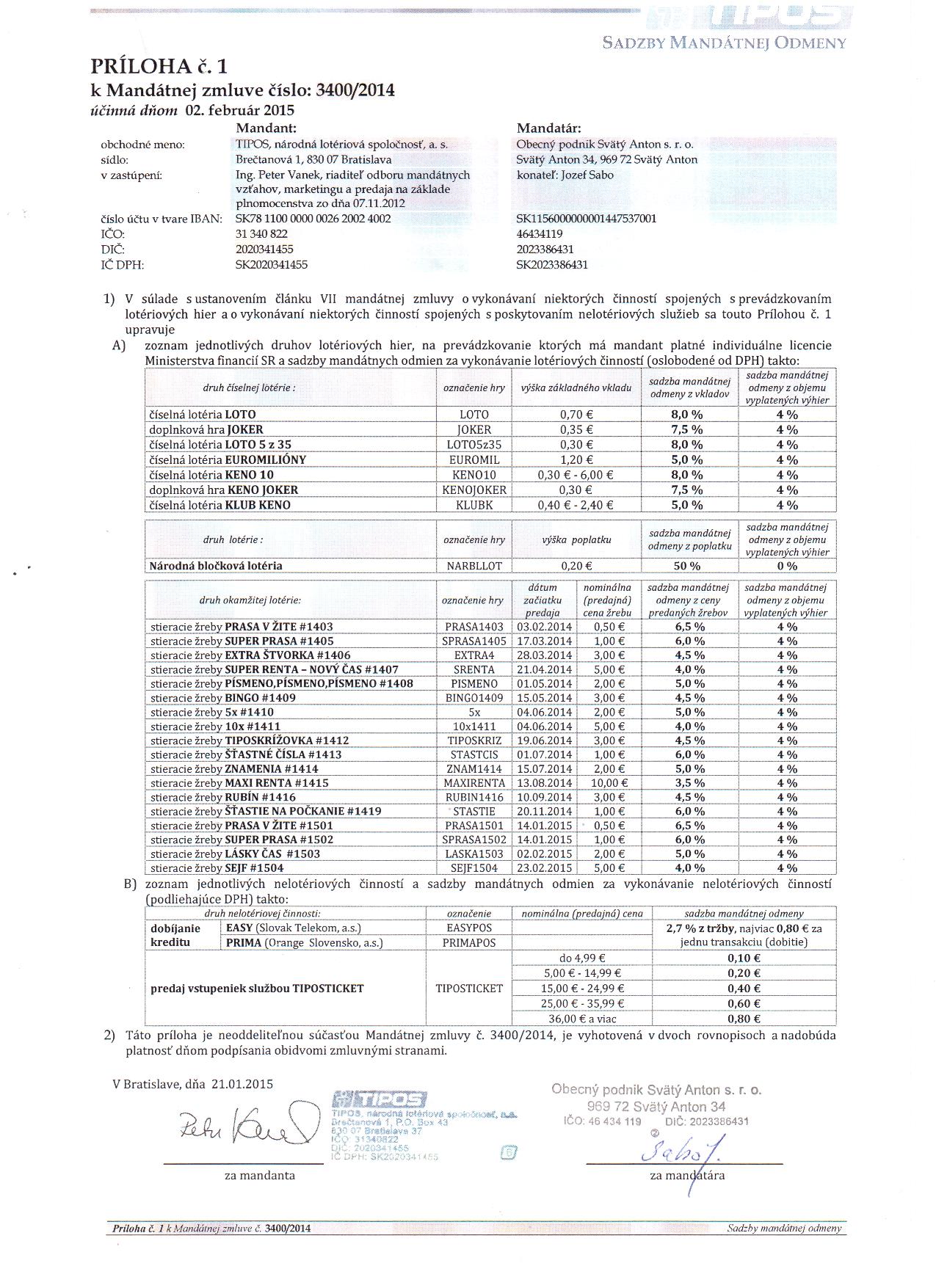 OP-Z-11/2014, TIPOS, Bratislava, mandátna zmluva na prevádzkovanie lotériových služieb |