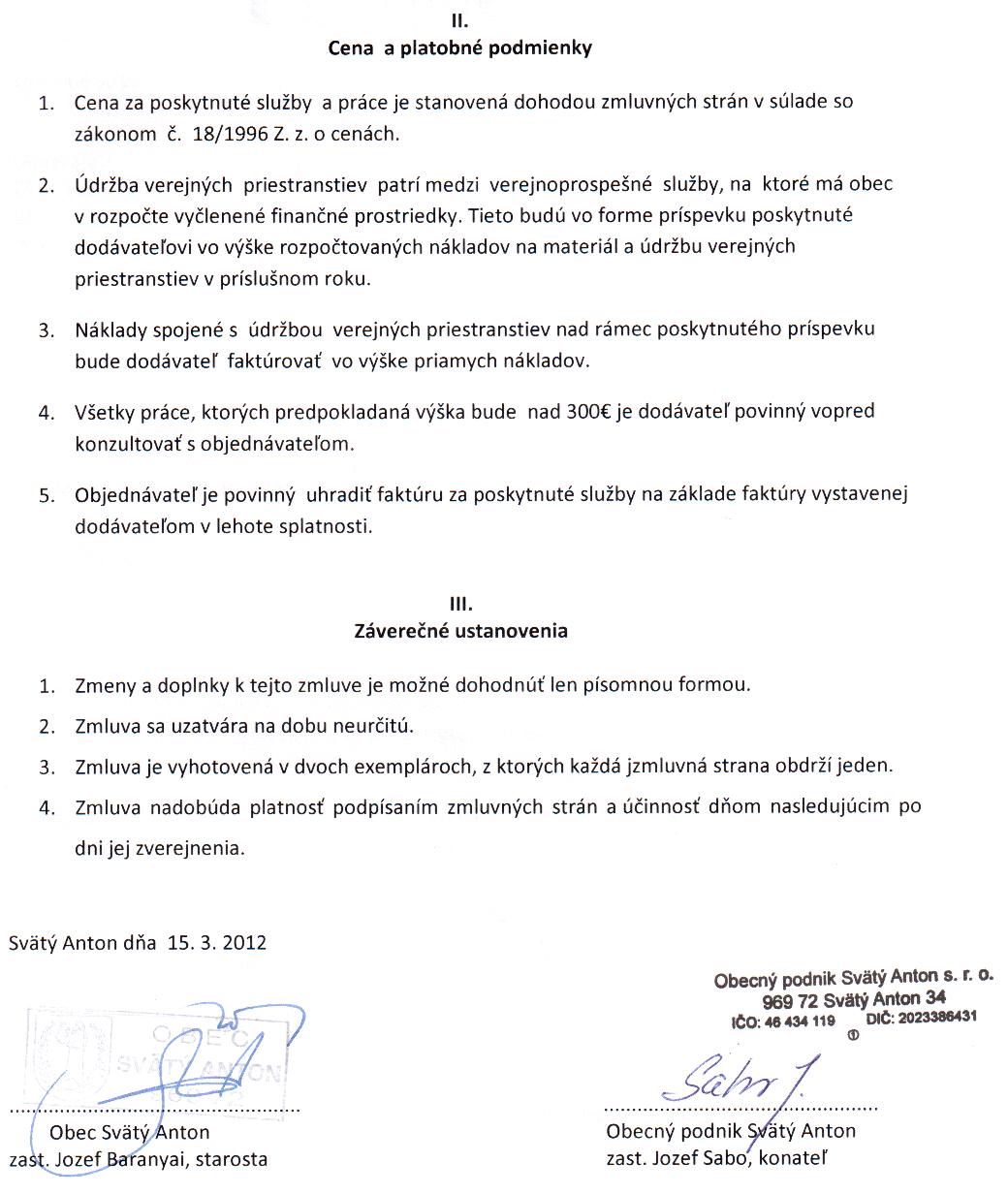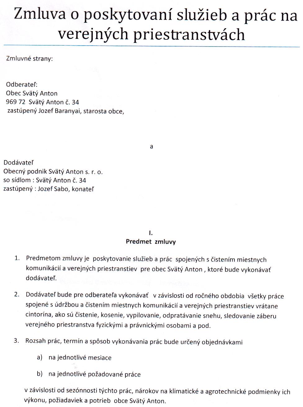 OP-Z-5/2012, Obec Svätý Anton, poskytovanie služieb a prác spojených s čistením komunikácií a verejných priestranstiev. |