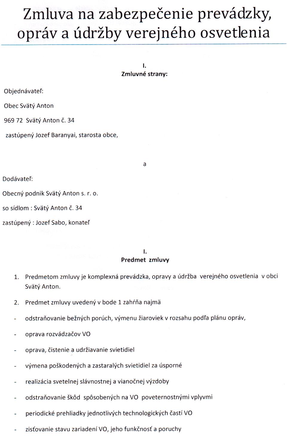 OP-Z-6/2012, Obec Svätý Anton, komplexná prevádzka, opravy a údržba verejného osvetlenia v obci Svätý Anton |