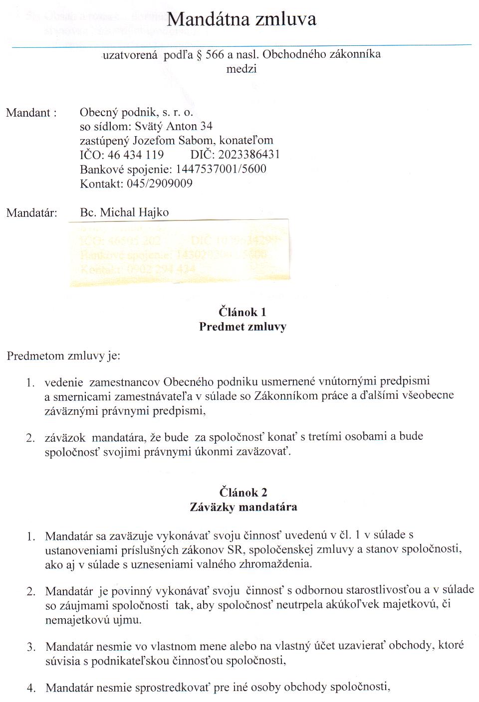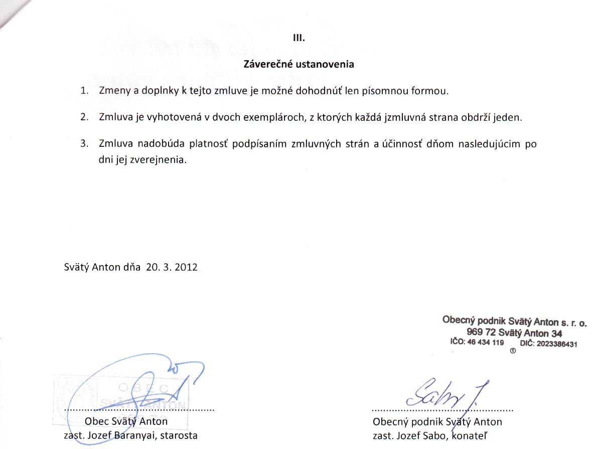 OP-Z-8/2012, Michal Hajko, Svätý Anton 485, 969 72 Svätý Anton, vedenie zamestnancov Obecného podniku usmernené nútornými prepismi a smernicami... |