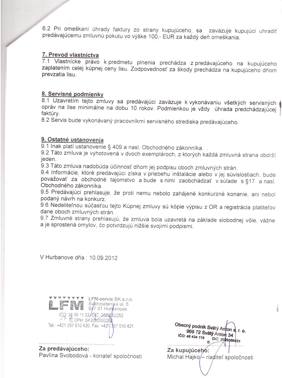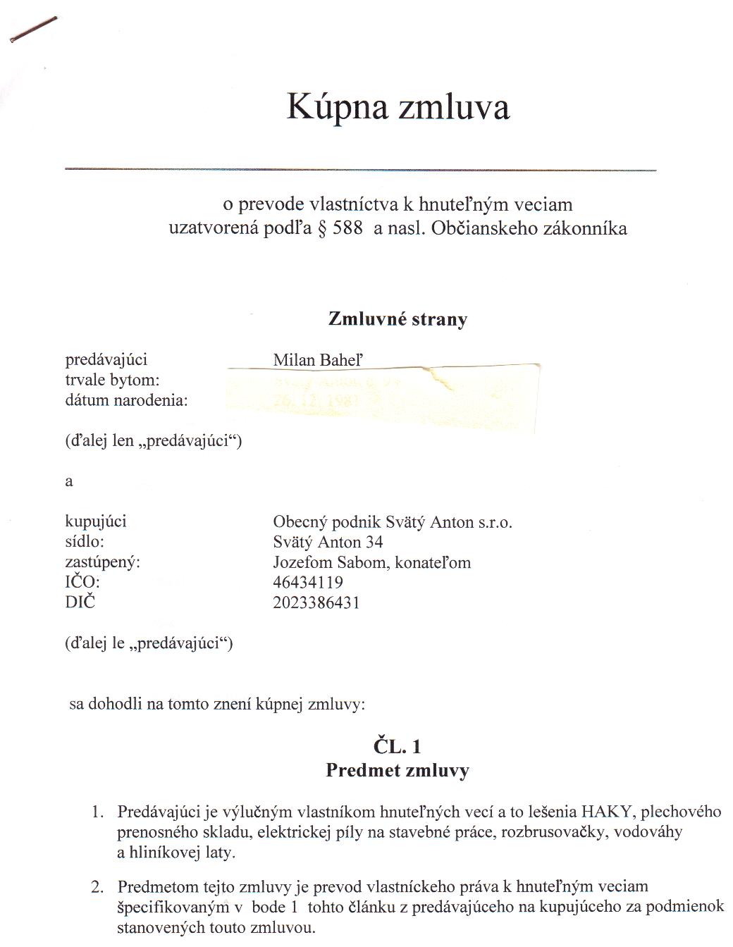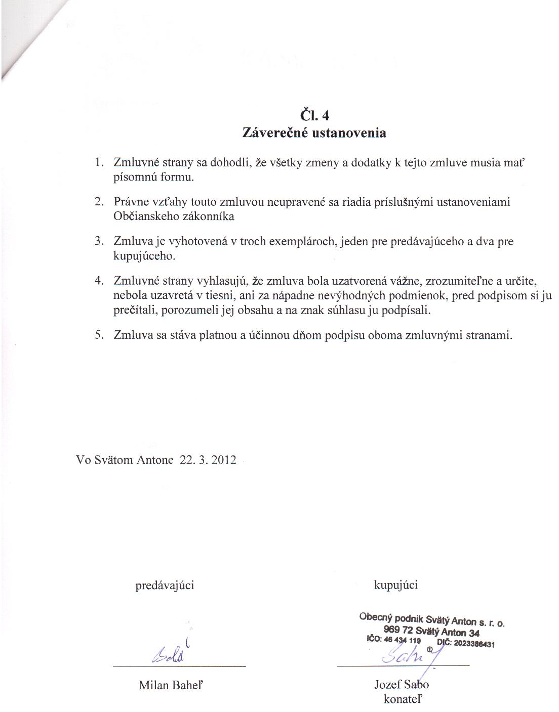OP-Z-7/2012, Milan Baheľ, Svätý Anton, prevod vlastníckeho práva k hnuteľným veciam |