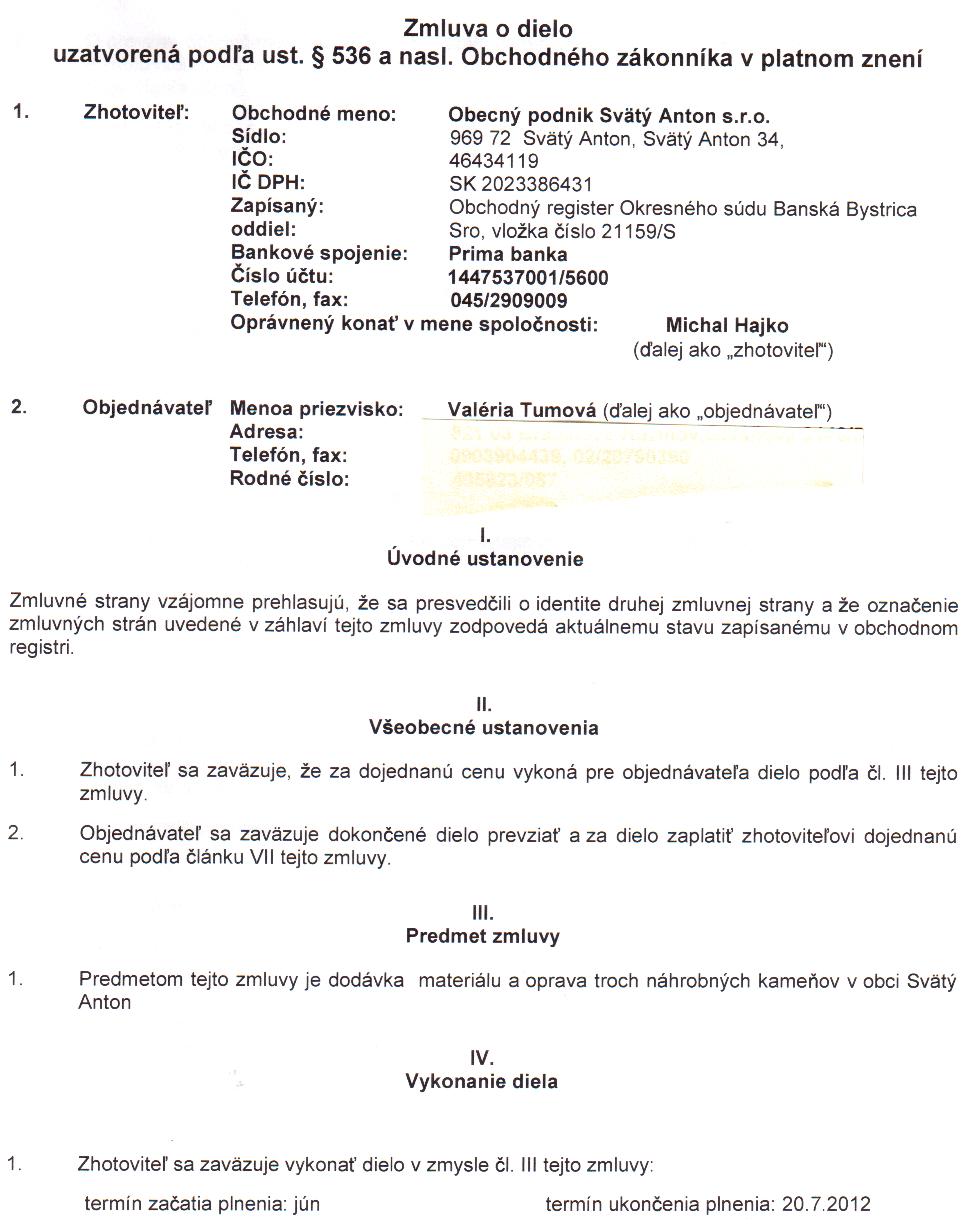OP-Z-9/2012, Valéria Túmová, dodávka materiálu a oprava troch náhrobných kameňov v obci Svätý Anton |