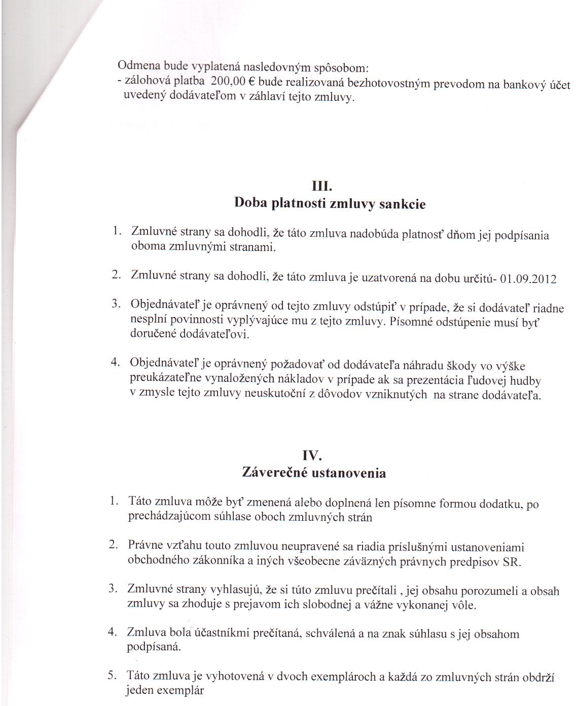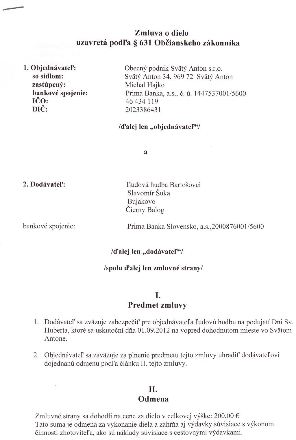OP-Z-10/2012, Slavomír Šuka, Bujakovo, zabezpečenie ľudovej hudby na podujatí Dni Sv. Huberta |