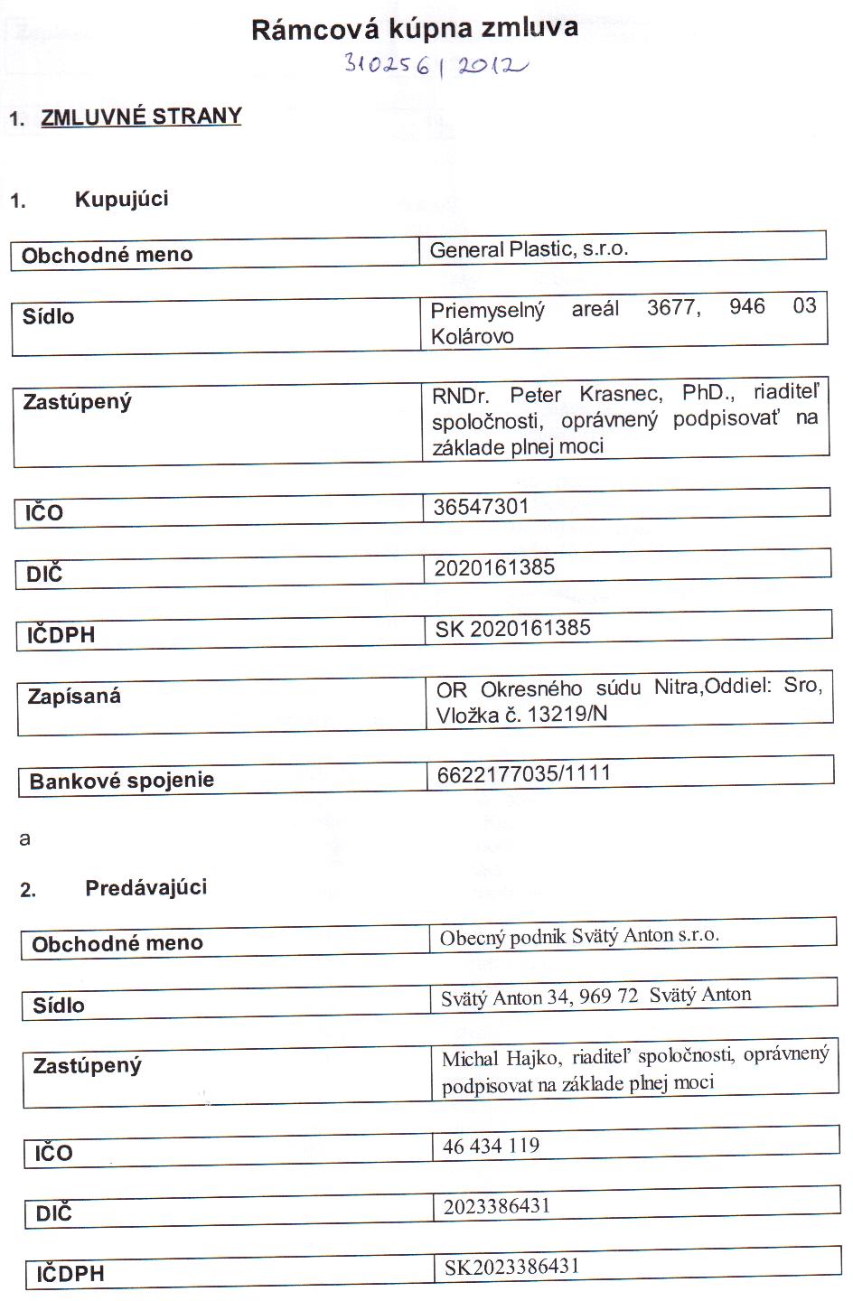 OP-Z-12/2012, General Plastic, s.r.o., Kolárovo, upravenie vzájomných práv a povinností zmluvných strán, dodacie, faktruračné a platobné... |