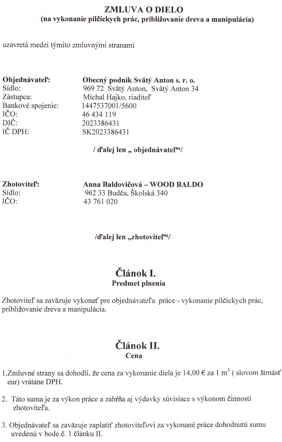 OP-Z-14/2012, Anna Baldovičová - WOOD BALDO, vykonanie pilčíckych prác, približovanie dreva a manipulácia |