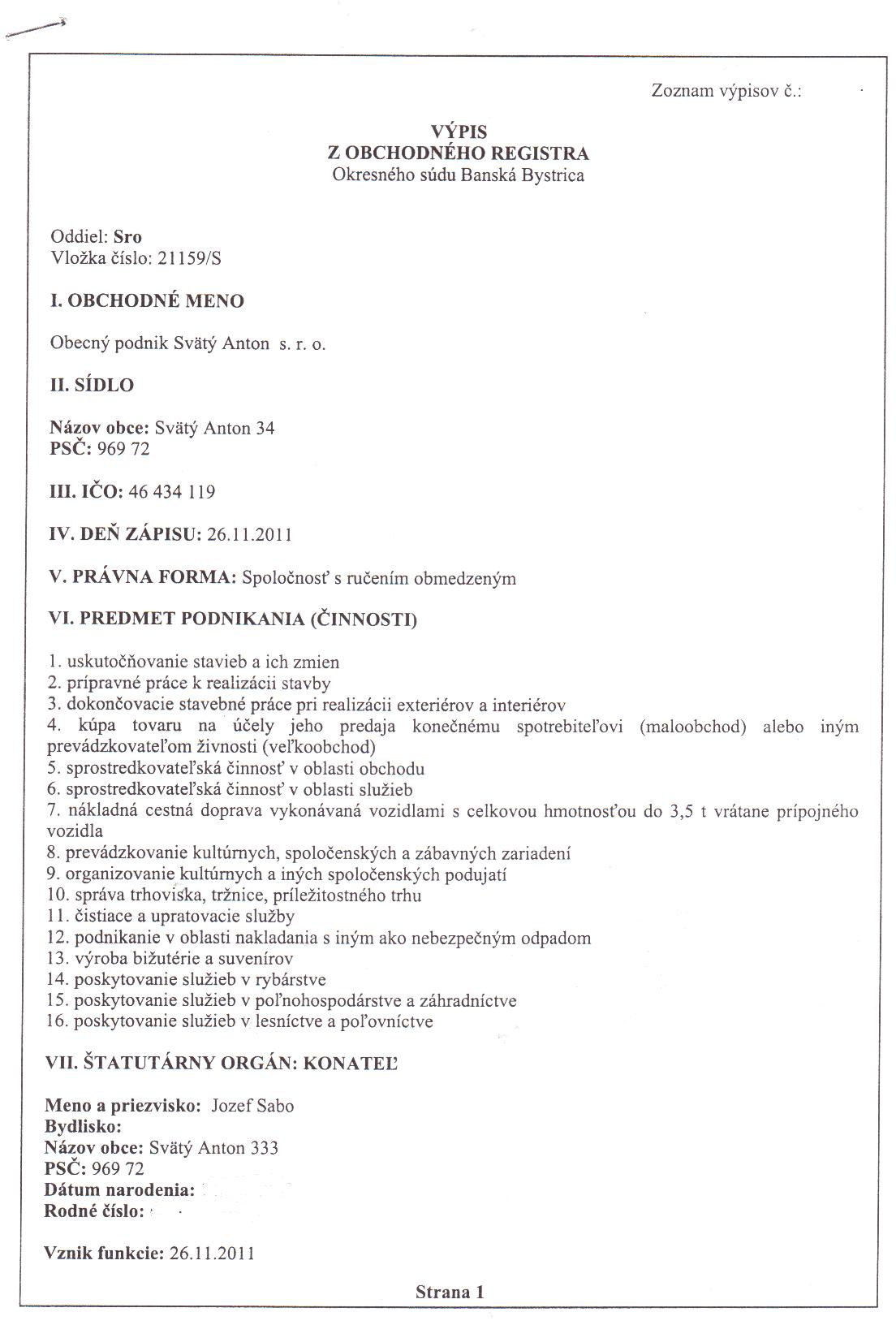 Výpis z obchodného registraVýpis z obchodného registraVýpis z obchodného registra
