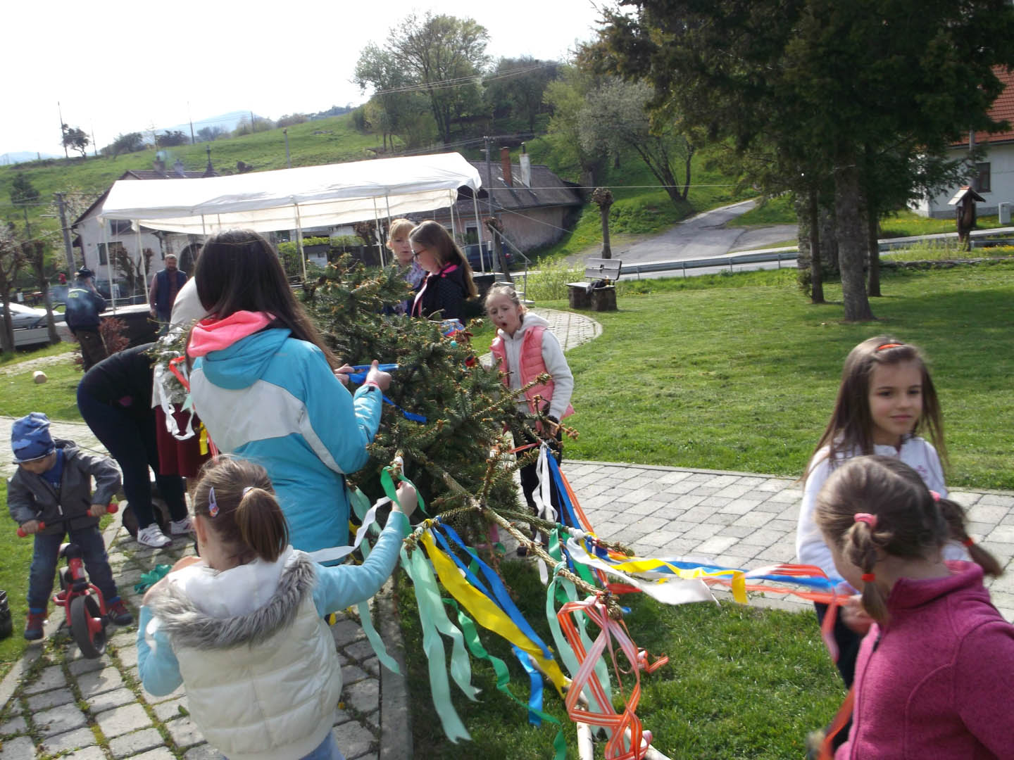 Máj je pôvodne mladý stromček, najčastejšie smrekový, jedľový alebo brezový, ktorý má symbolický význam a je výrazom prírodného mýtu o boji zimy s jarou a smrti so životom. Je to symbol jari a prebúdzajúcej sa prírody. Takmer u všetkých národov bolo zvykom nosiť máje na začiatku jari alebo leta v slávnostnom sprievode po dedine za spevu starodávnych obradných piesní. V nich sa ospevovala tvorivá sila prírody a radosť z víťazstva jari nad zimou. Máje sa ozdobujú pestrými stužkami a farebnými papiermi. Neskôr pôvodný význam májov upadol do zabudnutia, ale zvyk stavať máje existuje v mnohých krajinách dodnes. Aj na Slovensku sa máje stavajú ako okresané a ovenčené stromy. Mládenci ich pred 1. májom dávajú pred tie domy, kde býva ich milovaná. Májová tradícia je často spájaná najmä s dedinskou zábavou vo viacerých slovenských obciach. V našej obci sa stavanie mája začalo zdobením v nedeľu 30.apríla. o 16.00 hod. Detičky sa za pomoci dospelých zvŕtali a viazali o sto šesť. A keď už bol máj vyzdobený, už ho bolo treba iba patrične osadiť, aby sa pyšne na nás pozeral z výšky. Všetko dobre dopadlo a máj bol na svojom mieste. Stavanie májov patrí medzi najtypickejšie slovenské tradície. Ostáva len dúfať, že ju bude mať v budúcnosti kto udržiavať aj pre ďalšie generácie.
