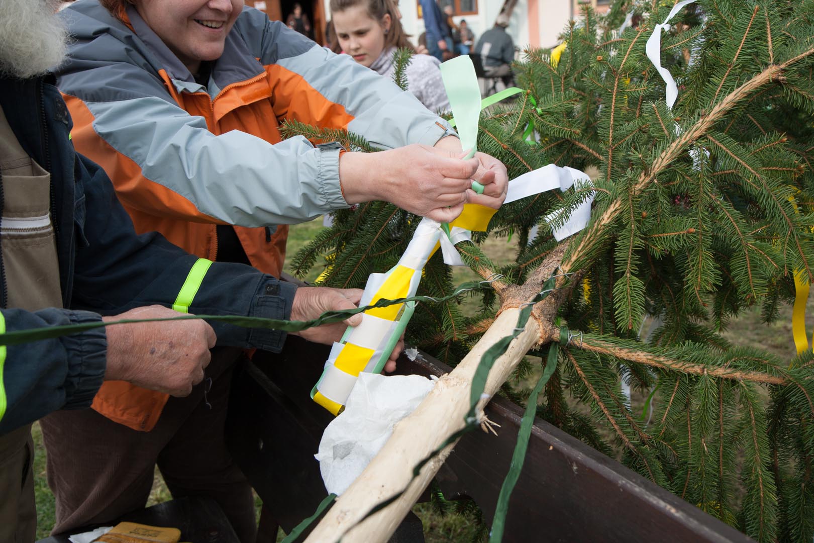 Aj v našej obci Svätý Anton sa táto pekná tradícia zachovala. Už pred 17.00 hod. sa začali pomaly schádzať zvedaví občania na Rínok, kde už na nich čakal pripravený strom. Členky kultúrnej komisie na čele s p. starostkou a z ďalšími šikovníci občanmi našej obce priložili ruky k dielu . Nechýbali ani naše detičky. No keď bola už paráda hotová, nemohla tam predsa chýbať ani fľaštička s pálenkou, ktorá bola tiež súčasťou výzdoby.. A teraz nastala chvíľa na ktorú sme čakali. Postaviť takú opachu zostala na pleciach chlapov. A veru ako sme sa kukali, dalo im to zabrať. Mládenci sa kdesi zabudli a tak sa museli chytiť roboty aj tí vekom starší. Ale všetko dopadlo tak ako malo a svätoantonský máj už krásne stojí. Poďakovanie patrí obecnému úradu, našim super hasičom, ktorí sú vždy tam, kde ich najviac treba a ešte všetkým občanom, ktorí sa stavania mája zúčastnili. Ďakujeme.