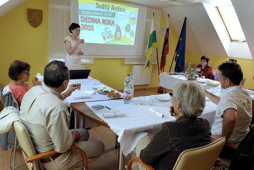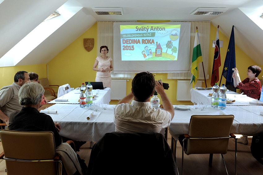 Na základe prihlásenia do súťaže Dedina roka 2015 prišla do našej obce komisia 22.6.2015 o 14.00 hod. Privítali ju žiaci ZŠ a MŠ Feinanda Coburga , chlebom a soľou a pekným kultúrnym programom pri Obecnom úrade, kde im do spevu a tanca vyhrával Martin Kminiak V zasadačke Obecného úradu sa uskutočnila stručná prezentácia obce. Starostka, p. Simona Guláková, oboznámila komisiu so základnými údajmi obce, kultúrnymi pamiatkami, architektúrou, školstvom, združeniami pôsobiacimi v obci atď. Po krátkej prestávke sa komisia vybrala do kaštieľa , kde sa zúčastnila malej prehliadky, ktorou nás sprevádzala Ing. Janka Binderová a divadelného predstavenia o svätom Hubertovi, ktoré na nádvorí odohrali žiaci našej školy. Ako symbol slobody vypustila p.Hegyiová poštové holuby. Nasledovala malá prechádzka po parku, kde nás p. A. Jusko podrobne oboznámil s históriu DHZ a nechýbala ani malá ukážka požiarneho zásahu dorasteniek. Našou významnou dominantou je aj Rímskokatolícky kostol, v ktorom nás privítal p. farár Martin Sebíň a Svätoantonský cirkevný spevokol . Pútavé rozprávanie pána farára z histórie kostola, nádherný spev a recitácia navodzovali pocit vnútorného pokoja a istoty. Na záver prezentácie sme navštítili Starý hostinec, ako ukážku tradičnej architektúry. Na jeho dvore nás privítala majiteľka, p. Ditta Baranyaiová, ktorá pripravila aj ochutnávku tradičných baníckych jedál, medzi ktoré patrili aj bacekýchle. Zároveň odprezentovala aj regionálnu značku Hont. Aj tu pokračoval kultúrny program za hudobného doprovodu p. Miloša Dubovského a detského súboru Šarinka z Prenčova, ktorý navštevujú žiaci našej školy. Prezentáciu o Igorovi Hudecovi , ktorý ako režisér viedol ochotnícke divadlo v Antole 30 rokov, predstavila Alica Gajanová. V týchto dňoch sa dožíva 92 rokov. Komisiu zaujali aj nádherné ručné práce našich obyvateľov, ako aj výrobky z drôtu a prútia. Po trojhodinovom „maratóne“ sme sa s komisiou rozlúčili.