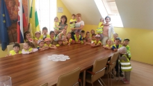 Vo štvrtok 17. septembra 2015 prišla na obecný úrad milá a pre nás veľmi vzácna návšteva. O 10.00 hodine pani starostka v zasadačke privítala deti spolu s pani učiteľkami z našej materskej školy. Návšteva detí bola zaujímavá a aj užitočná. Pani starostka deťom porozprávala o tom ako sa na úrade pracuje a ukázala im všetky kancelárie. Deti si preverili aj svoje vedomosti. Určovali vlajky - obecnú, slovenskú a európsku. Hravou formou sa oboznámili aj s erbom obce. V kancelárii pani starostky si detičky vyskúšali, aké je to sedieť na starostovskej stoličke. Ďalej si prezreli ako vyzerá kancelária matričného úradu. Potom sa presunuli do miestnosti odkiaľ sa vyhlasuje do obecného rozhlasu, kde sme si pustili znelku Dedinôčka. Boli sme milo prekvapení, keď sa naši malí škôlkari k spevu pridali. Nakoniec pani starostka popriala detičkám a pani učiteľkám všetko dobré a poďakovala im za návštevu.