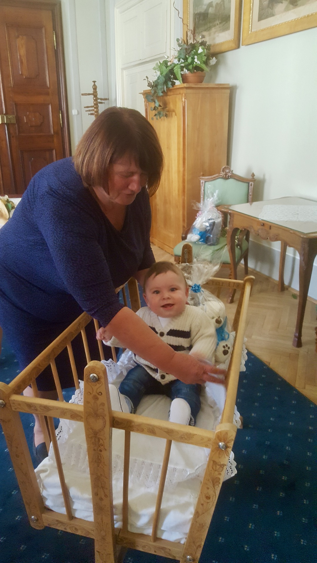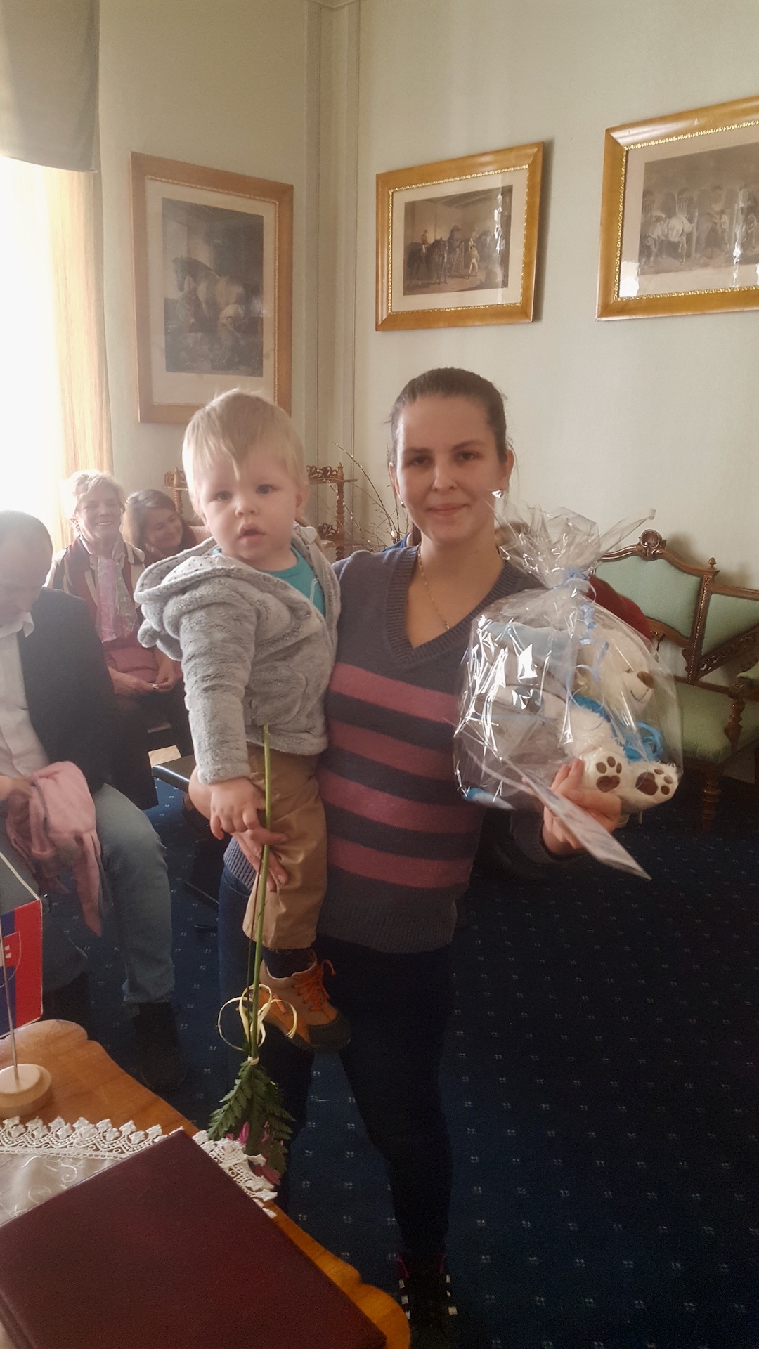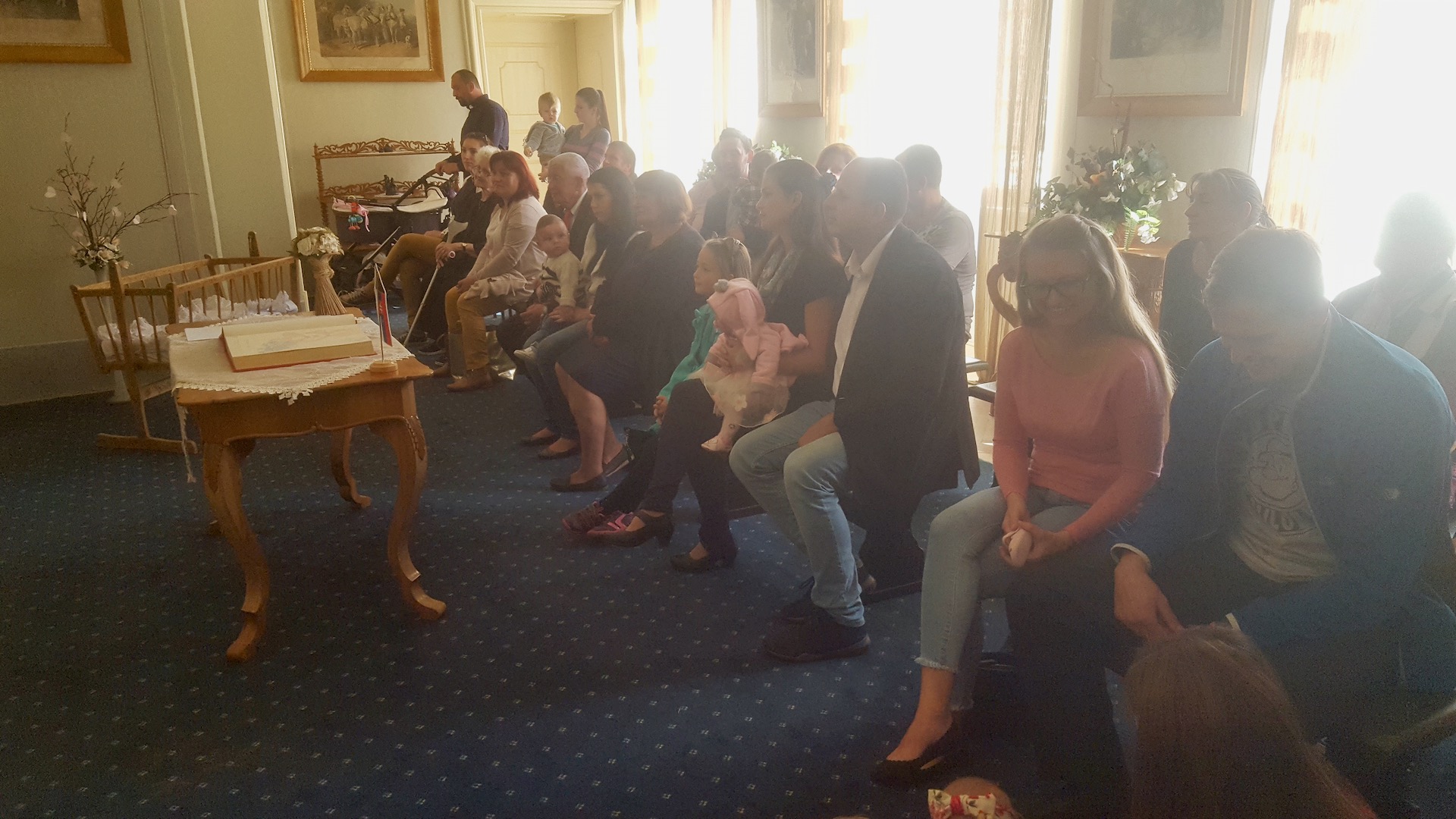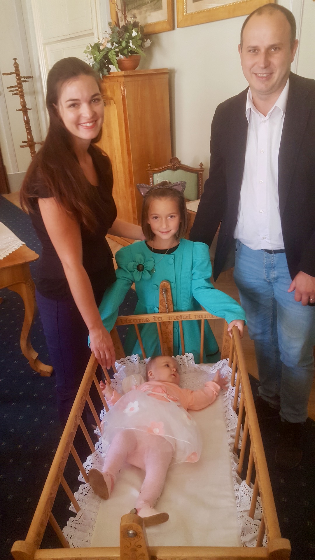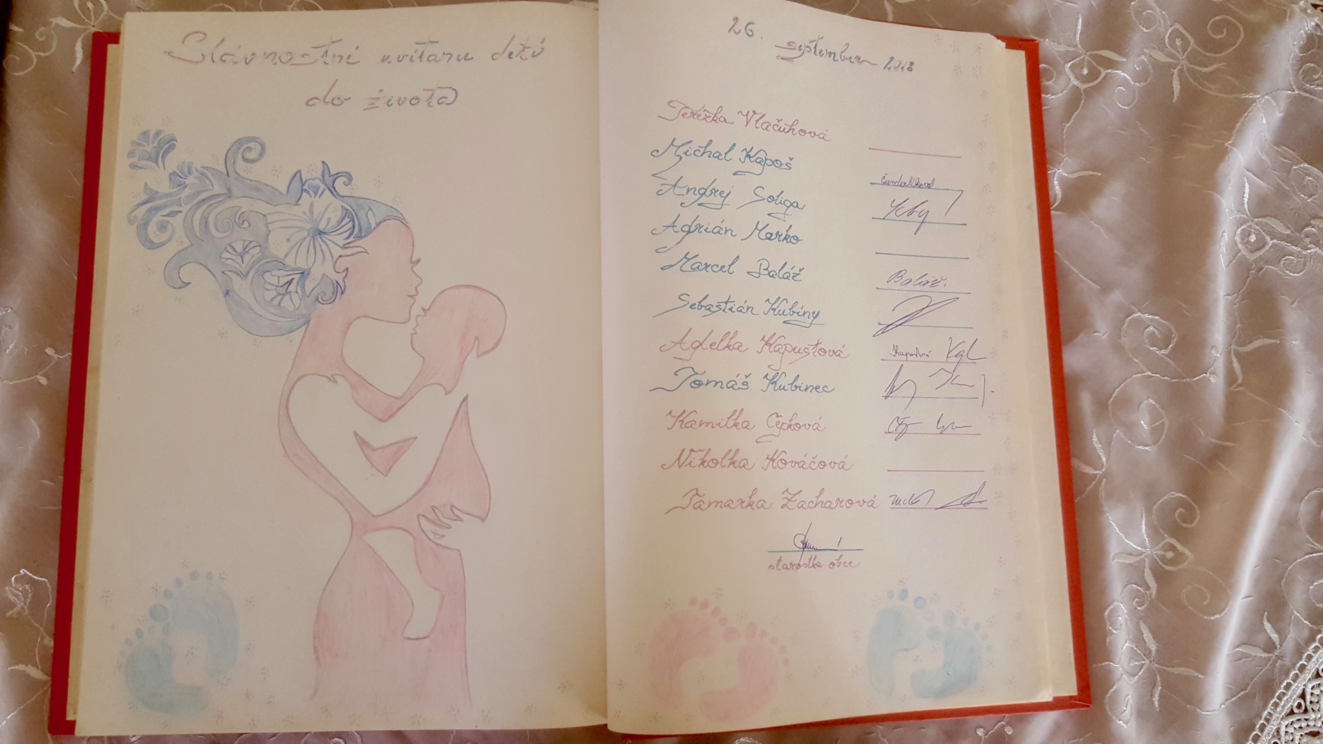 Po príhovore sa rodičia podpísali do pamätnej knihy a prevzali si darček pre svoje dieťatko ako pamiatku na dnešný deň. Táto krásna chvíľa bola spečatená fotografiou každého dieťatka v drevenej kolíske.