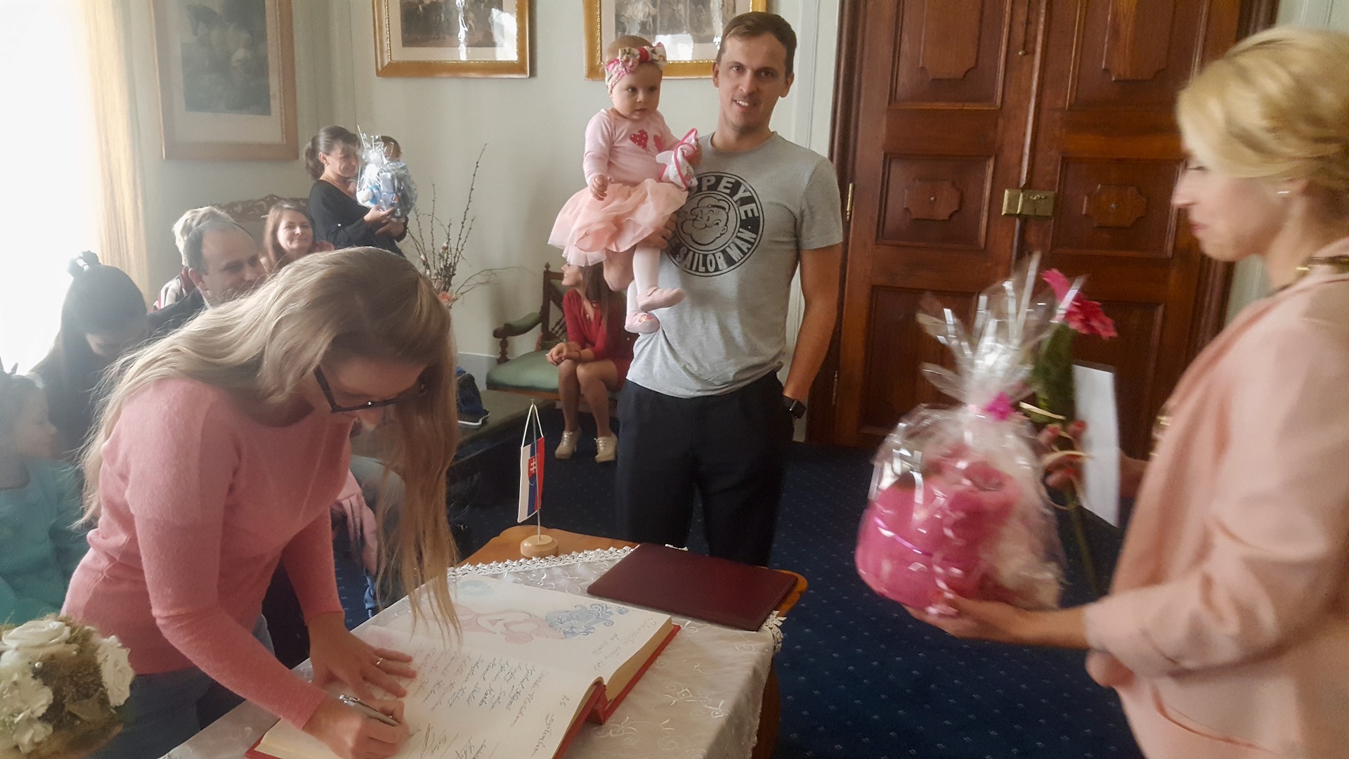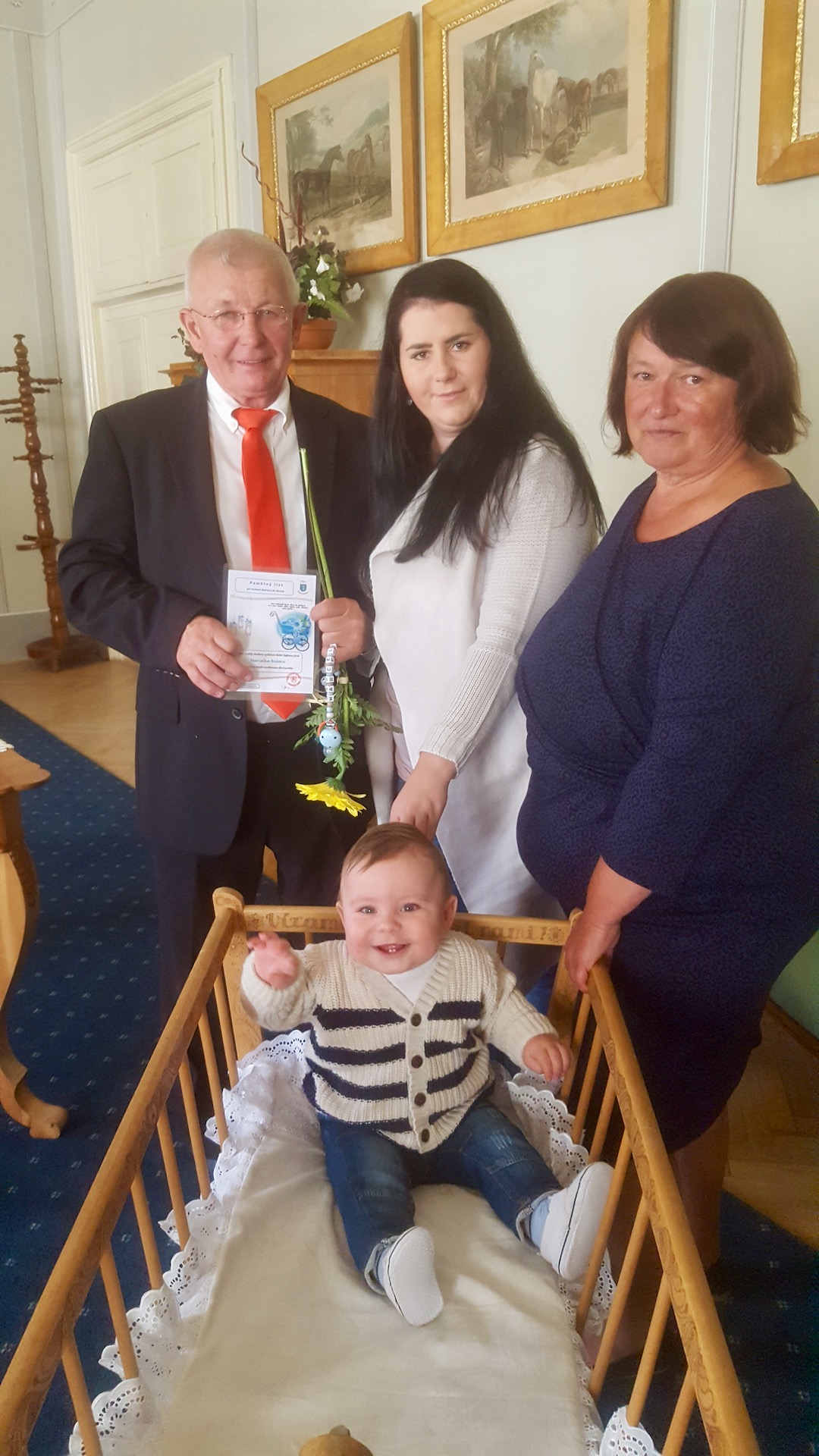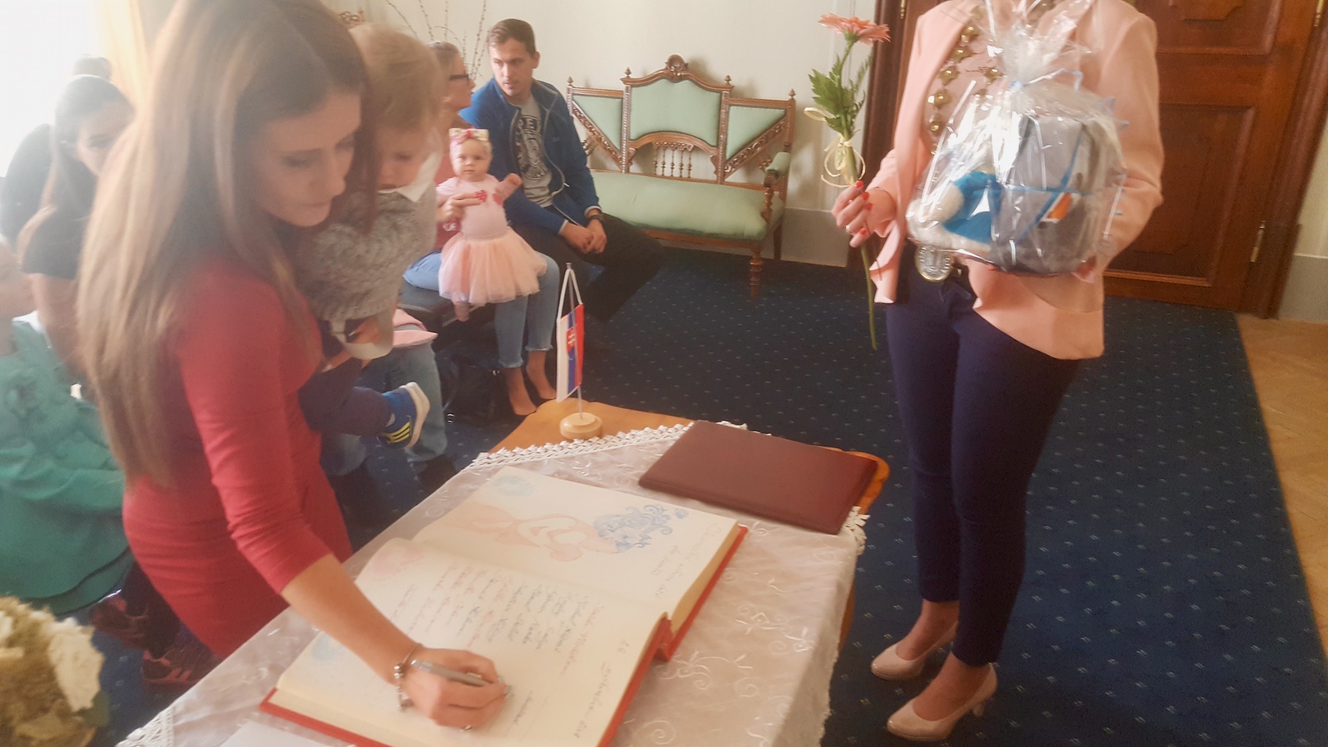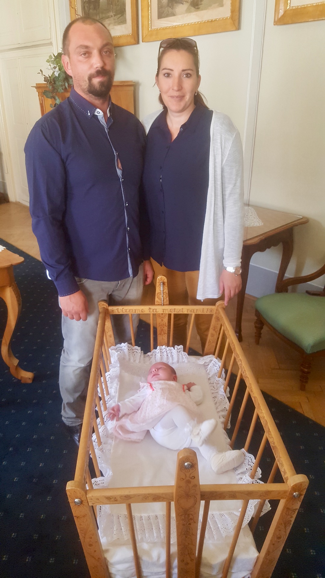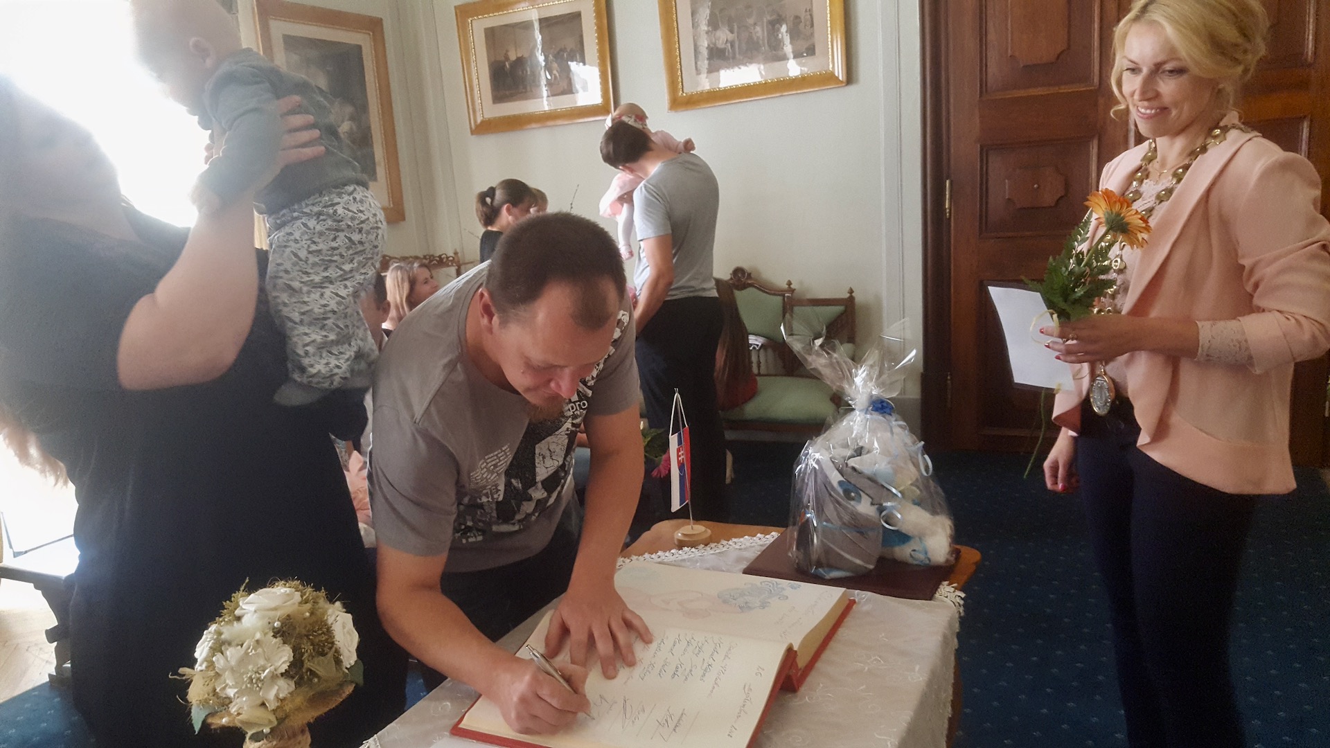 Po príhovore sa rodičia podpísali do pamätnej knihy a prevzali si darček pre svoje dieťatko ako pamiatku na dnešný deň. Táto krásna chvíľa bola spečatená fotografiou každého dieťatka v drevenej kolíske.