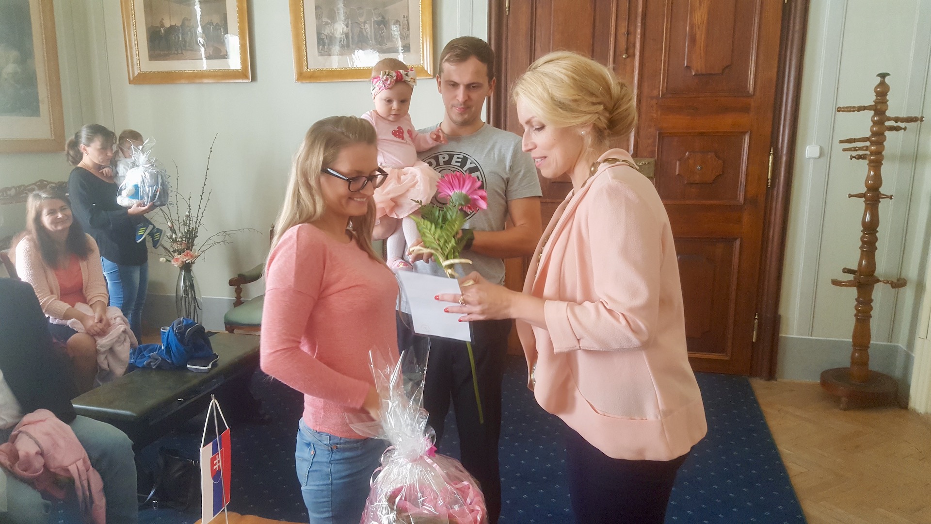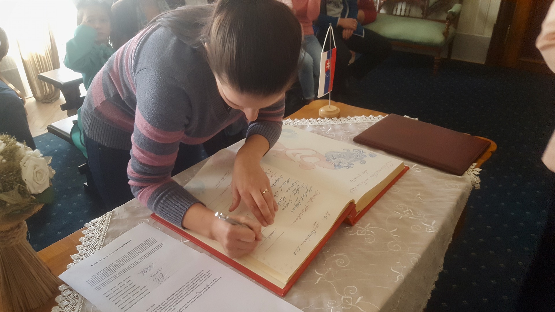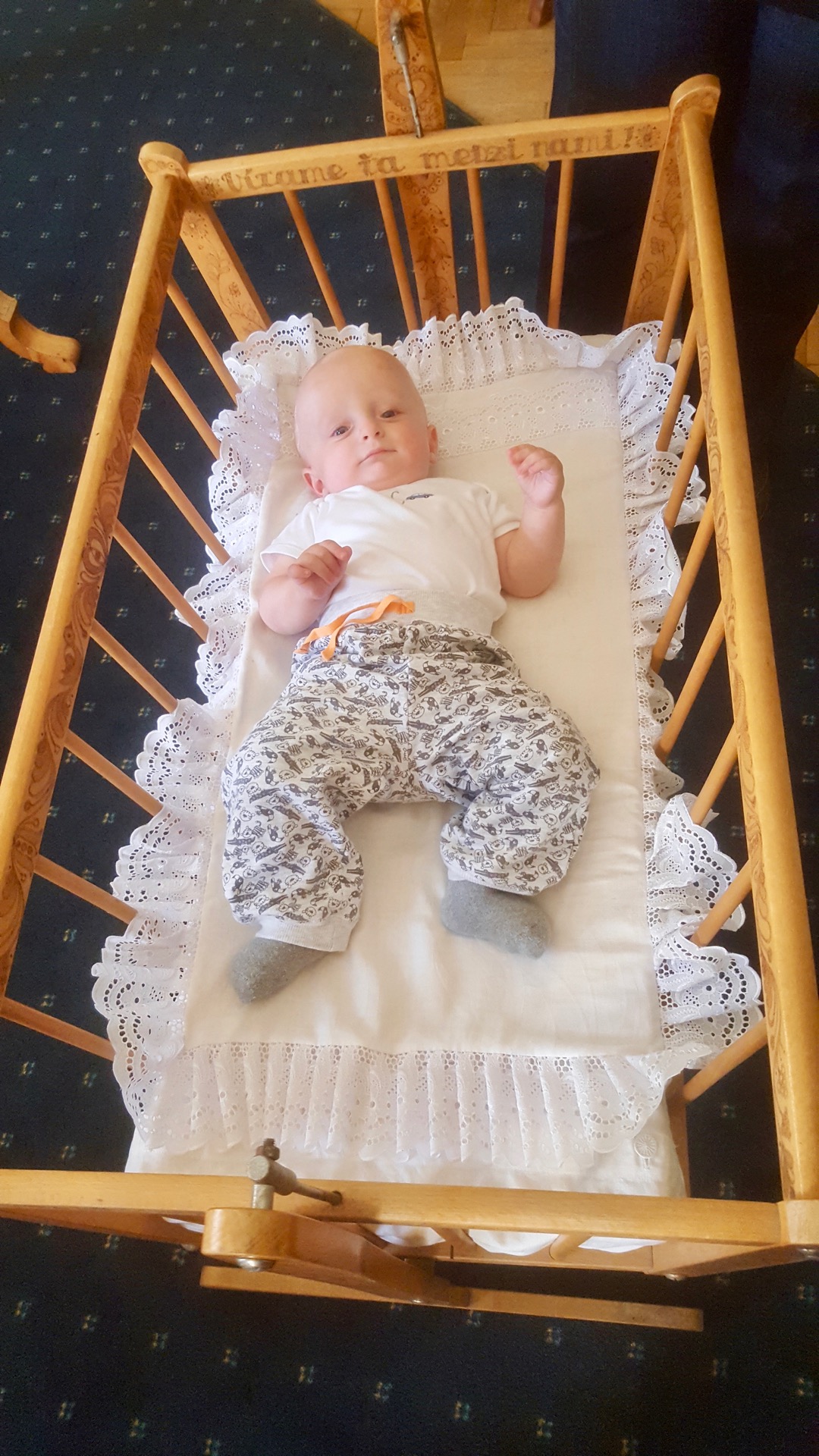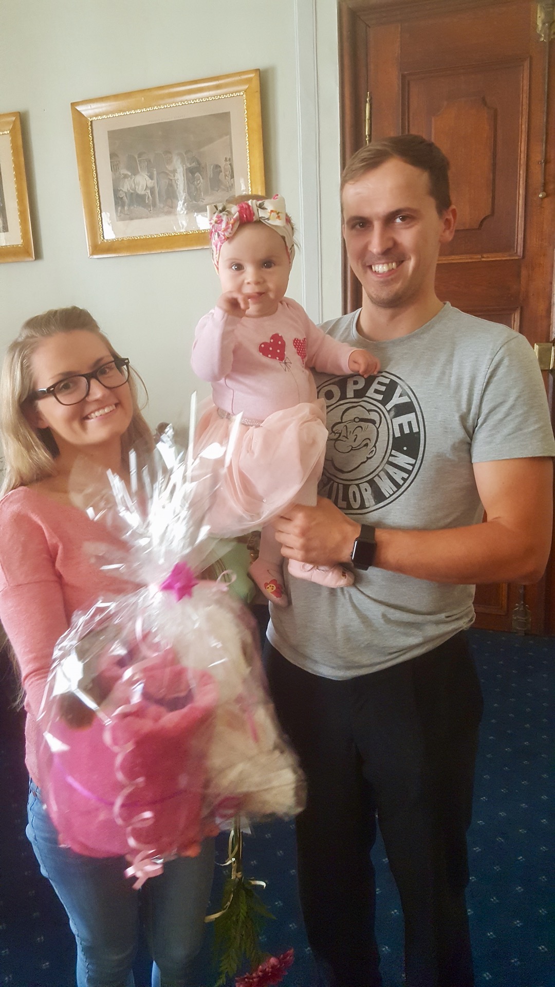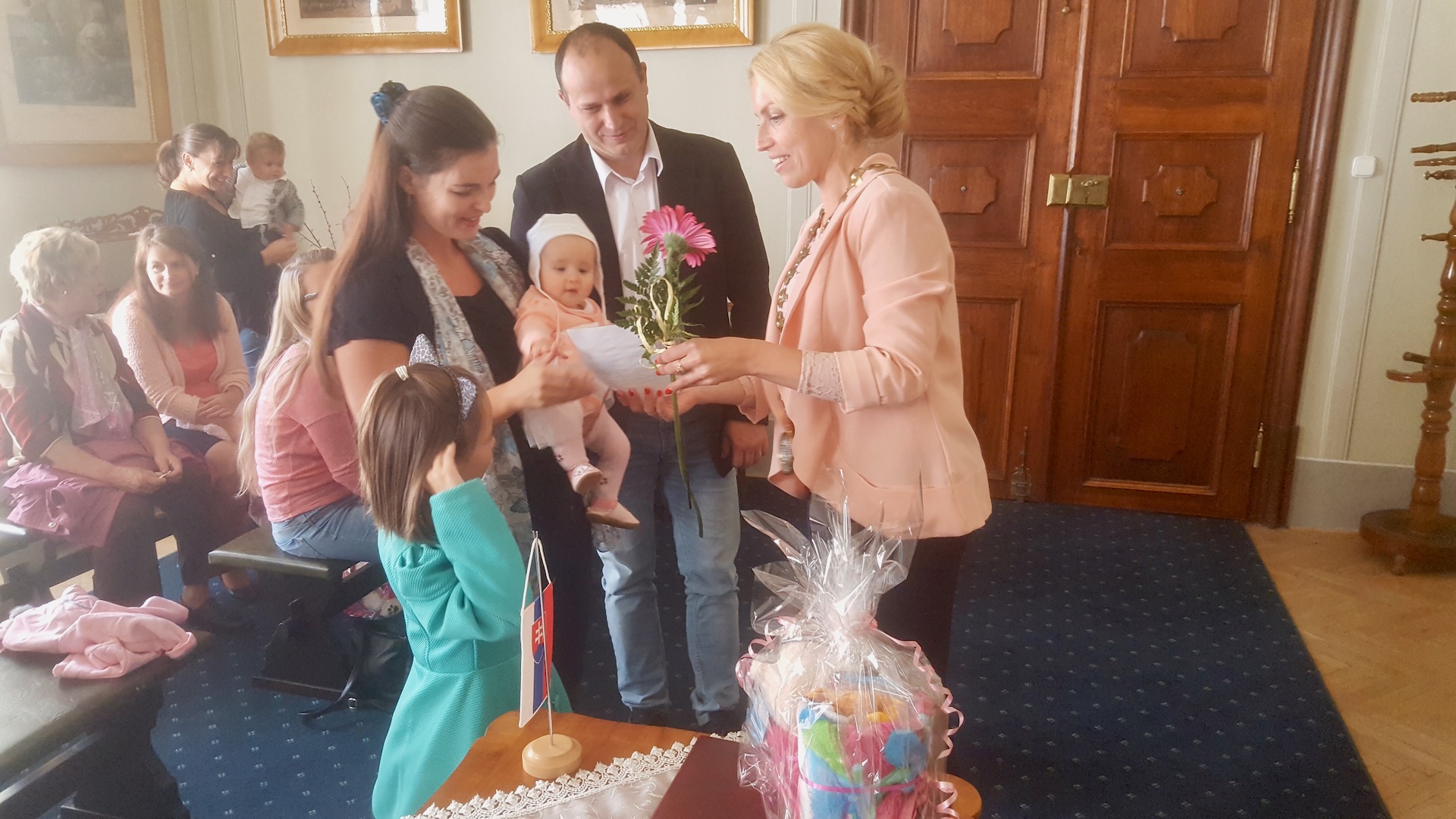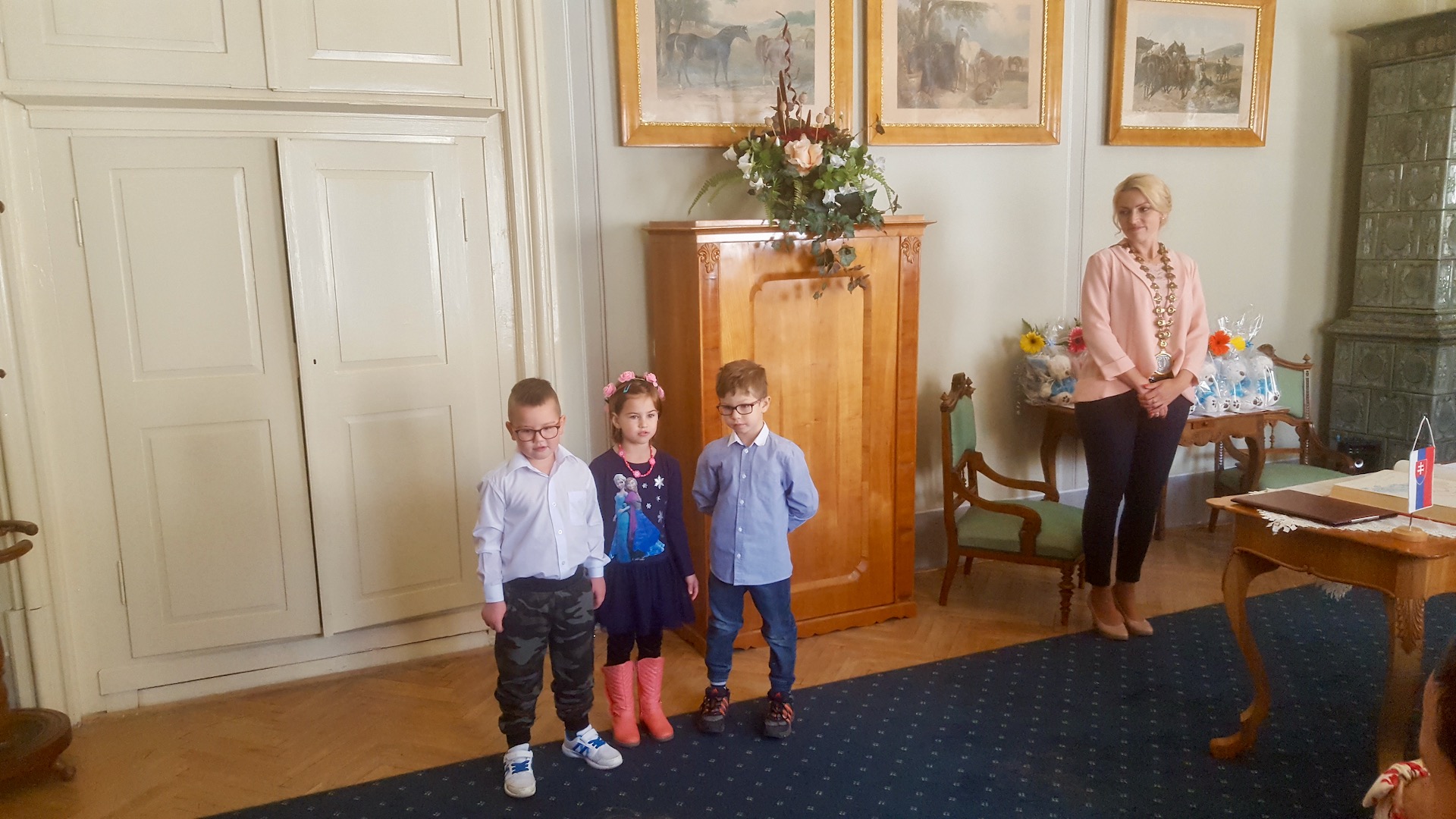 Po príhovore sa rodičia podpísali do pamätnej knihy a prevzali si darček pre svoje dieťatko ako pamiatku na dnešný deň. Táto krásna chvíľa bola spečatená fotografiou každého dieťatka v drevenej kolíske.