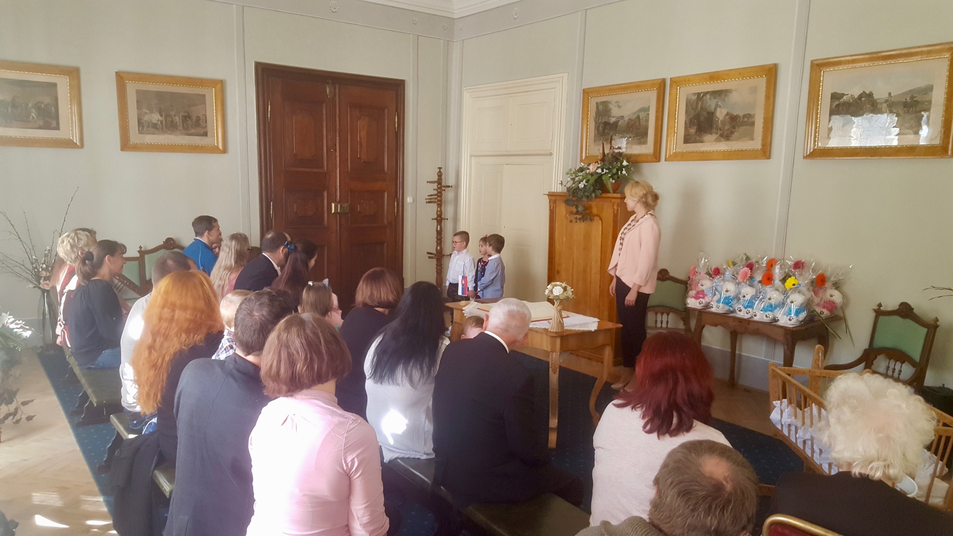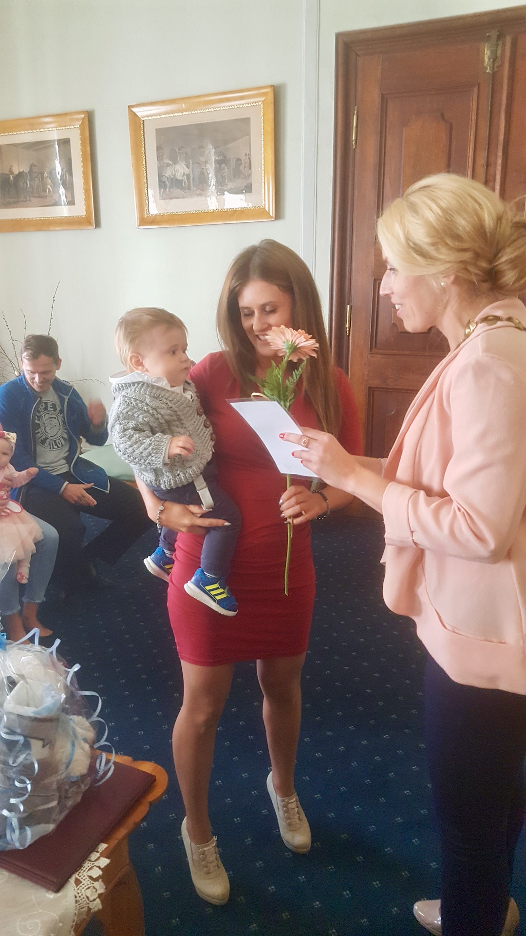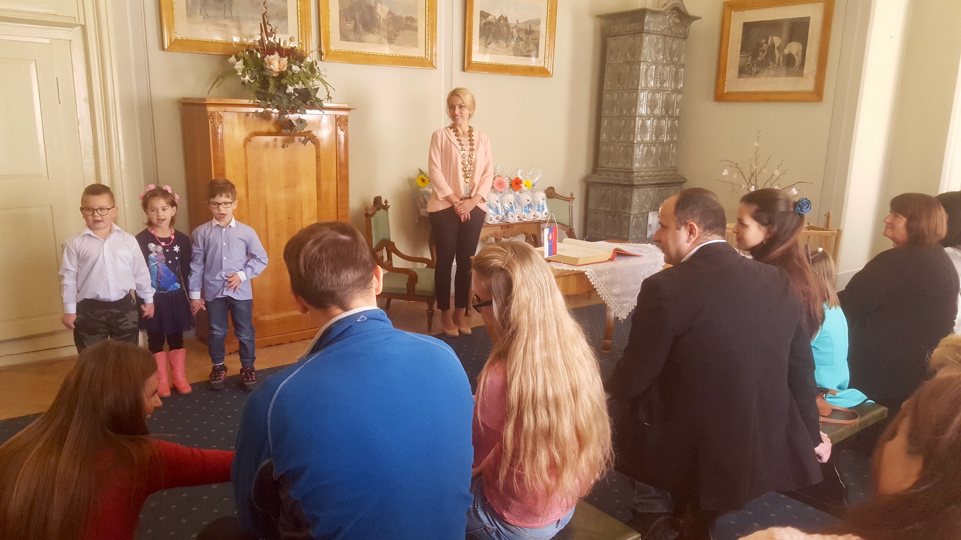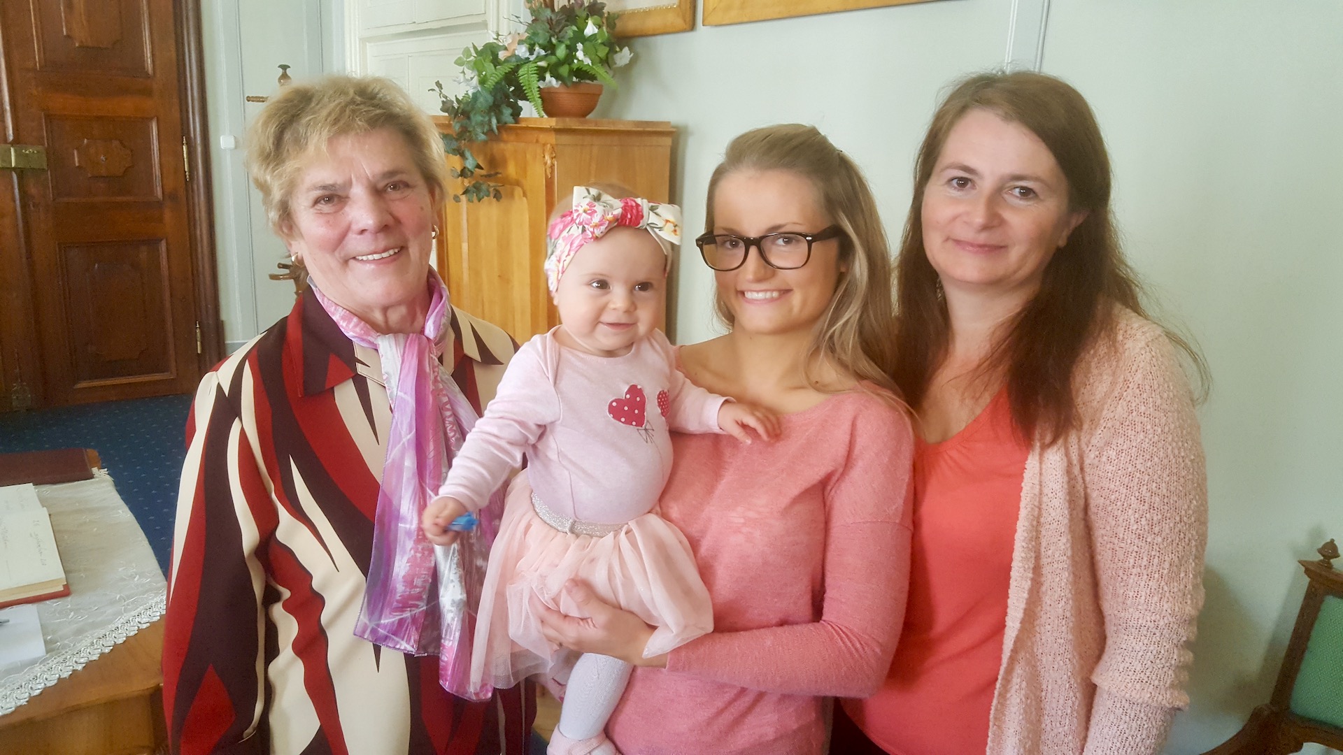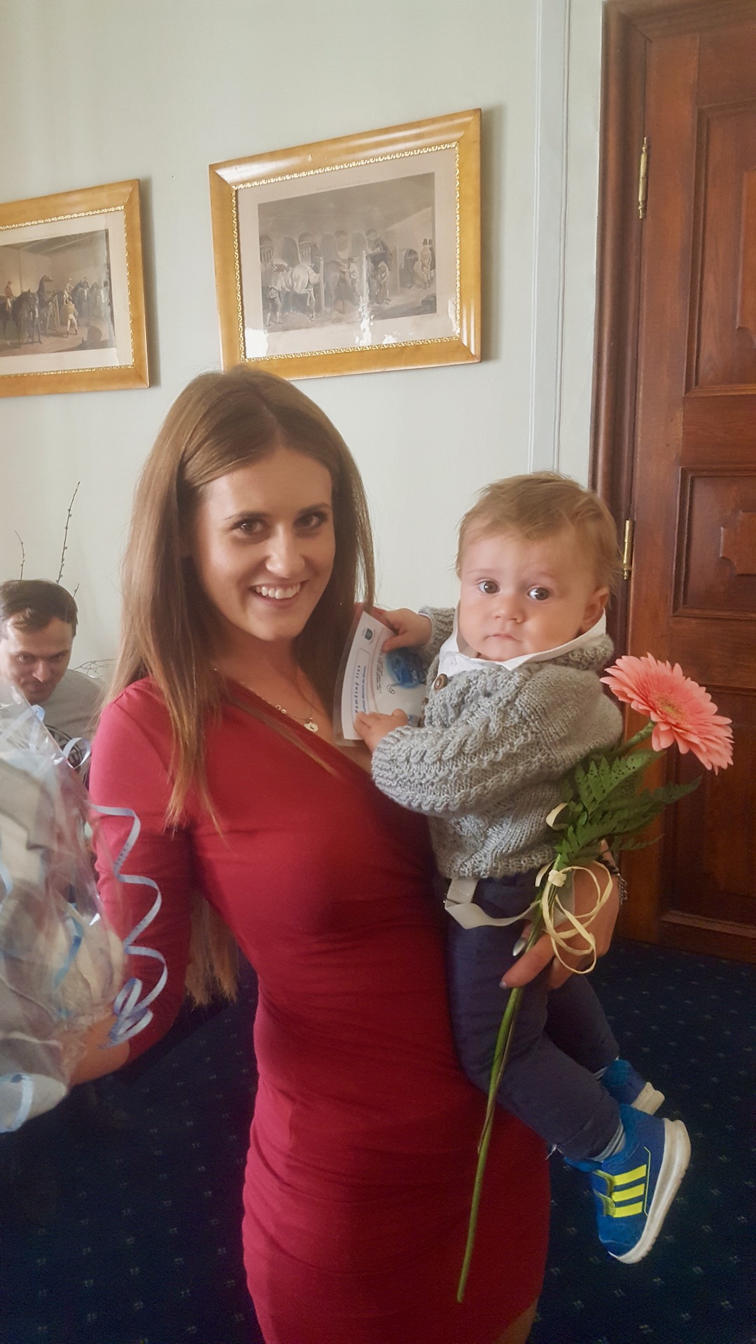 Po príhovore sa rodičia podpísali do pamätnej knihy a prevzali si darček pre svoje dieťatko ako pamiatku na dnešný deň. Táto krásna chvíľa bola spečatená fotografiou každého dieťatka v drevenej kolíske.