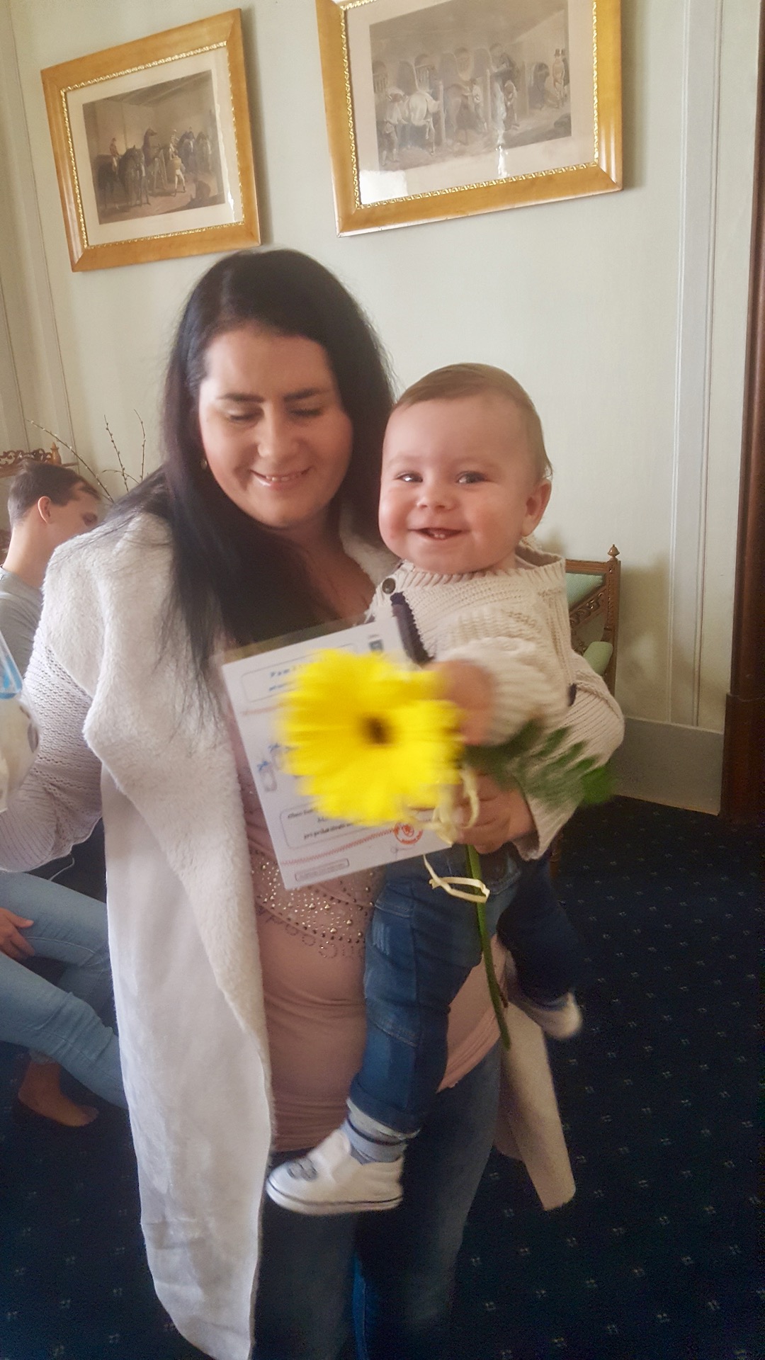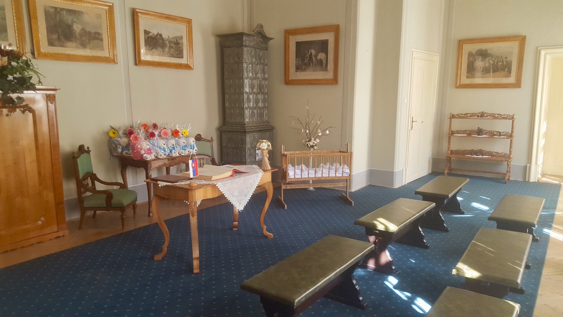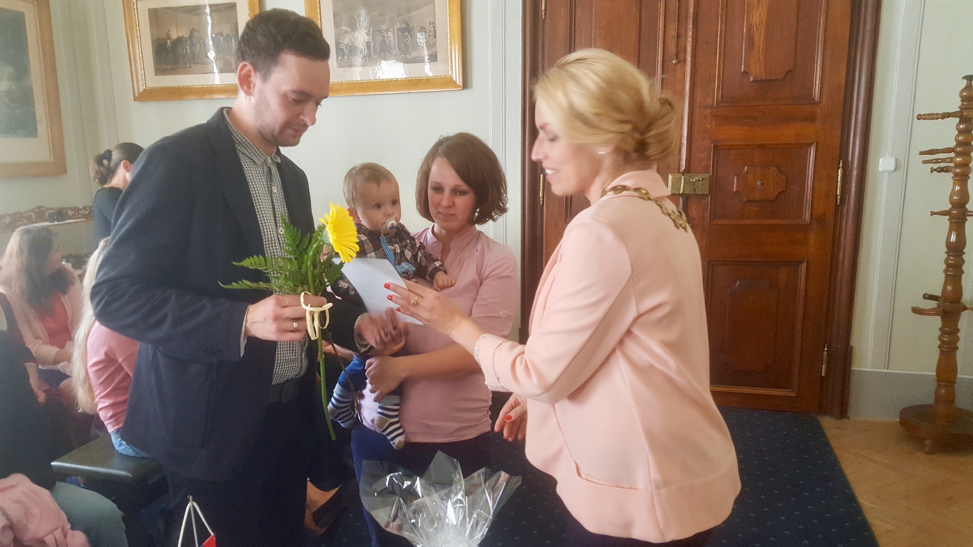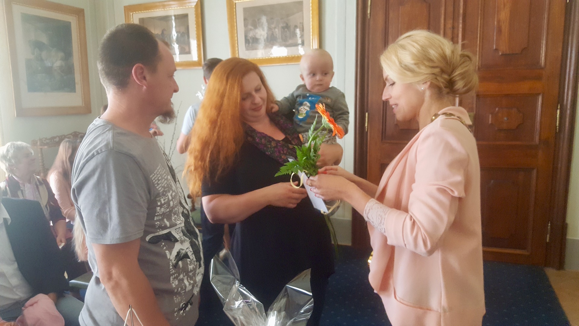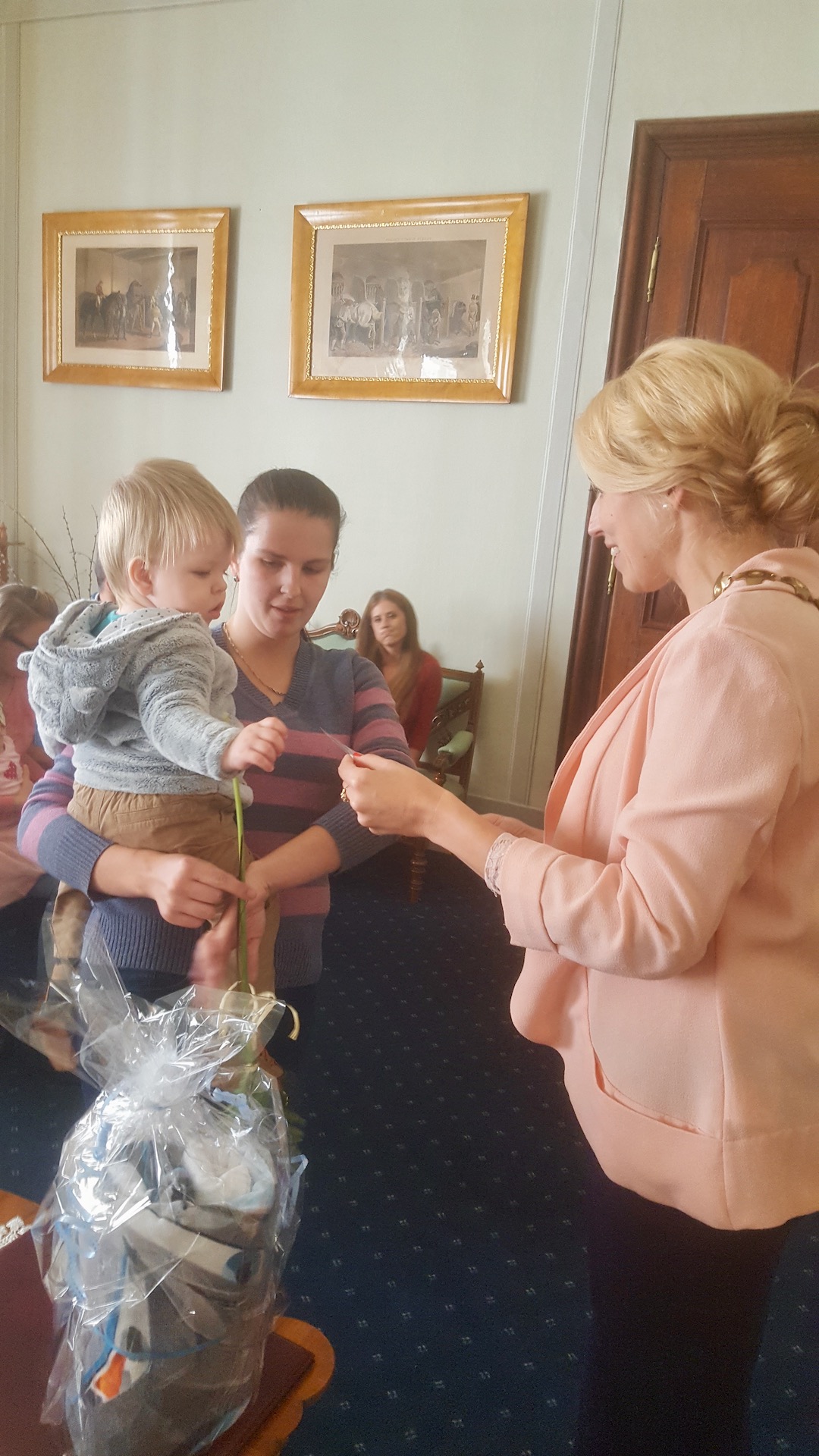 Po príhovore sa rodičia podpísali do pamätnej knihy a prevzali si darček pre svoje dieťatko ako pamiatku na dnešný deň. Táto krásna chvíľa bola spečatená fotografiou každého dieťatka v drevenej kolíske.
