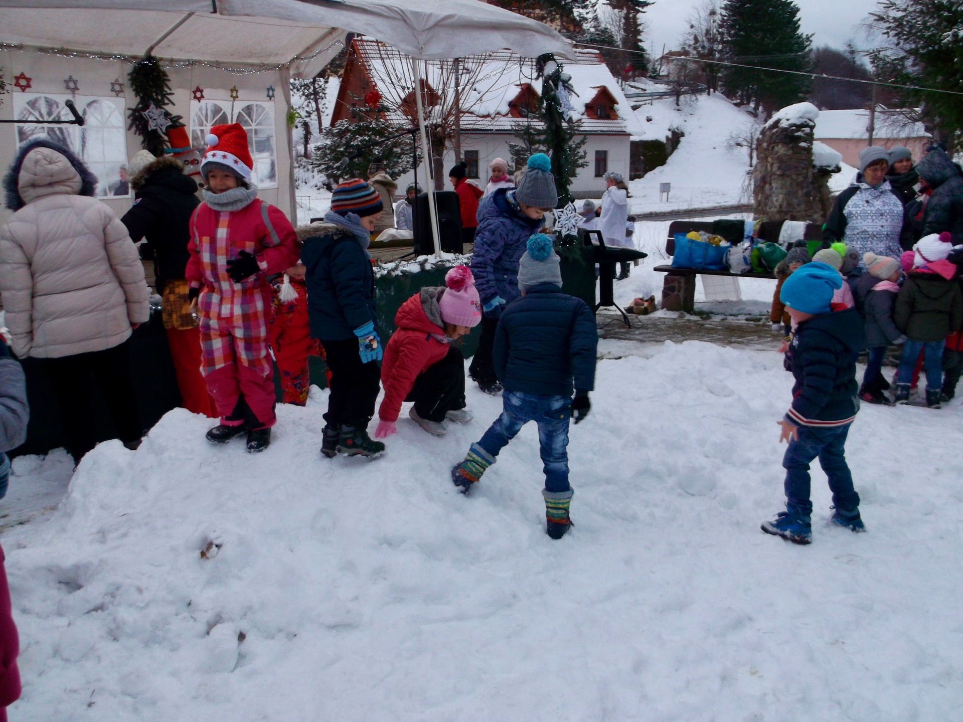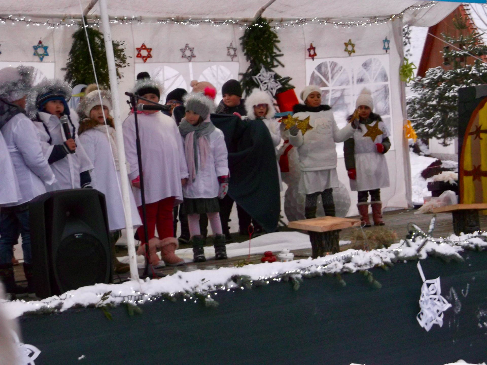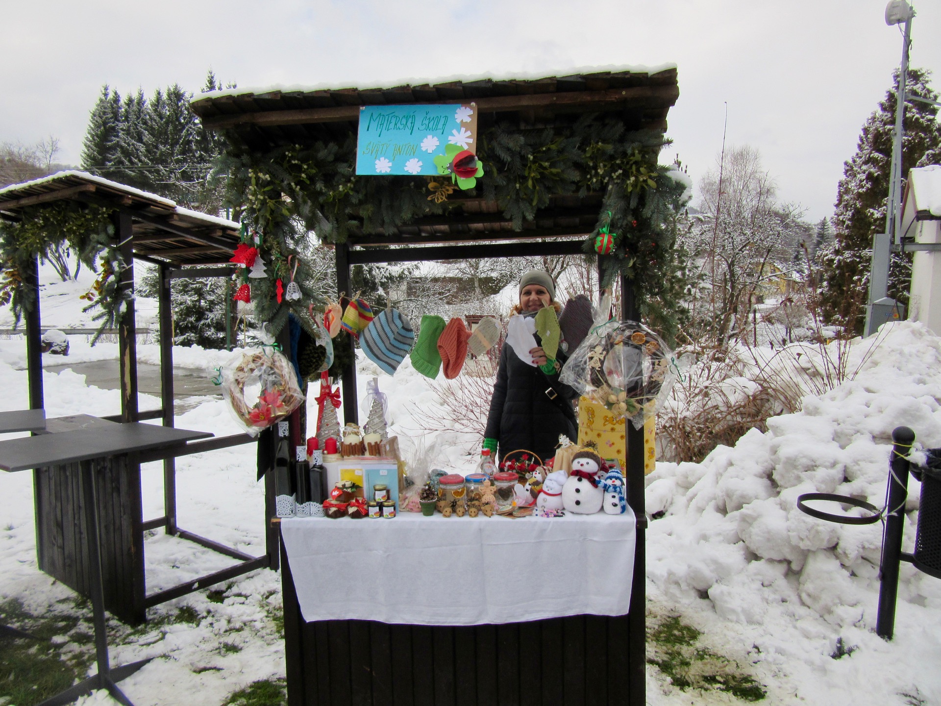 Tieto dve akcie na sklonku roka idú ako ruka v ruke. Nebolo to inak ani tento rok. 9 decembra sa to už od rána začalo pomaly rozbiehať. Prvý nastúpili hasiči so svojimi výrobkami. Klobásky, jaterničky a iné dobroty už začali pomaly vybaľovať. Niečo pred desiatou hodinou sa to už začalo hemžiť s tými, čo prišli ponúkať  na vianočné trhy svoje výrobky. Stánky už boli pripravené a bolo ich treba patrične vyzdobiť a vianočné trhy sa mohli začať.  Sú takým malým krôčikom k najkrajším sviatkom roka – Vianociam. A na takýchto trhom nesmie predsa chýbať  tá krásna predvianočná atmosféra , spojená s vianočnými piesňami, vôňou vareného vínka, punču a opekancov.  O takéto dobroty sa postarali dievčatá z Kafe na Rínku. Aj p. Macková z Konzumu mala širokú ponuku sortimentu. Patrilo medzi ne okrem studena, fašírky, kapustnice aj hriatô. No veru na výber toho bolo dosť.  Aj hasiči sa veru poriadne zvŕtali, lebo v ponuke mali aj pečené klobásky, mäsko, jaterničky a ďalšie dobroty na ktoré sa len tak  slinky zbiehali. No kto umí, ten umí... Veru nepočkali so svojimi  dobrotami ani na príchod Mikuláša. Všetko sa im minulo a to svedčí o tom, že kvalita je kvalita a ľudia vedia čo kupujú. Mikuláš mal prísť o 15.00 hod, ale trošku meškal . Deti mu však prepáčili, lebo vedeli že im prinesie darčeky. Konečne sa objavil v sprievode anjelika a všetkých privítal. Ale to hlavné slovo mala predsa len p. starostka Simona Guláková, ktorá v roli anjelika ešte raz všetkých srdečne privítala a tým otvorila aj kultúrny program, ktorí si pre Mikuláša ,ale aj pre všetkých prítomných pripravili deti zo ZŠ s MŠ Ferdinanda Coburga vo Svätom Antone.  Joj, tých, ale tam bolo  ako maku! Usmiate a tak trochu vyštípané mrazíkom veselo šantili po snehu, kým neprišiel čas vykročiť na pódium. Tí najmenší  so škôlkármi vytvorili spolu krásne vystúpenie pod názvom ZIMA. Snehové vločky pomaly padali na zem a vytvárali bielu perinku, pod ktorou  by mala až do jari  tíško oddychovať zem. Anjeliky sa tíško vznášali povetrím, aby nezobudili Ježiška v náručí p. Márie. Blikajúce svetielka v malých ručičkách detí boli symbolom mieru, pokoja a lásky. Bol to nádherný pohľad na deti , ktoré sa vžili do takých krásnych rolí a svojim vystúpením nám priblížili najkrajšie sviatky roka – VIANOCE. Že som zabudla na čertov? Ale čerta starého zabudla! Aj tí tam niekde pobehovali, ale z roka na rok sa ich už deti vôbec neboja. No a po krásnom vystúpení sa už rozdávali sladkosti. Mikuláš a anjelik boli naozaj štedrí. Všetko krásne má aj svoj začiatok, ale aj koniec. A mne už zostáva poďakovať sa tým p. učiteľkám, ktoré pripravili s deťmi pekný kultúrny program. Boli nimi: Mgr.Jurana Takáčová, Mgr.Erika Ivaničová, Mgr. Veronika Lipovská, Anna Valachová, Erika Krunková, Monika Kašiarová a Anna Ríhová. Poďakovanie patrí všetkým, ktorí sa akoukoľvek formou podieľali na tejto akcii. Detičky ďakujú za darčeky a my ostatní za krásnu atmosféru blížiacich sa Vianoc. Poďakovanie patrí hlavnému organizátorovi akcie, ktorým bola obec Svätý Anton a spoluorganizátorom: DHZ Svätý Anton, Kafe na Rínku, Konzum na Rínku a Nadšenci ľadového hokeja a futbalu. Všetkým patrí naše veľké ĎAKUJEME!