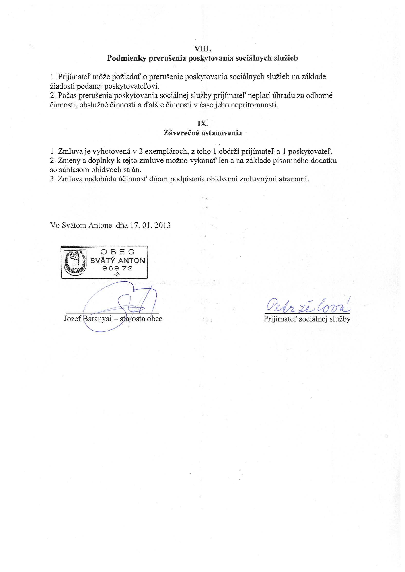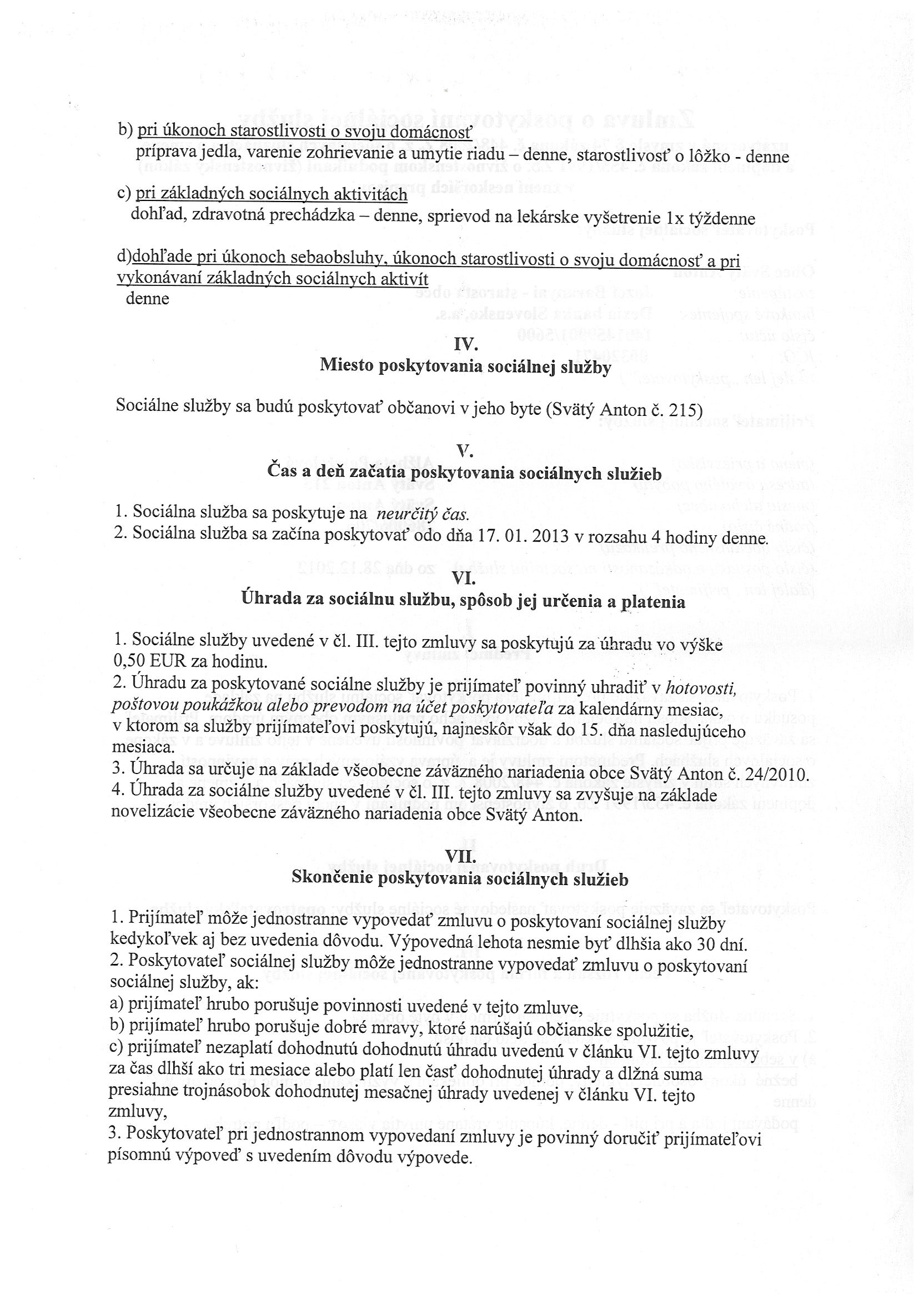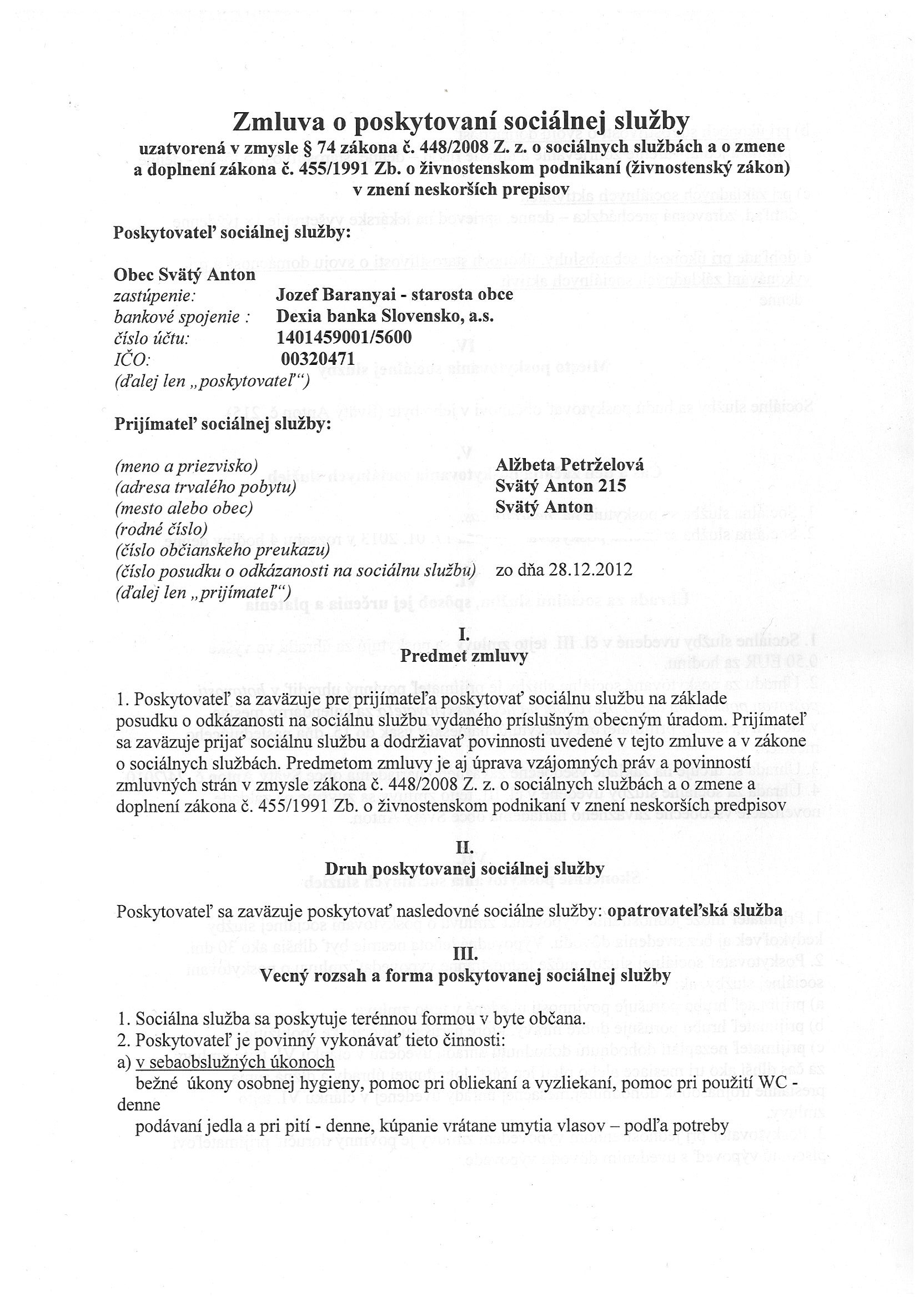 4/2013, Alžbeta Petrželová, Svätý Anton č. 215, Zmluva o poskytovaní sociálnej služby |