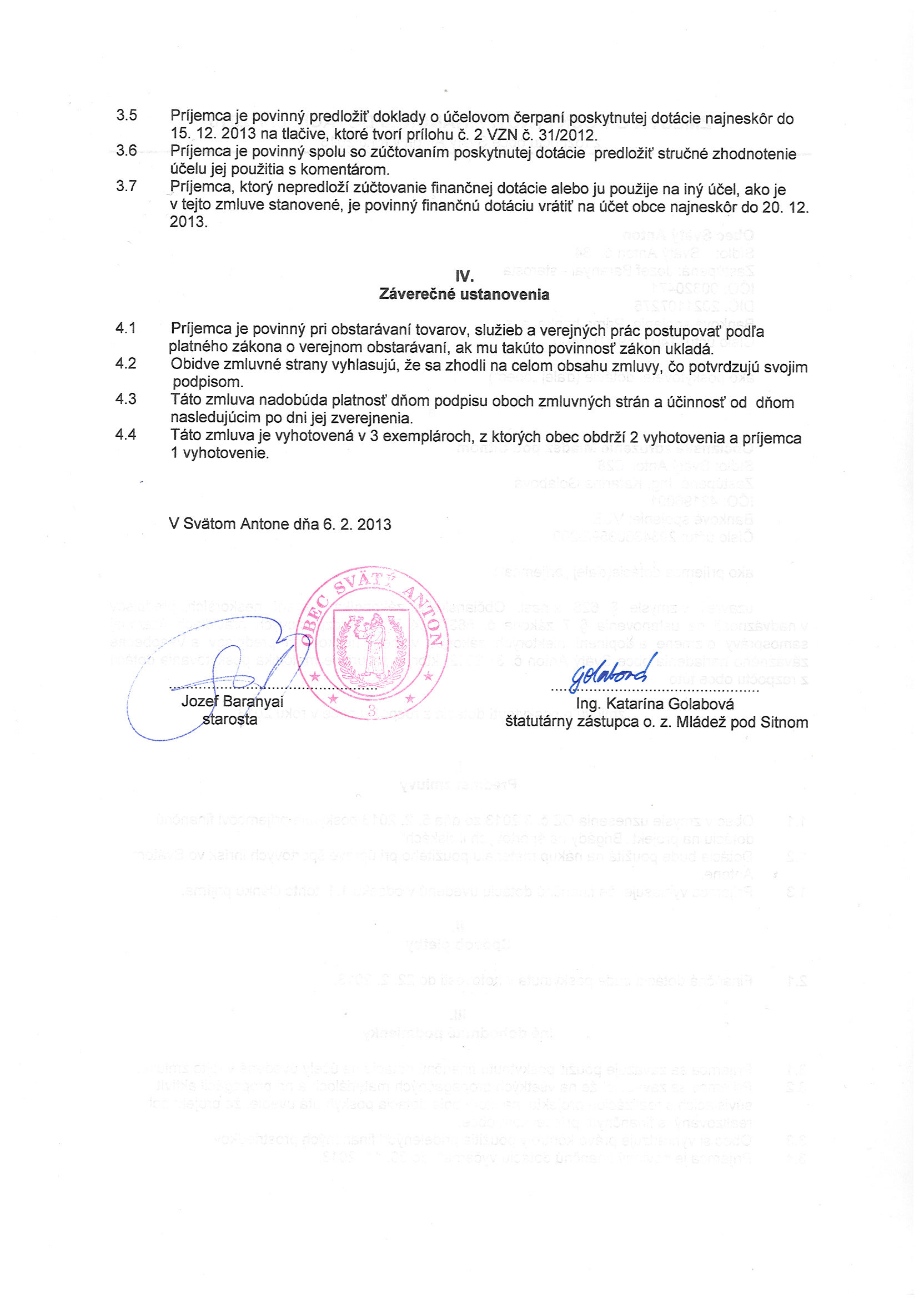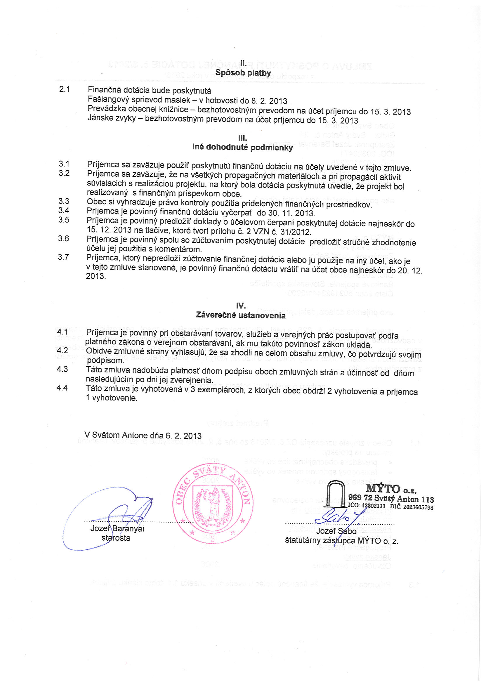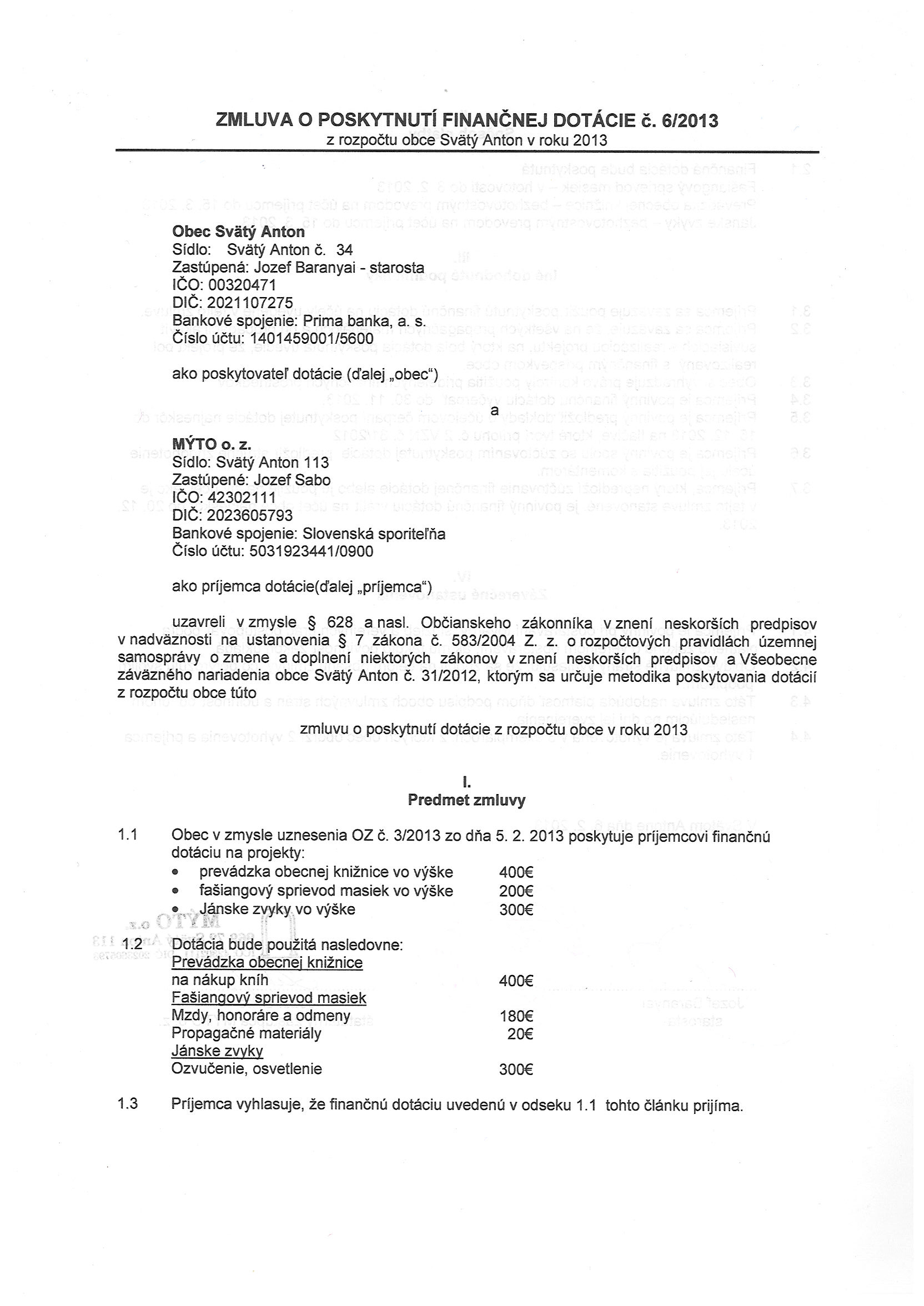 6/2013, Mýto o. z., Zmluva o poskytnutí finančnej dotácie |