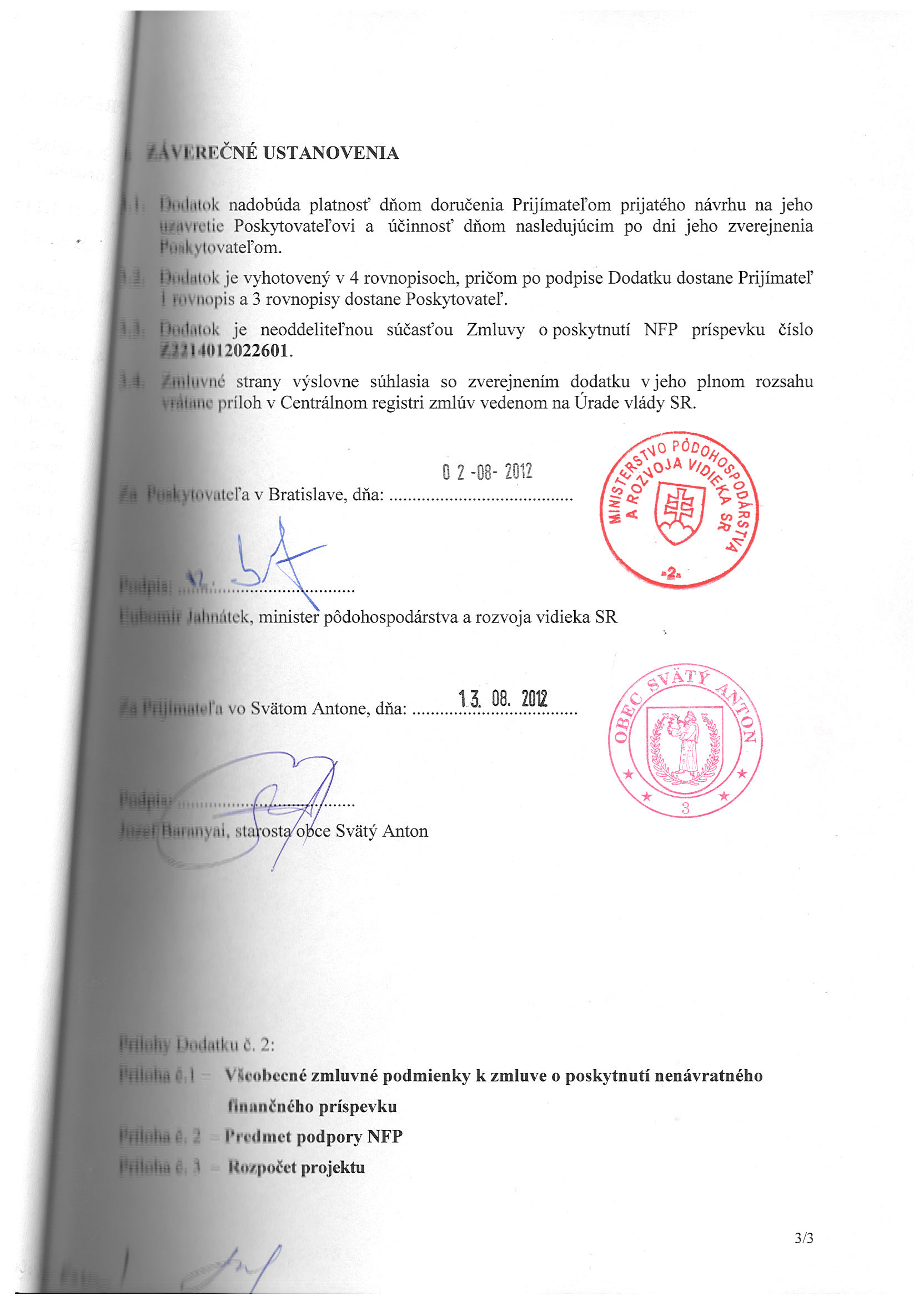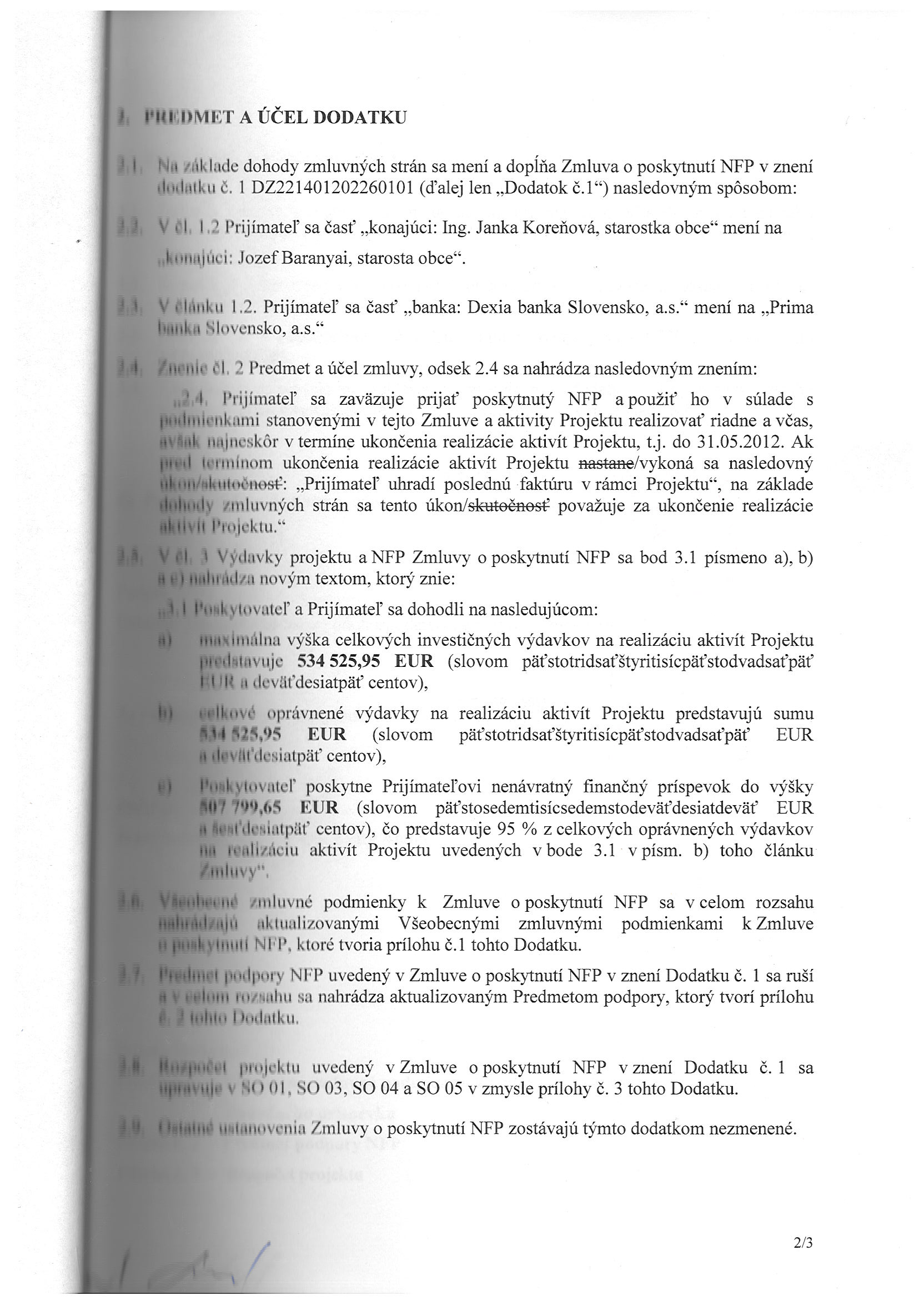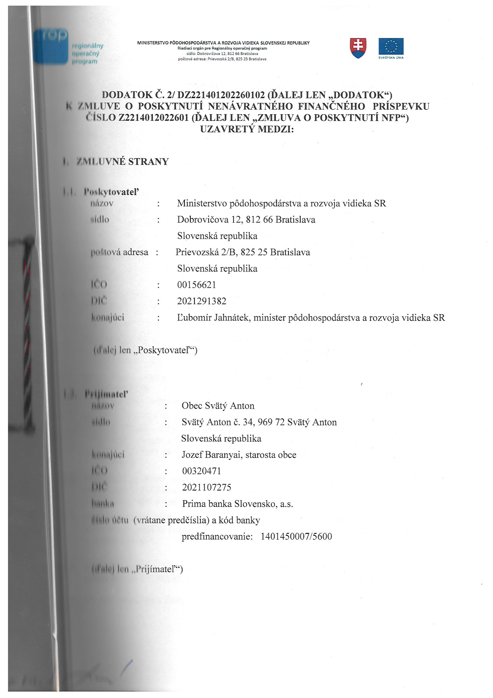 Dodatok č. 2/DZ221401202260102, Ministerstvo pôdohospodárstva a rozvoja vidieka SR Bratislava, Dodatok č. 2 k zmluve o poskytnutí nenávratného finančného príspevku |