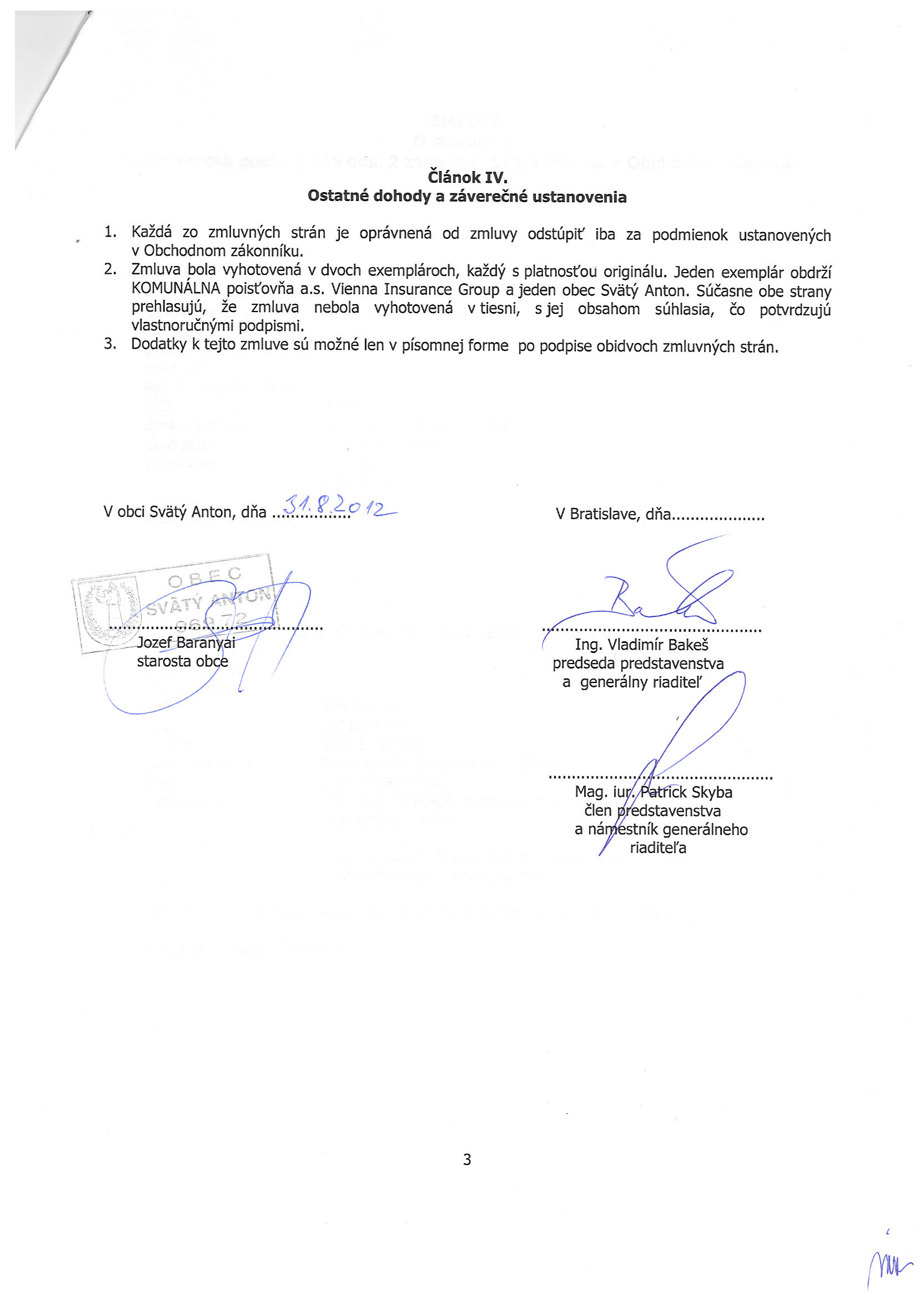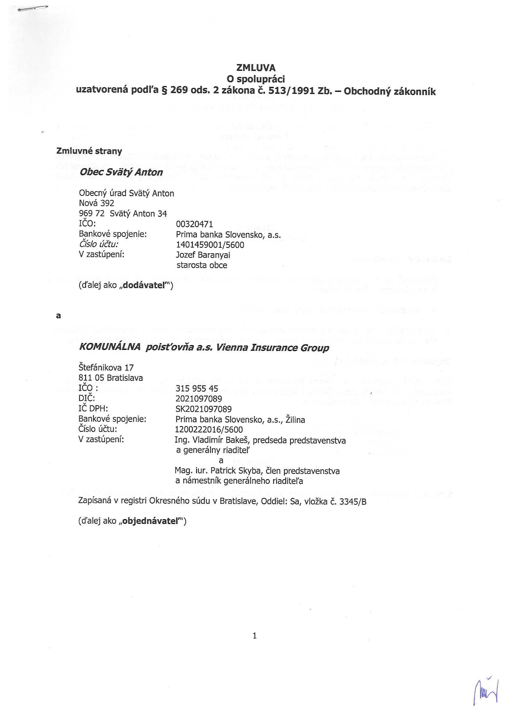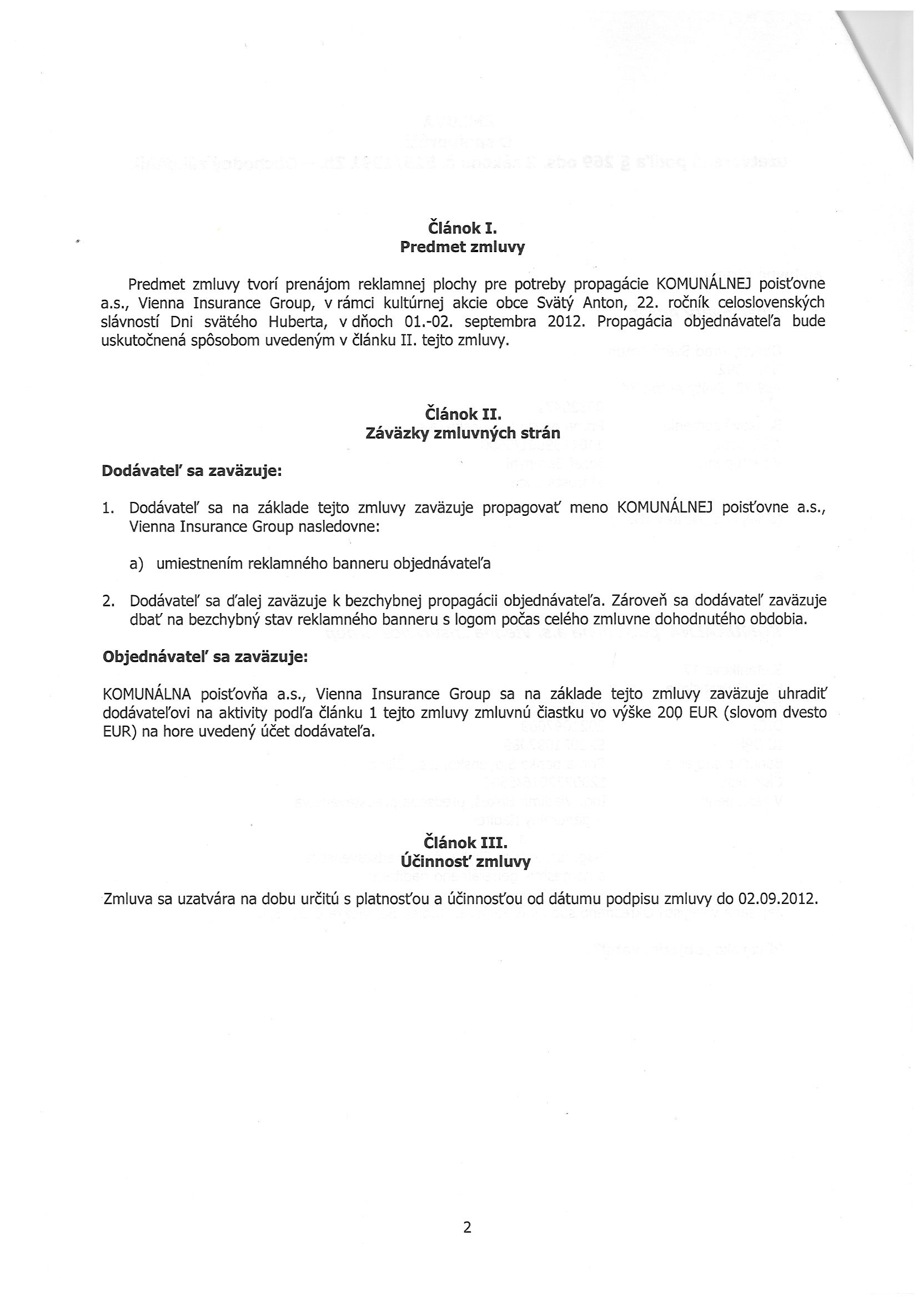 53/2012, Komunálna poisťovňa a.s. Bratislava, Zmluva o spolupráci |