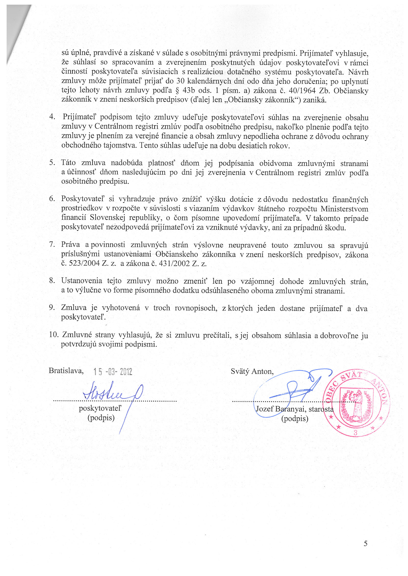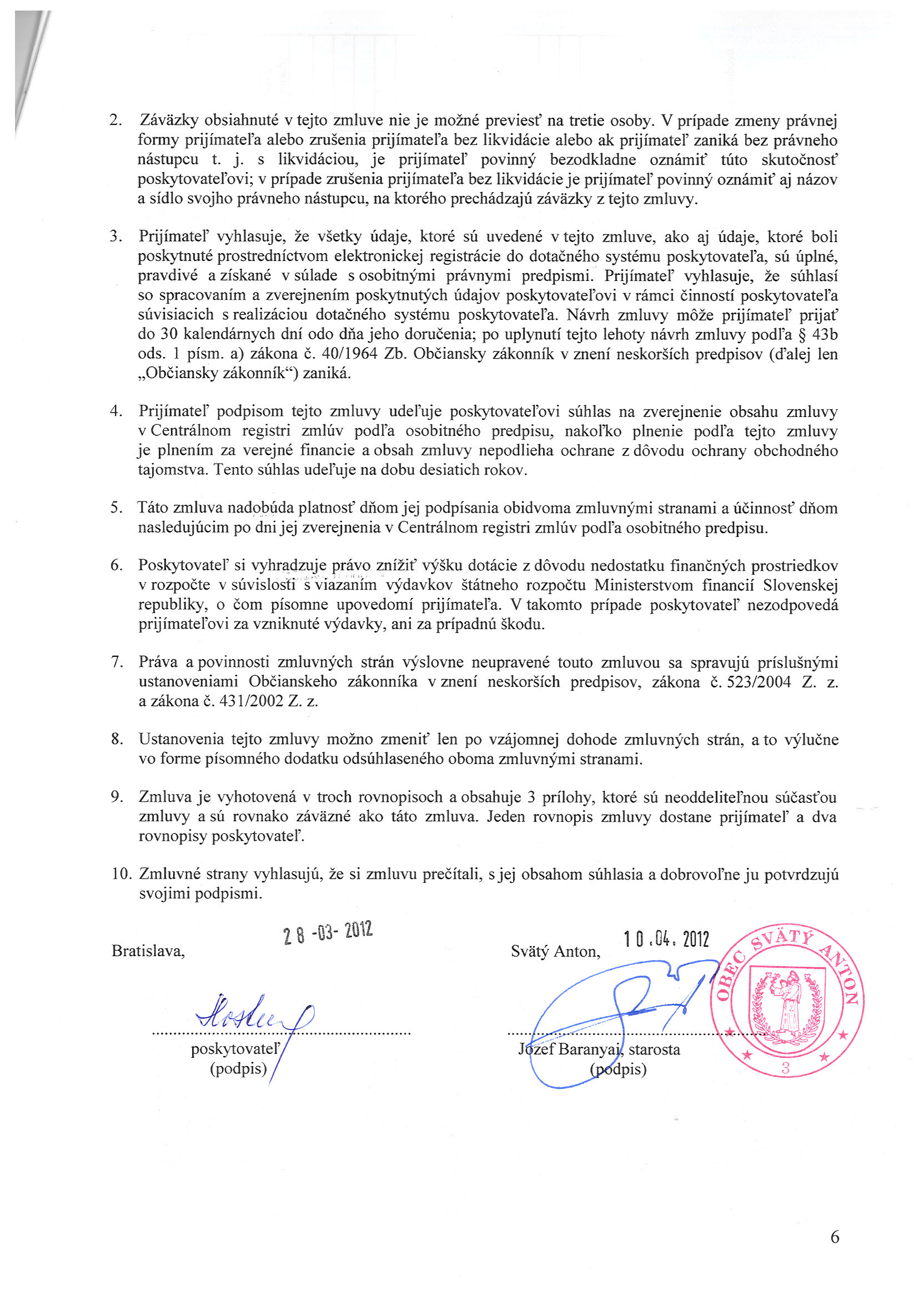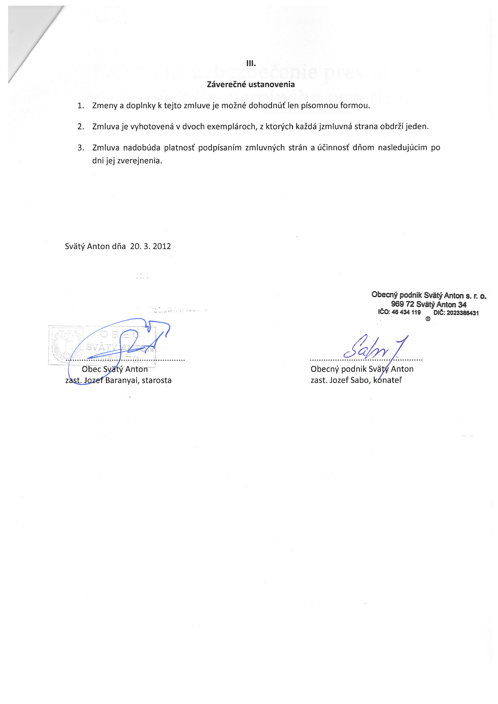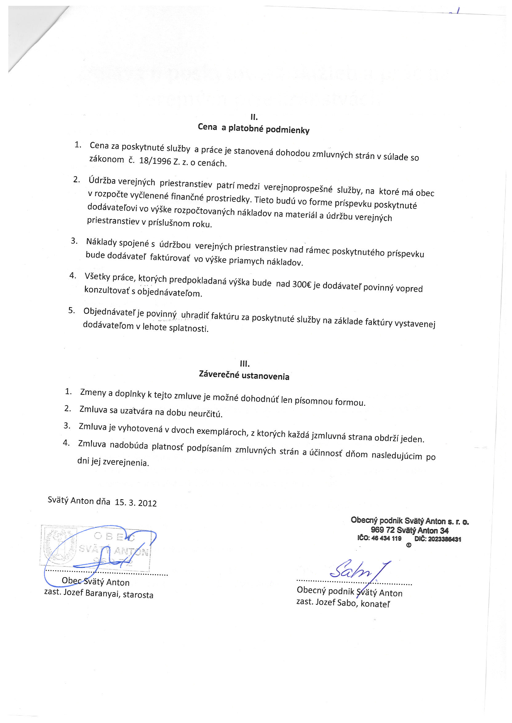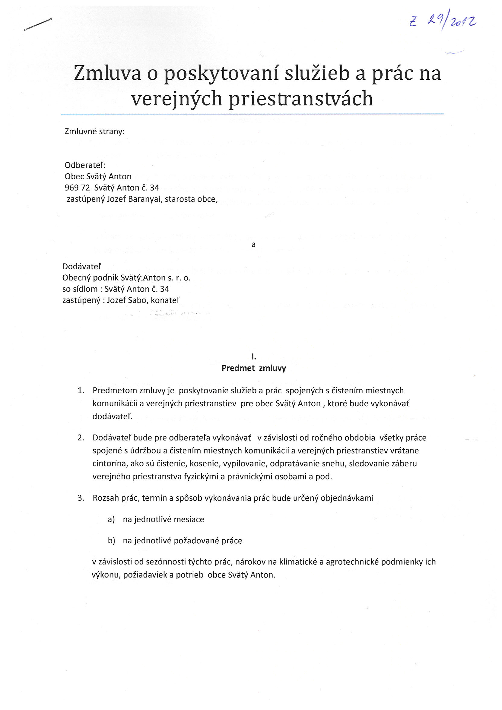 29/2012, Obecný podnik s. r. o. Svätý Anton, Zmluva o poskytovaní služieb a prác na verejných priestranstvách |
