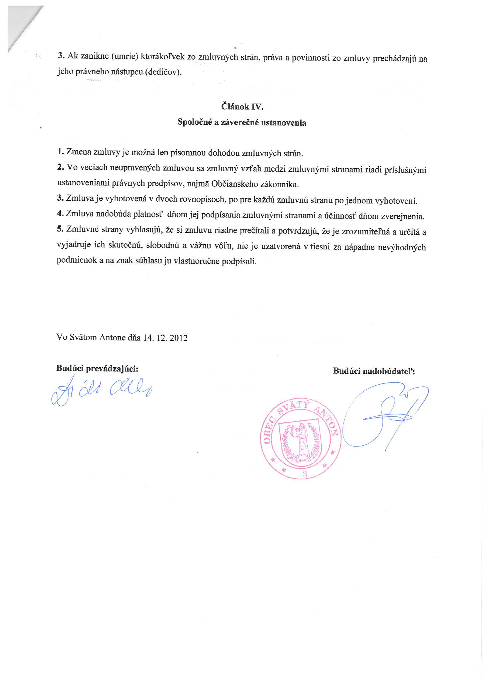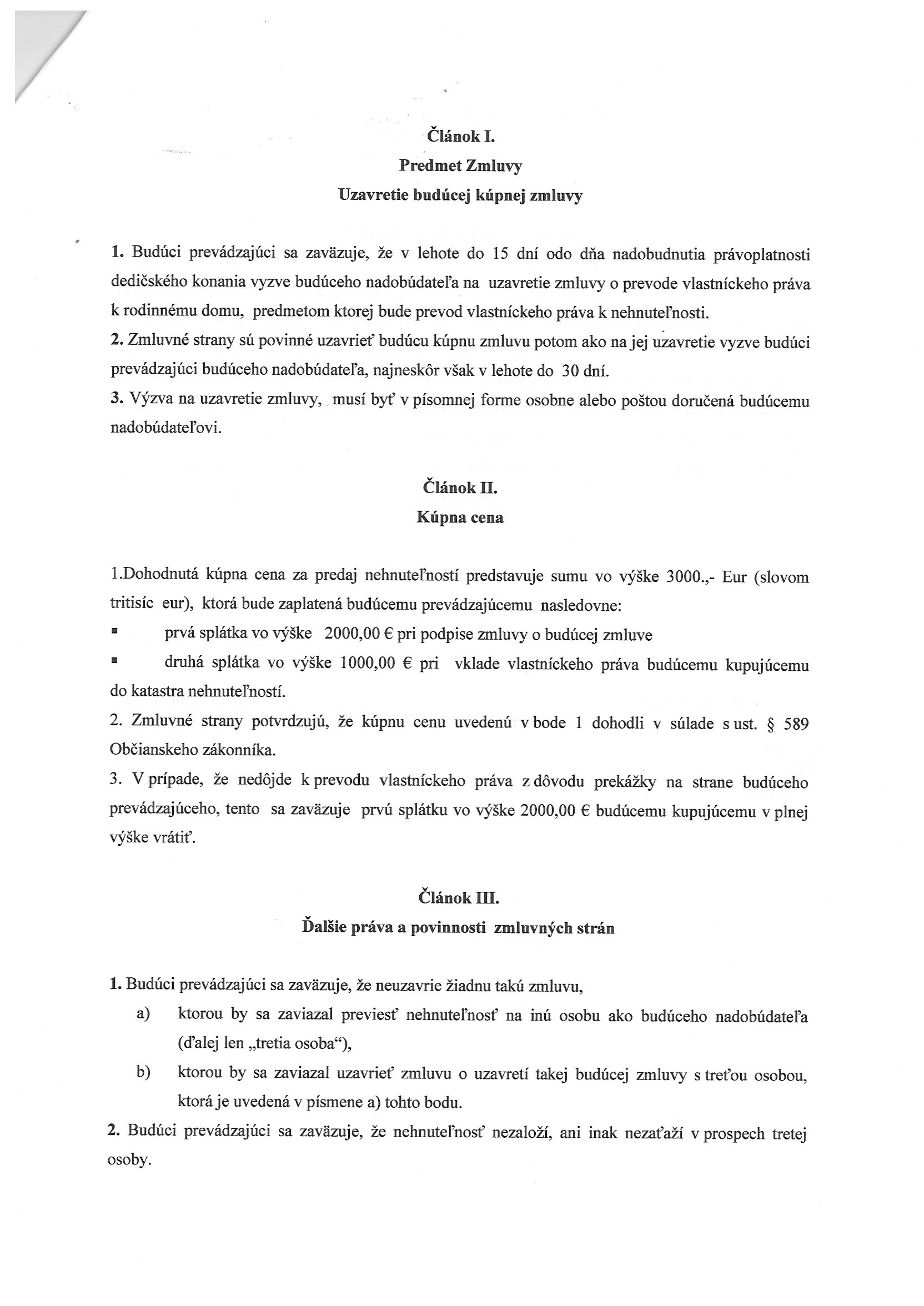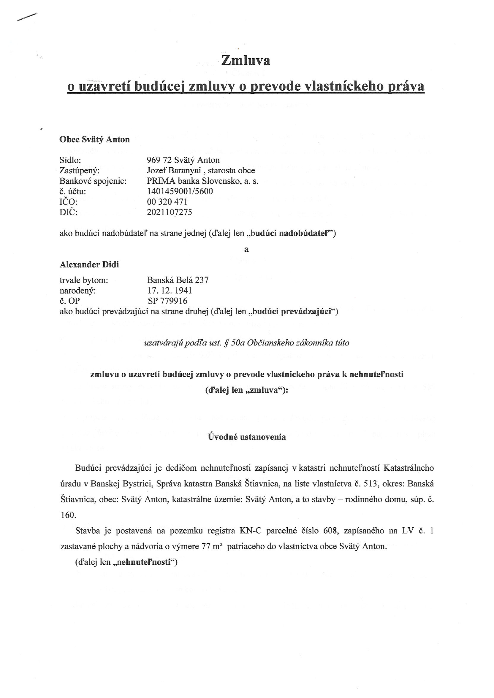 64/2012, Alexander Didi Banská Belá, Zmluva o budúcej zmluve o prevode vlastníckeho práva |