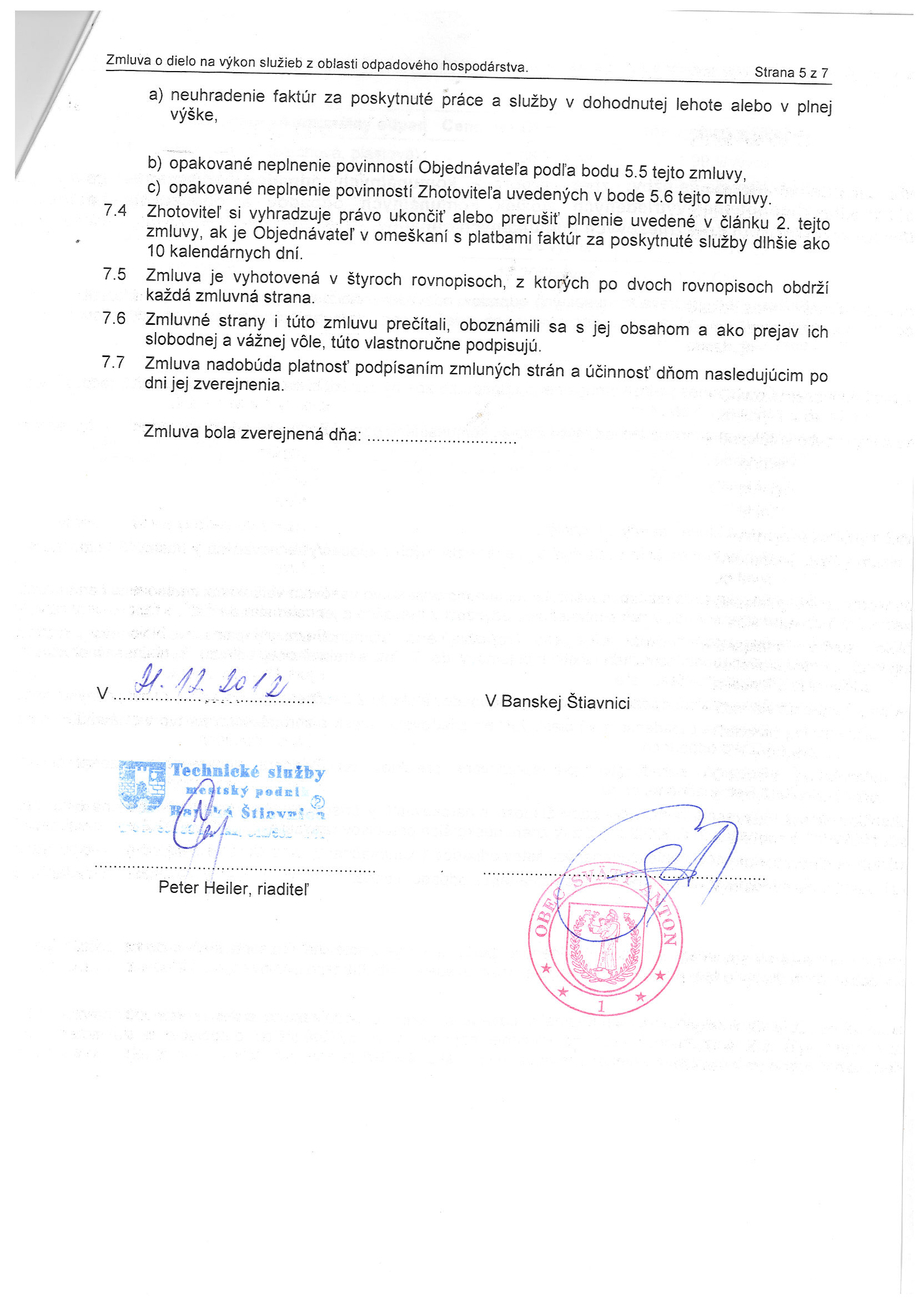 65/2012, Technické služby Banská Štiavnica, Zmluva o dielo na výkon služieb z oblasti odpadového hospodárstva - zber, preprava,... |