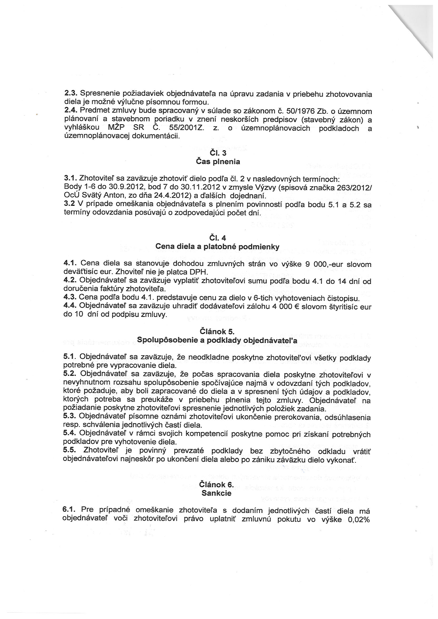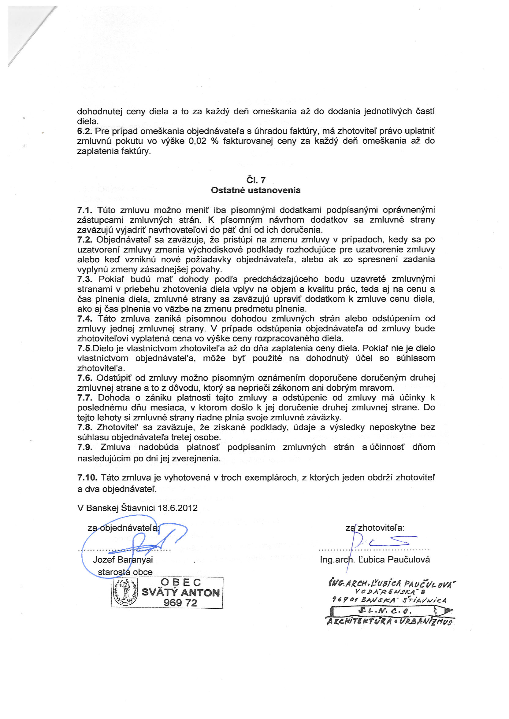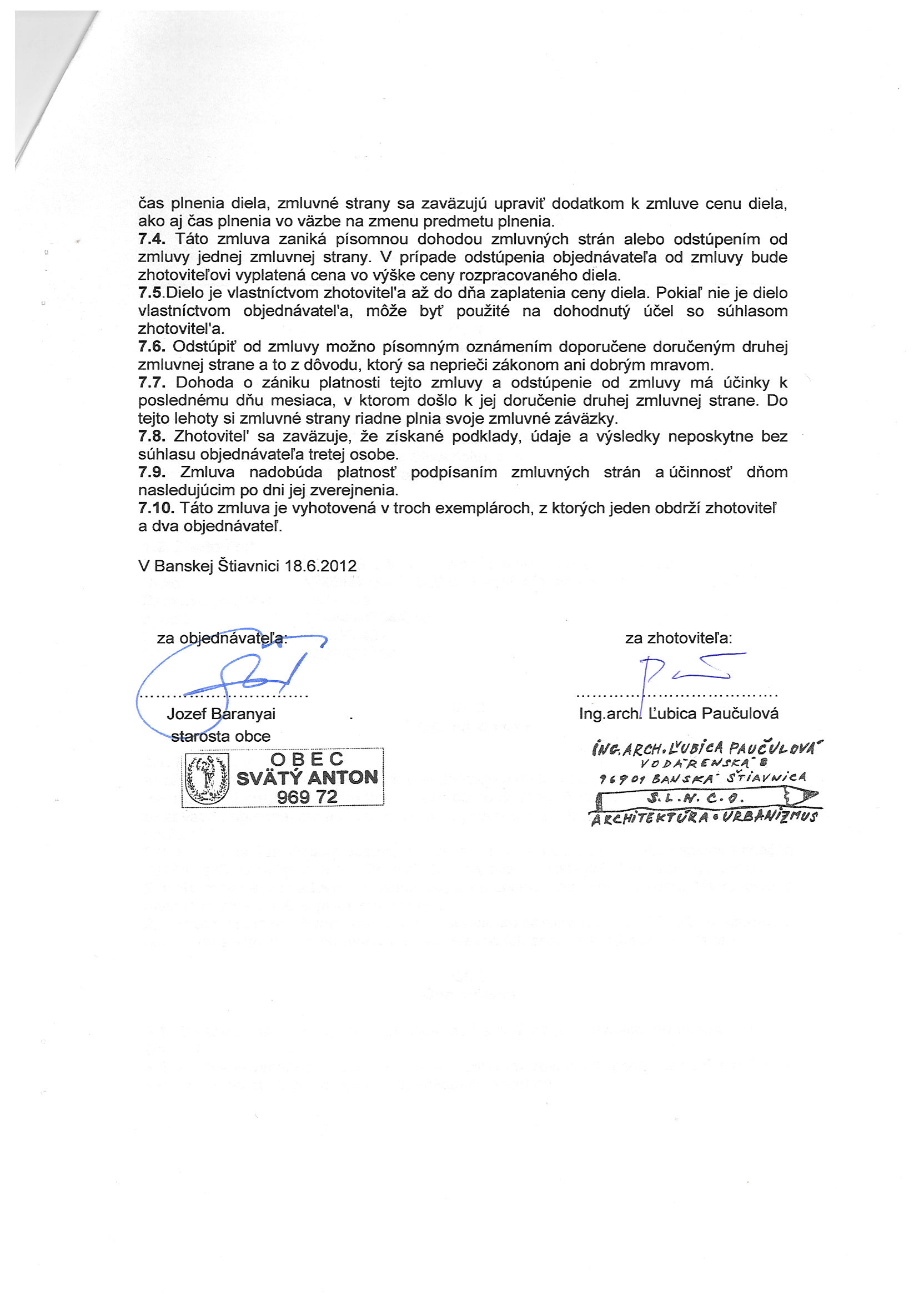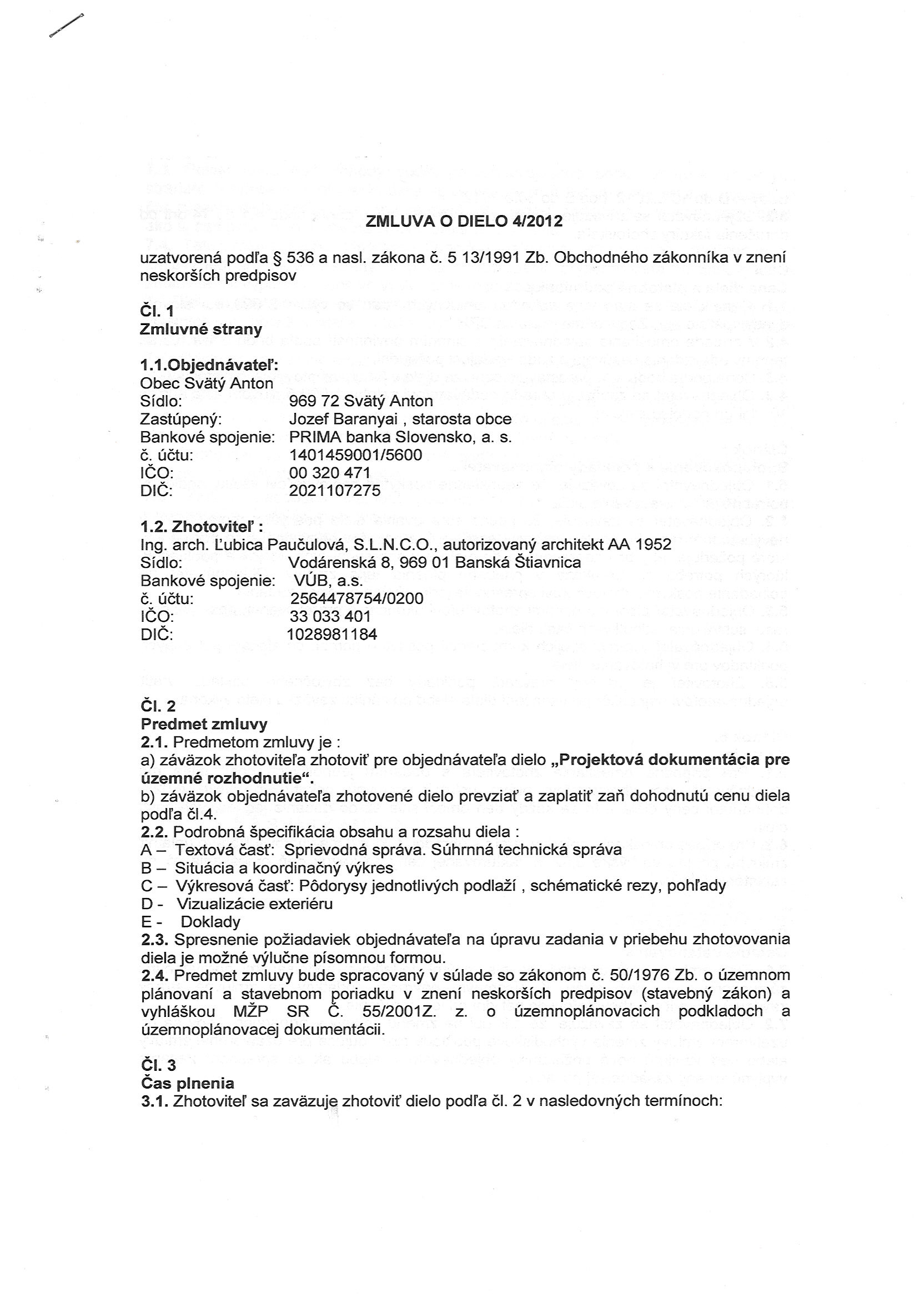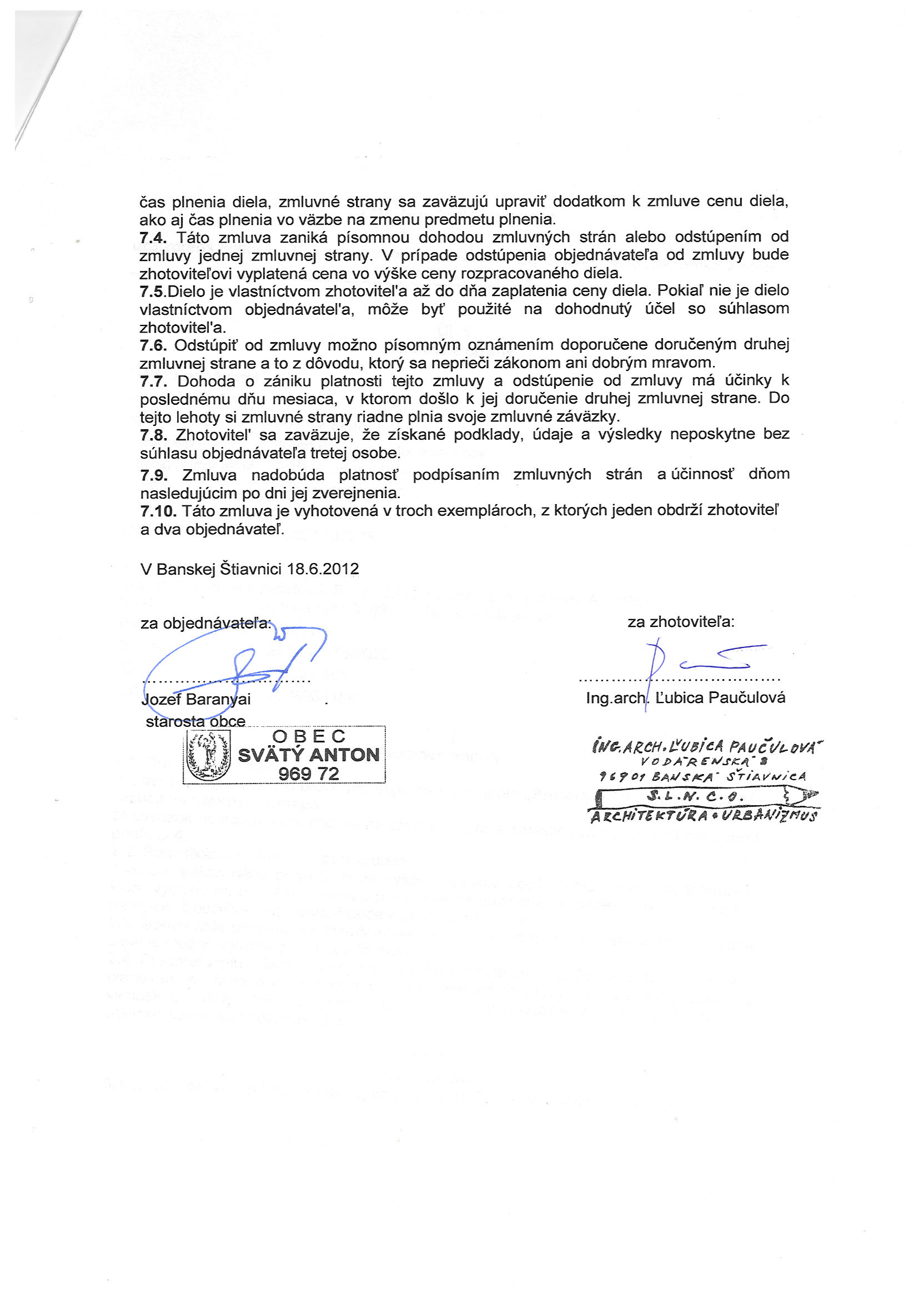4/2012, Ing. arch. Ľubica Paučulová S. L. N. C. O. Banská Štiavnica, Zmluva o dielo 4/2012 Projektová dokumentácia pre územné rozhodnutie |