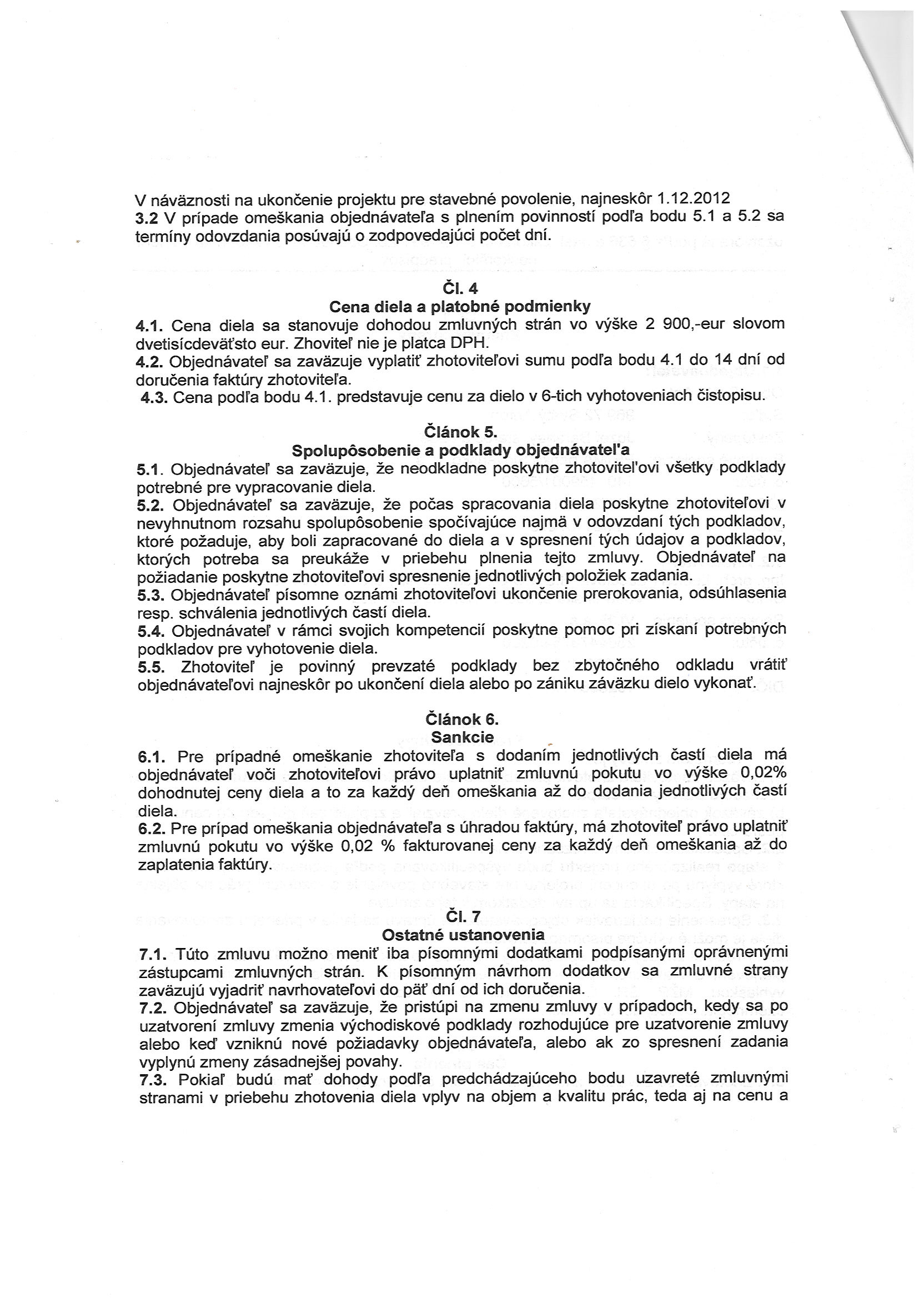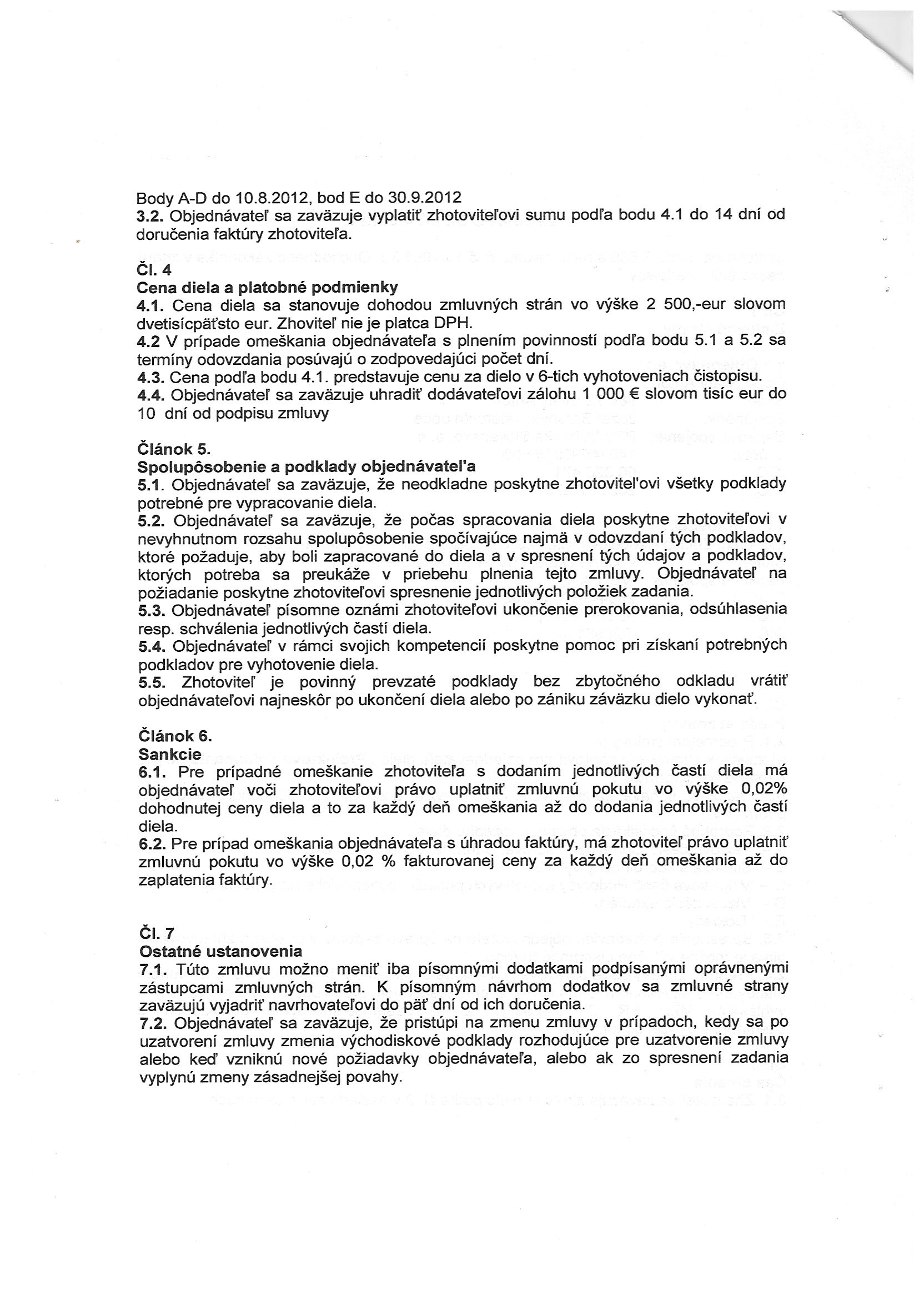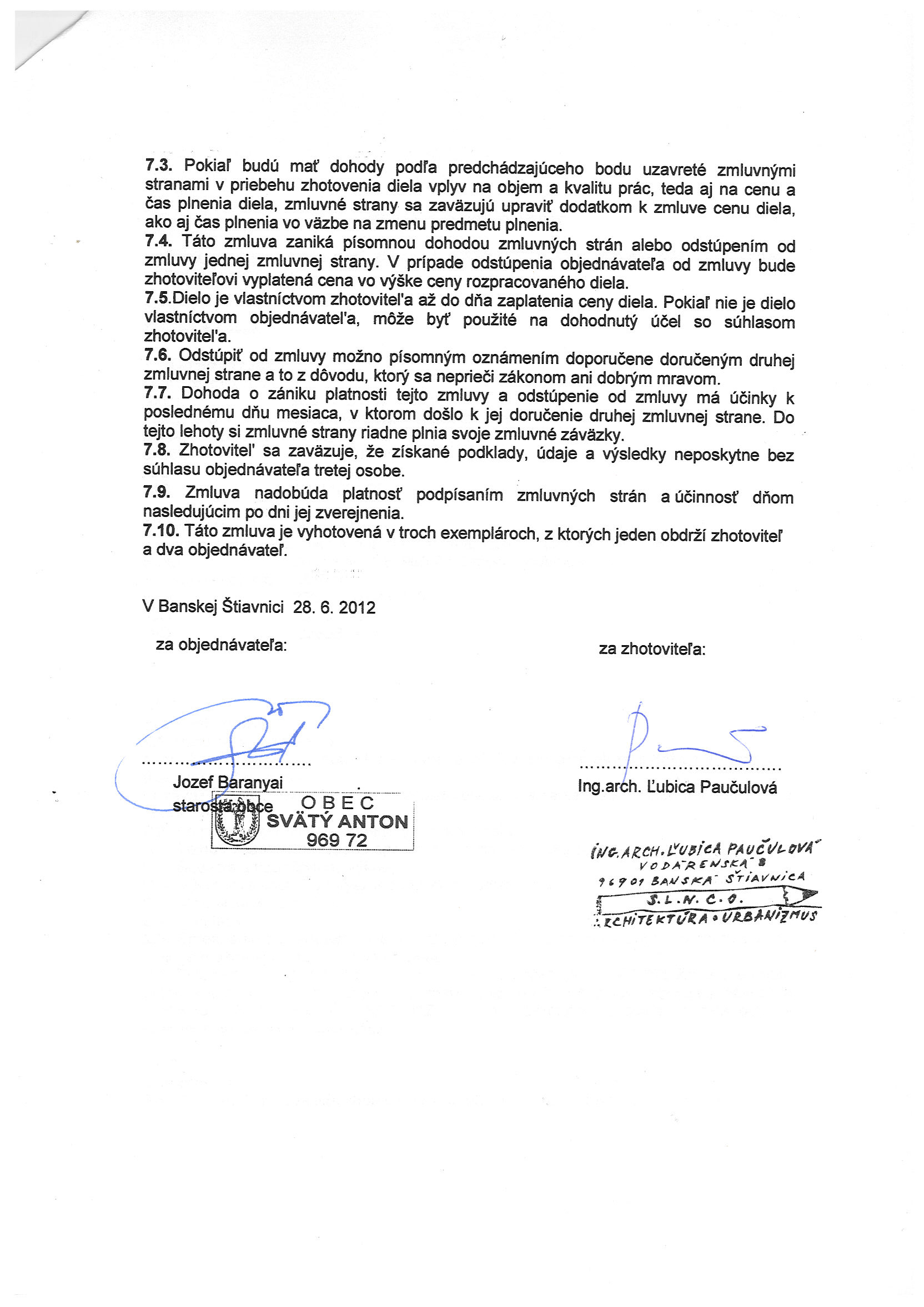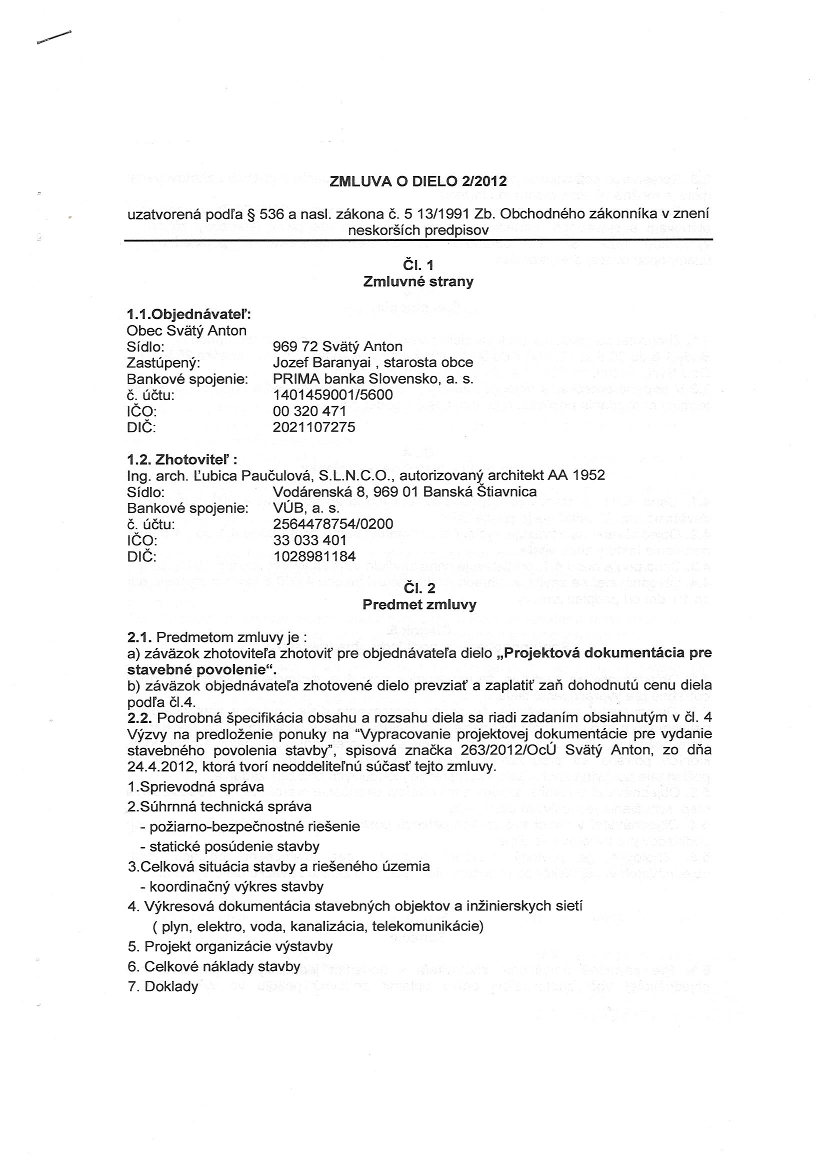 2/2012, Ing. arch. Ľubica Paučulová, S. L. N. C. O. Banská Štiavnica, Zmluva o dielo 2/2012 projektová dokumentácia pre stavebné povolenie |