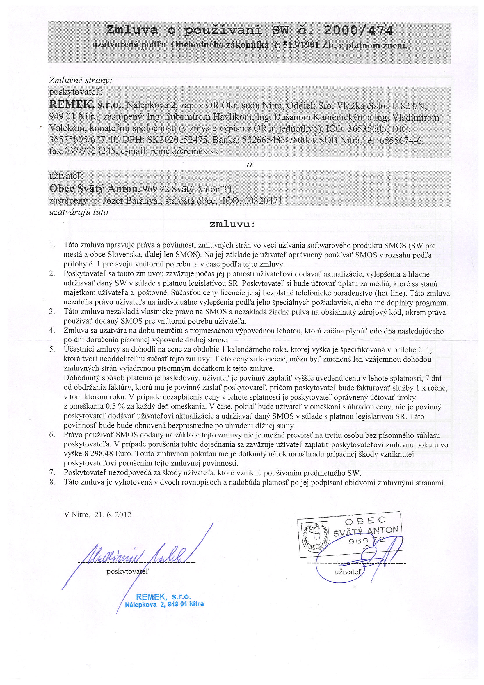 2000/474, REMEK, s. r. o. Nitra, Zmluva o pužívaní SW |