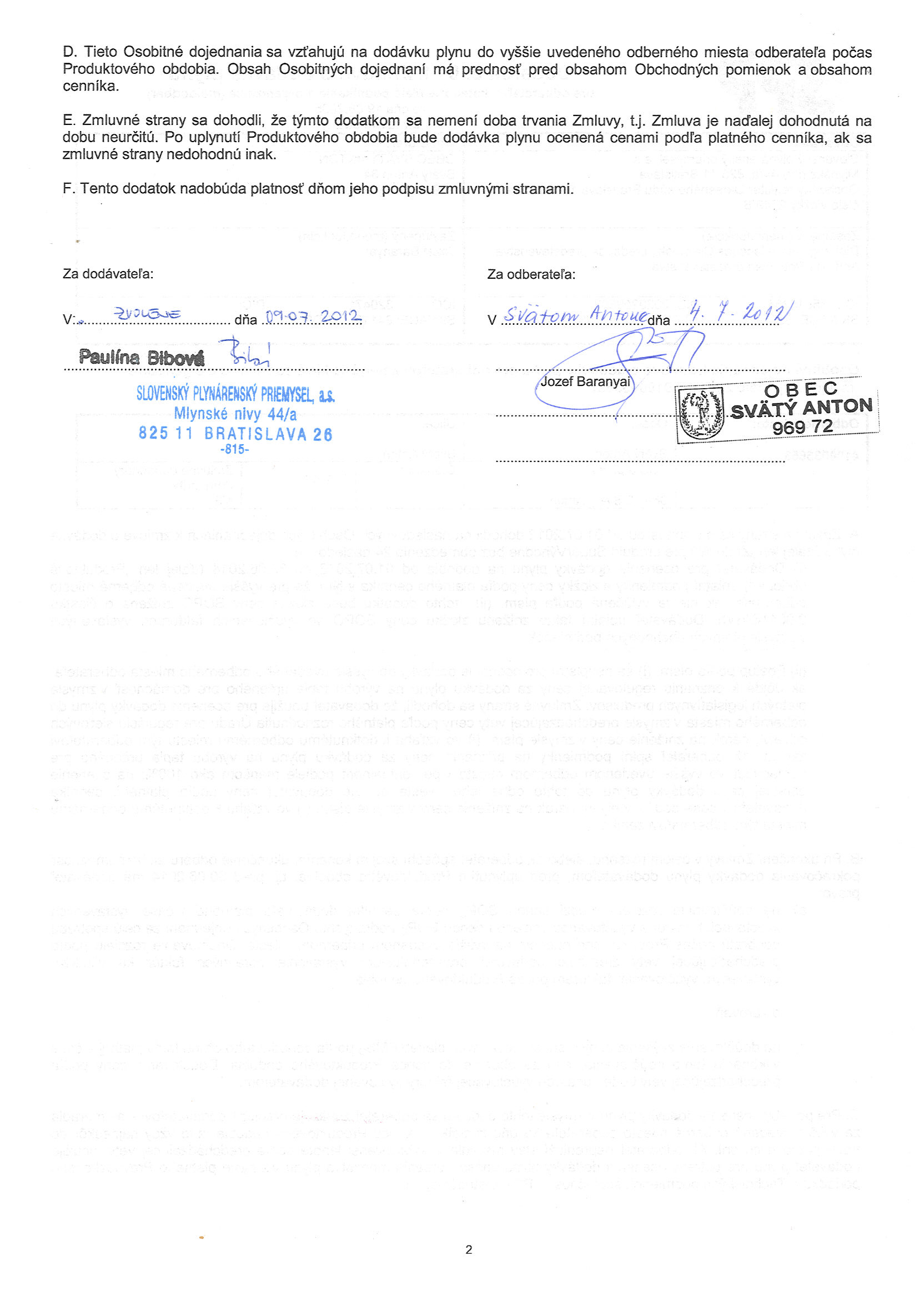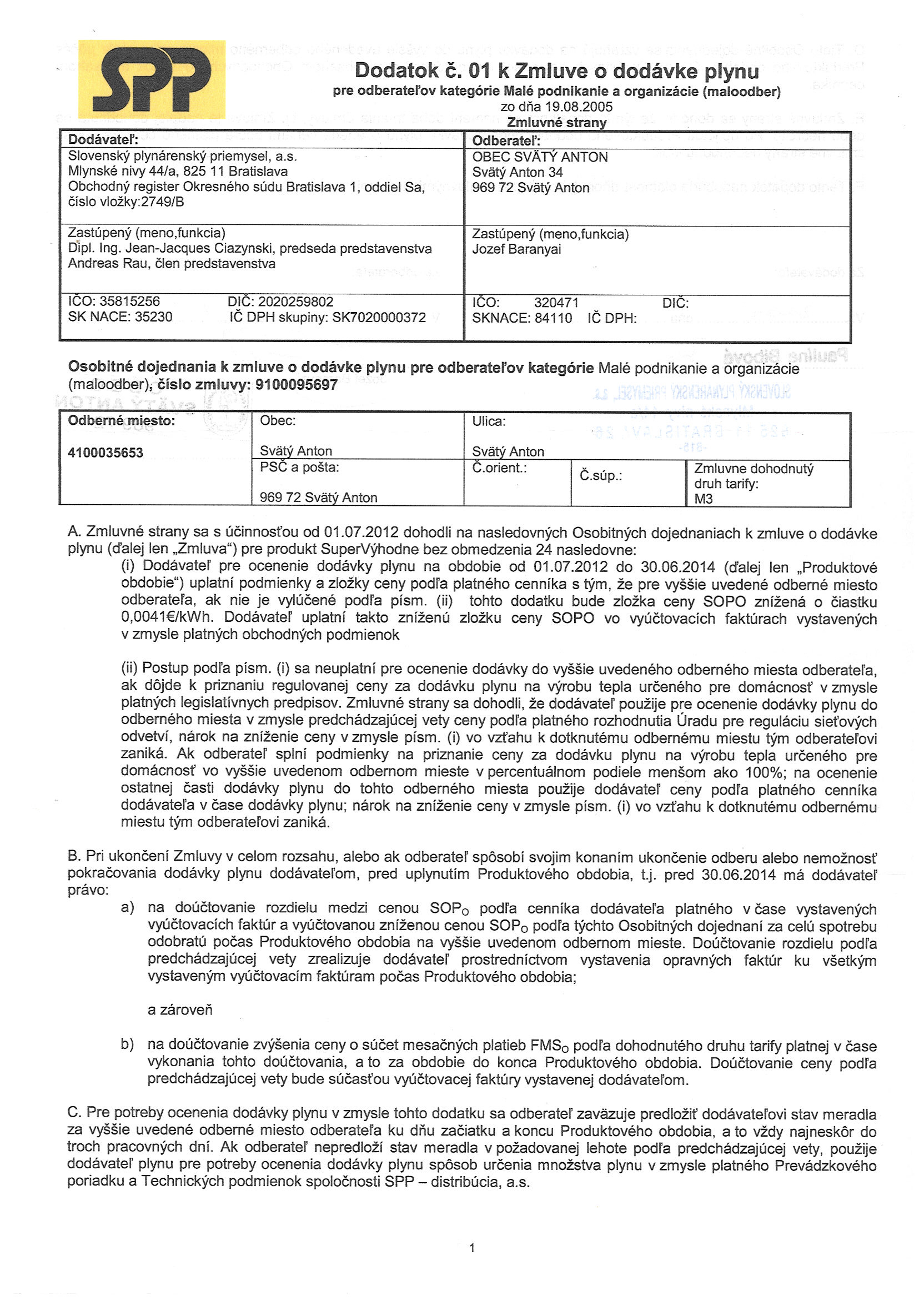 48/2012, SPP Bratislava, Dodatok č. 01 k Zmluve o dodávke plynu |