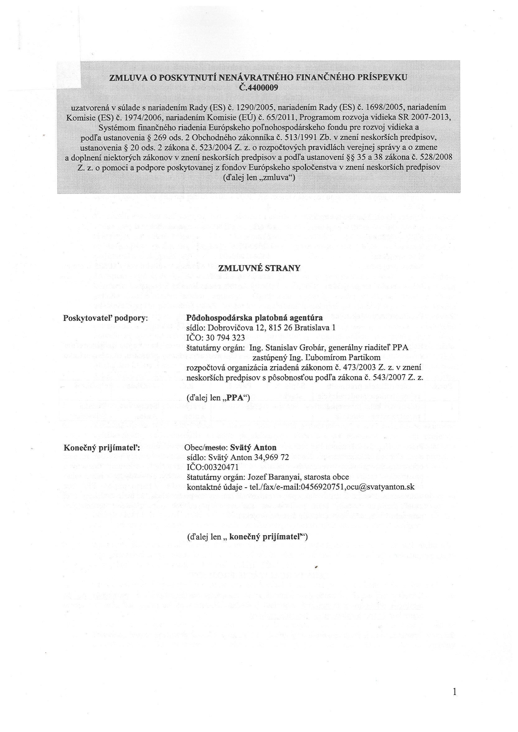 4400009, Pôdohospodárska platobná agentúra, Bratislava, Zmluva o poskytnutí nenávratného finančného príspevku |
