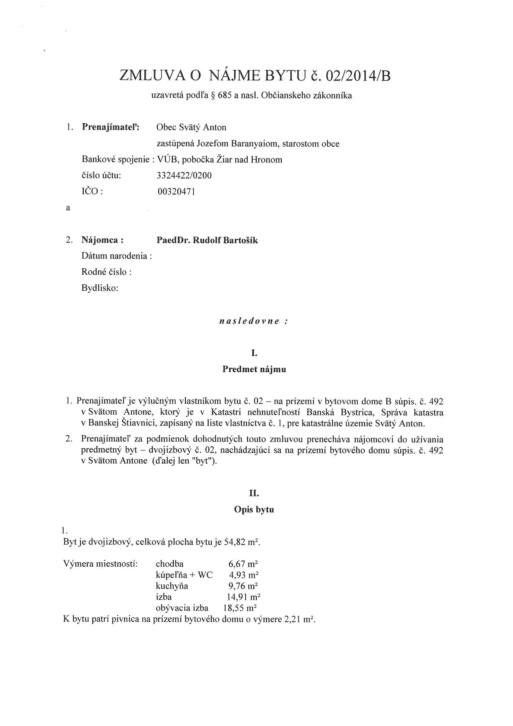 02/2014/B, PaedR. Rudolf Bartošík, Zmluva o nájme bytu |