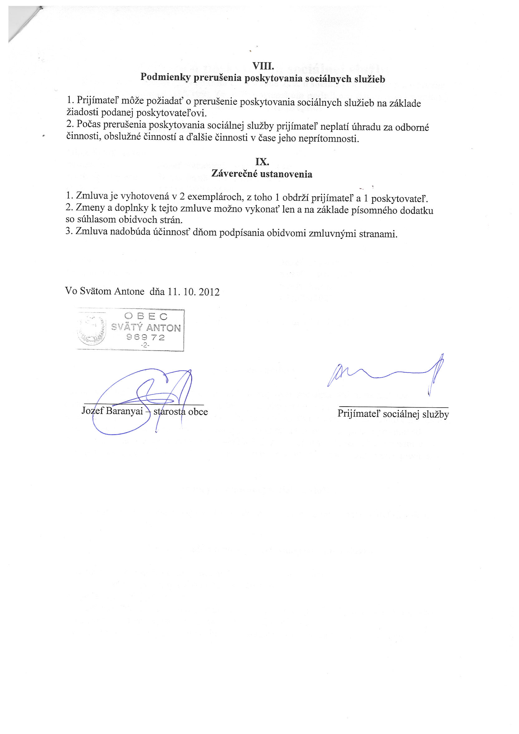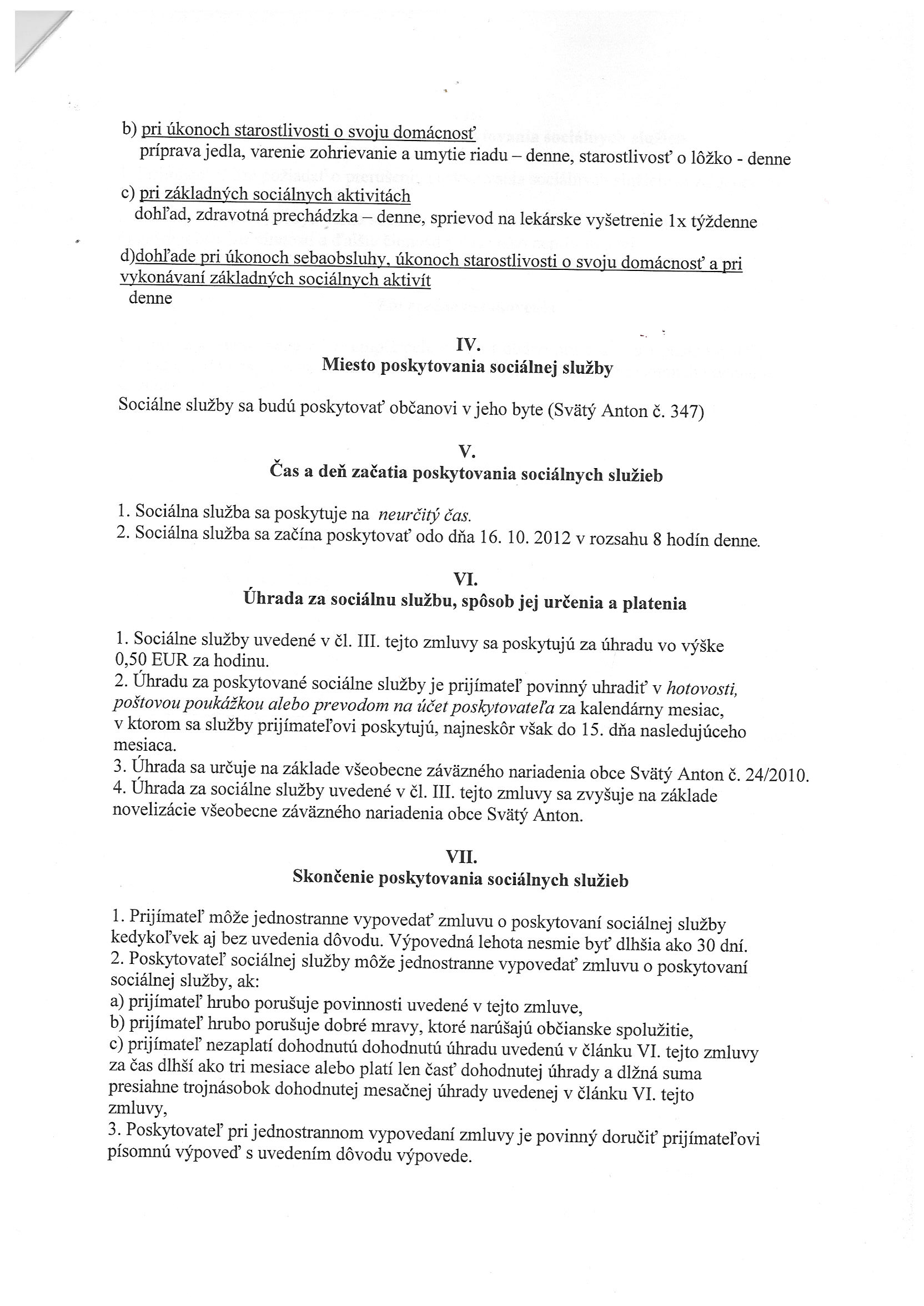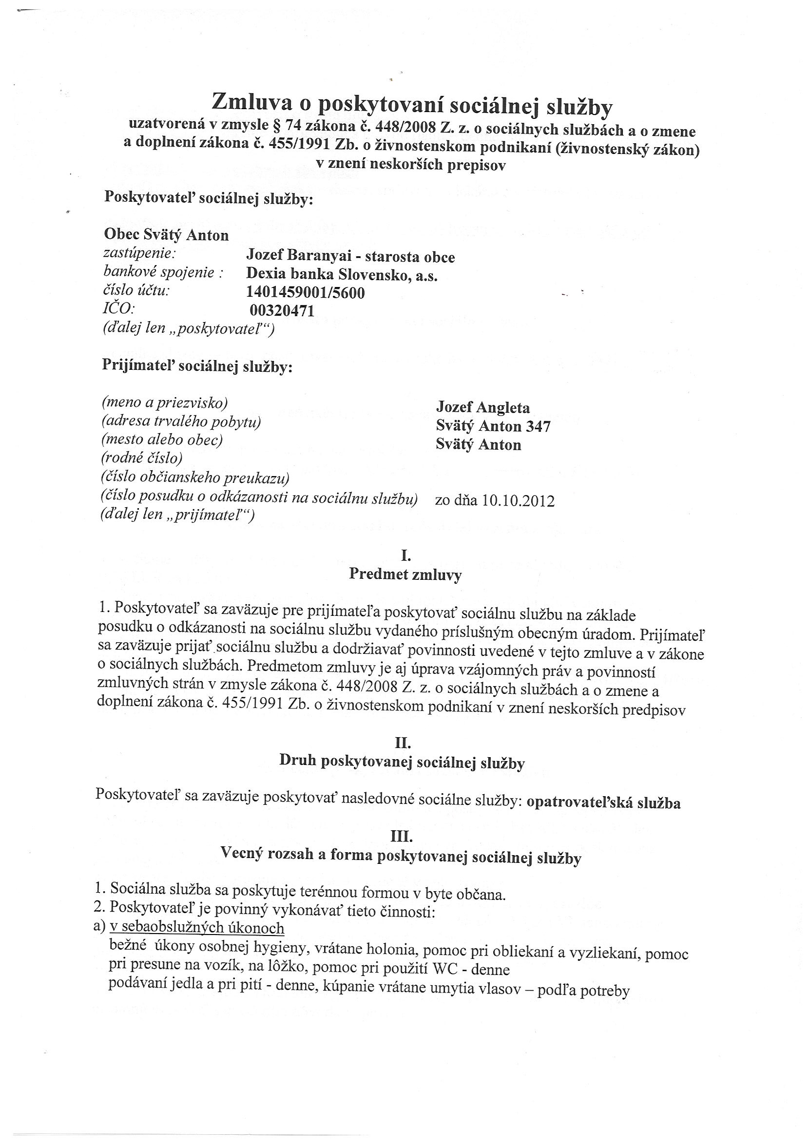60/2012, Jozef Angleta, Svätý Anton 347, Zmluva o poskytovaní sociálnej služby |