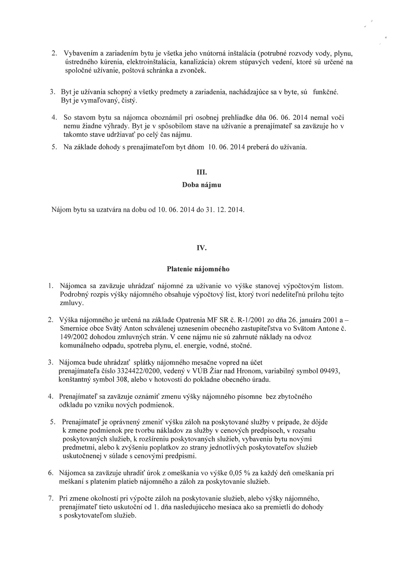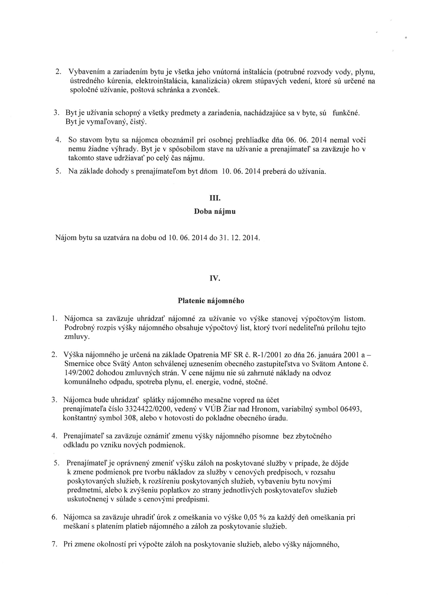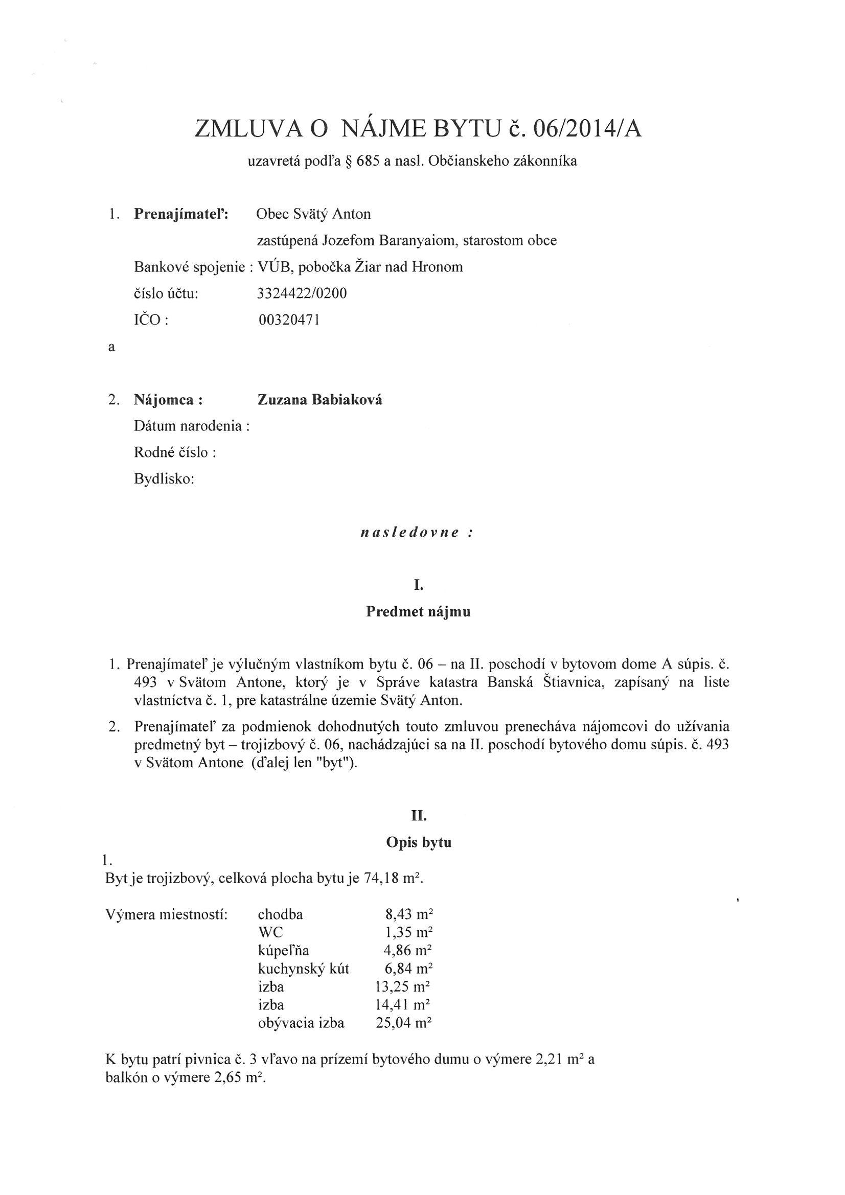 06/2014/A, Zuzana Babiaková, Zmluva o nájme bytu |
