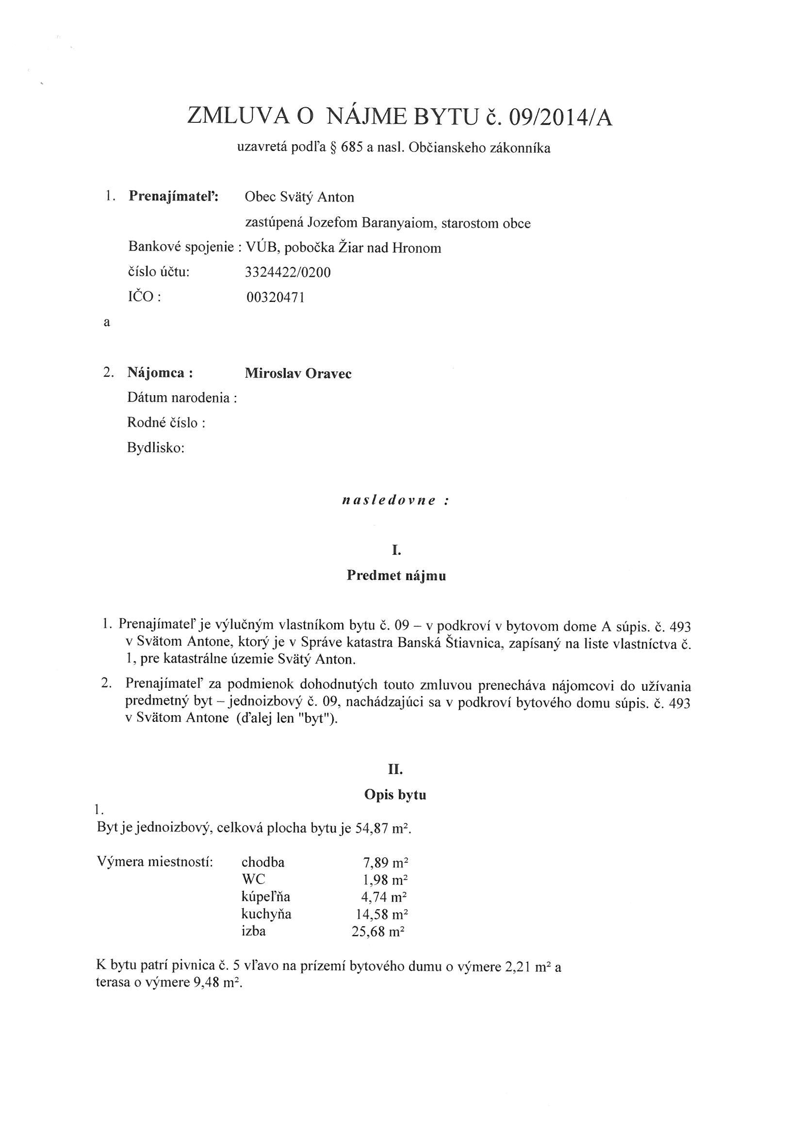 09/2014/A, Miroslav Oravec, Zmluva o nájme bytu |