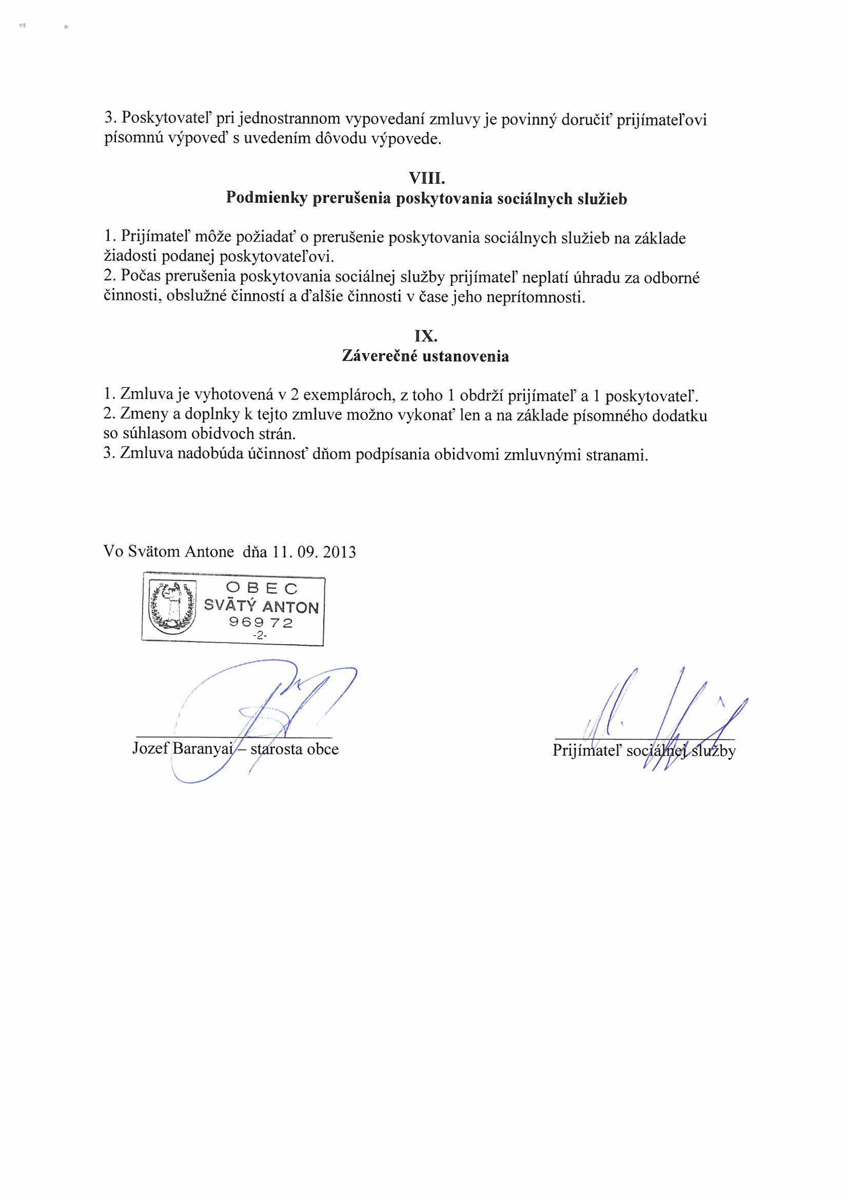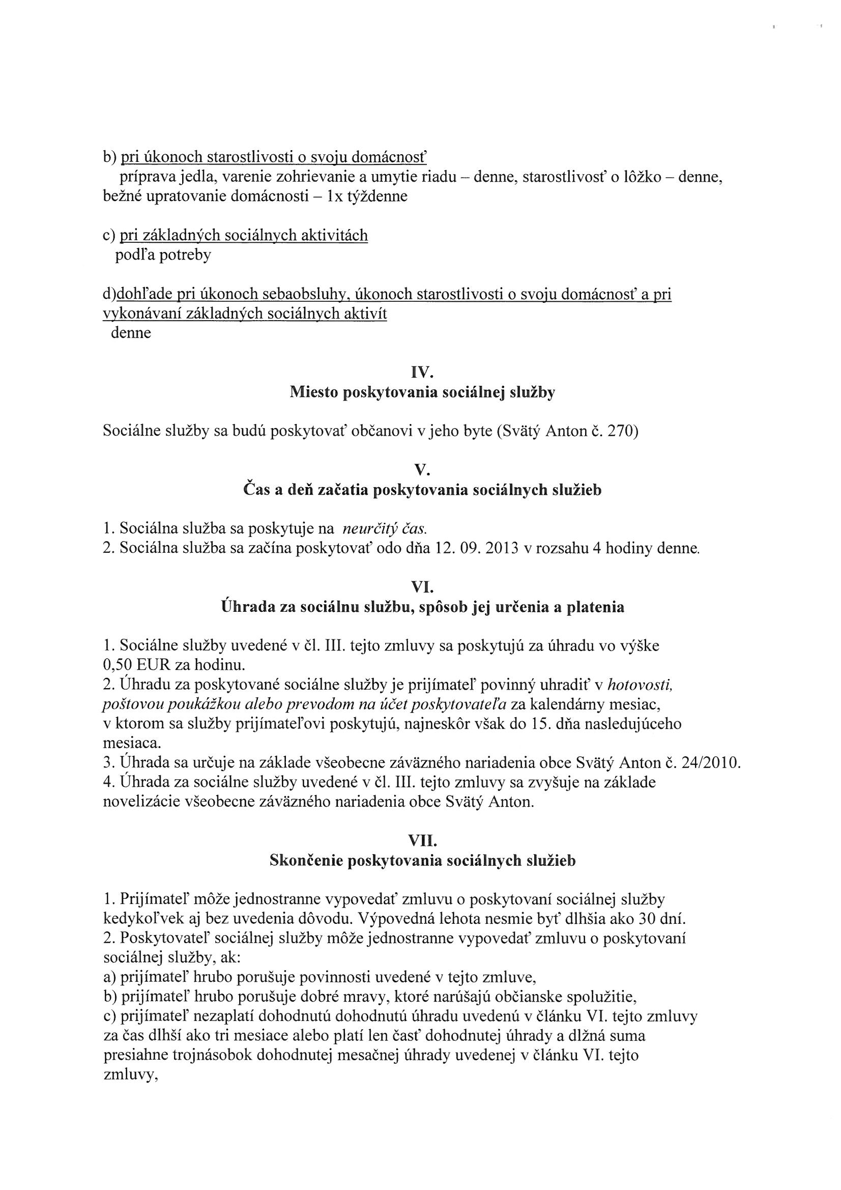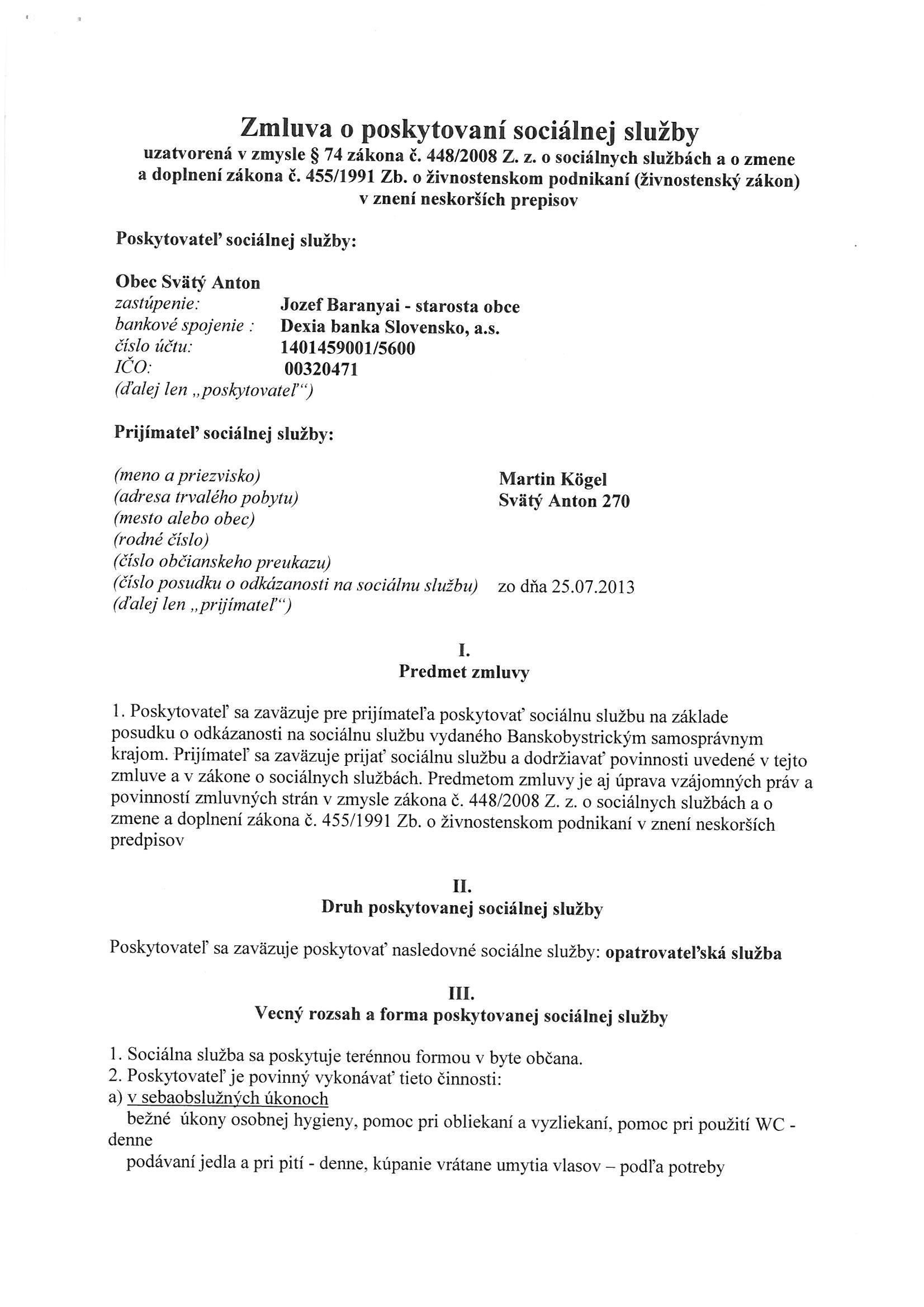 Z 35/2013, Martin Kogel, Svätý Anton 270, Zmluva o poskytnutí sociálnej služby. |