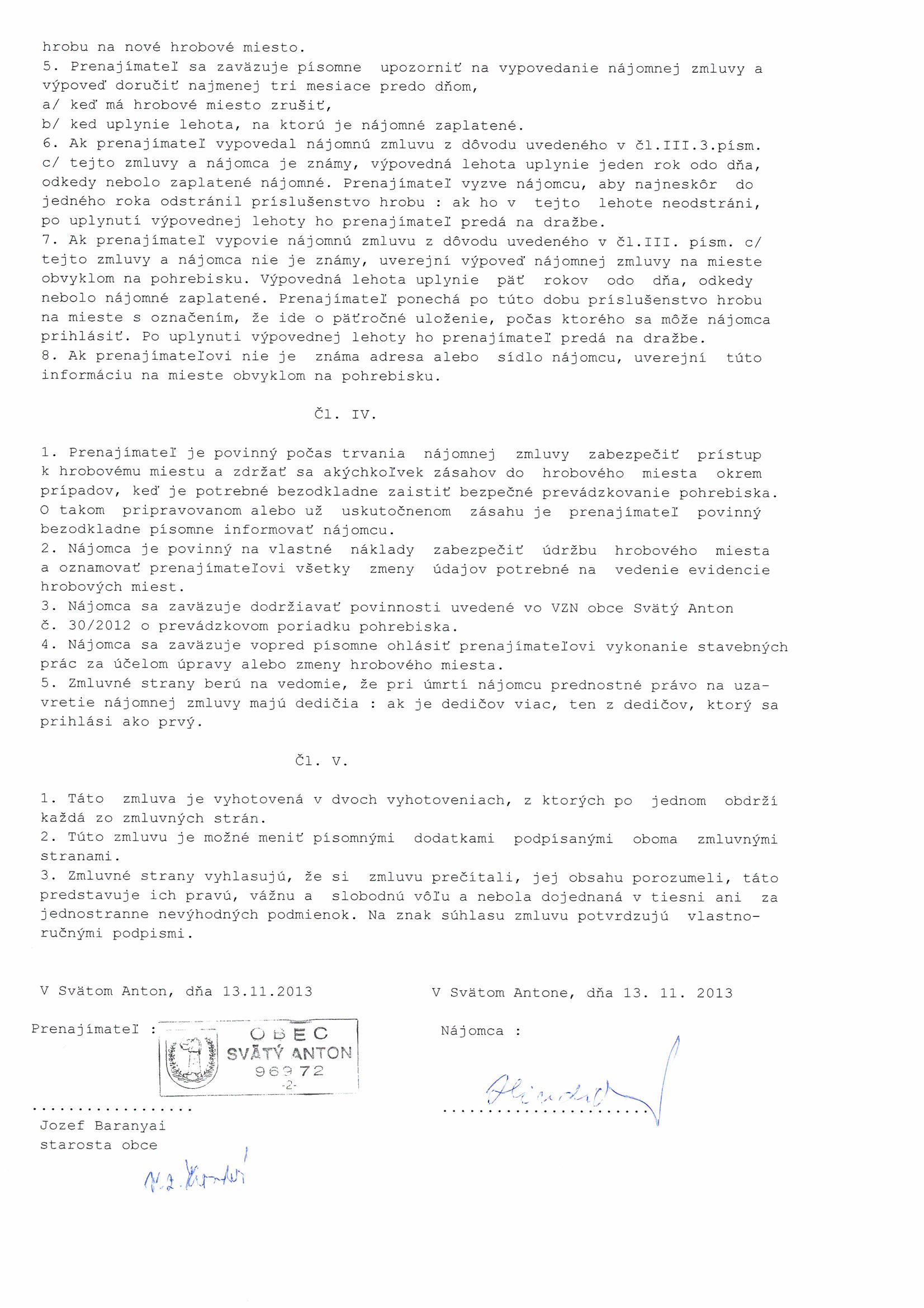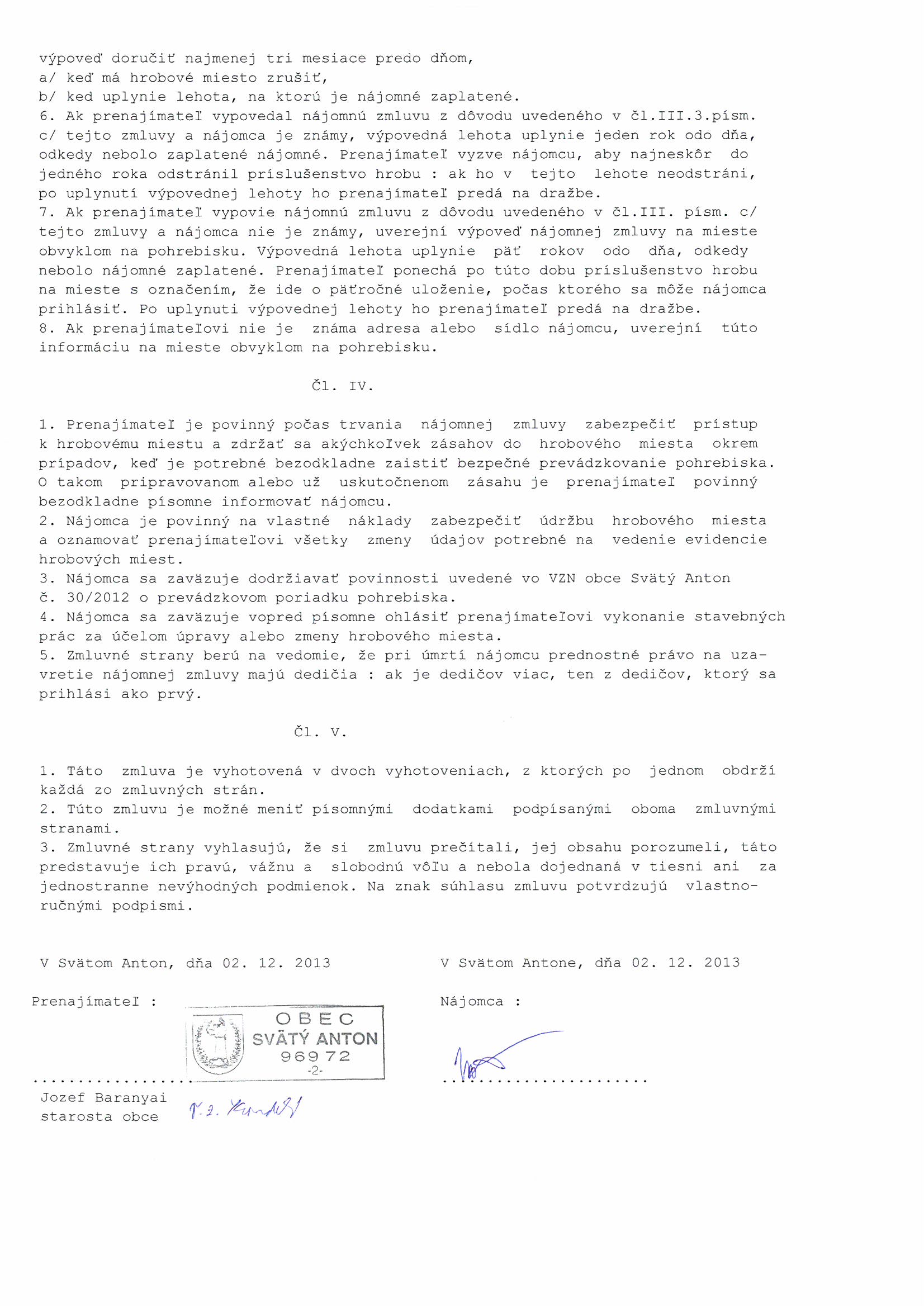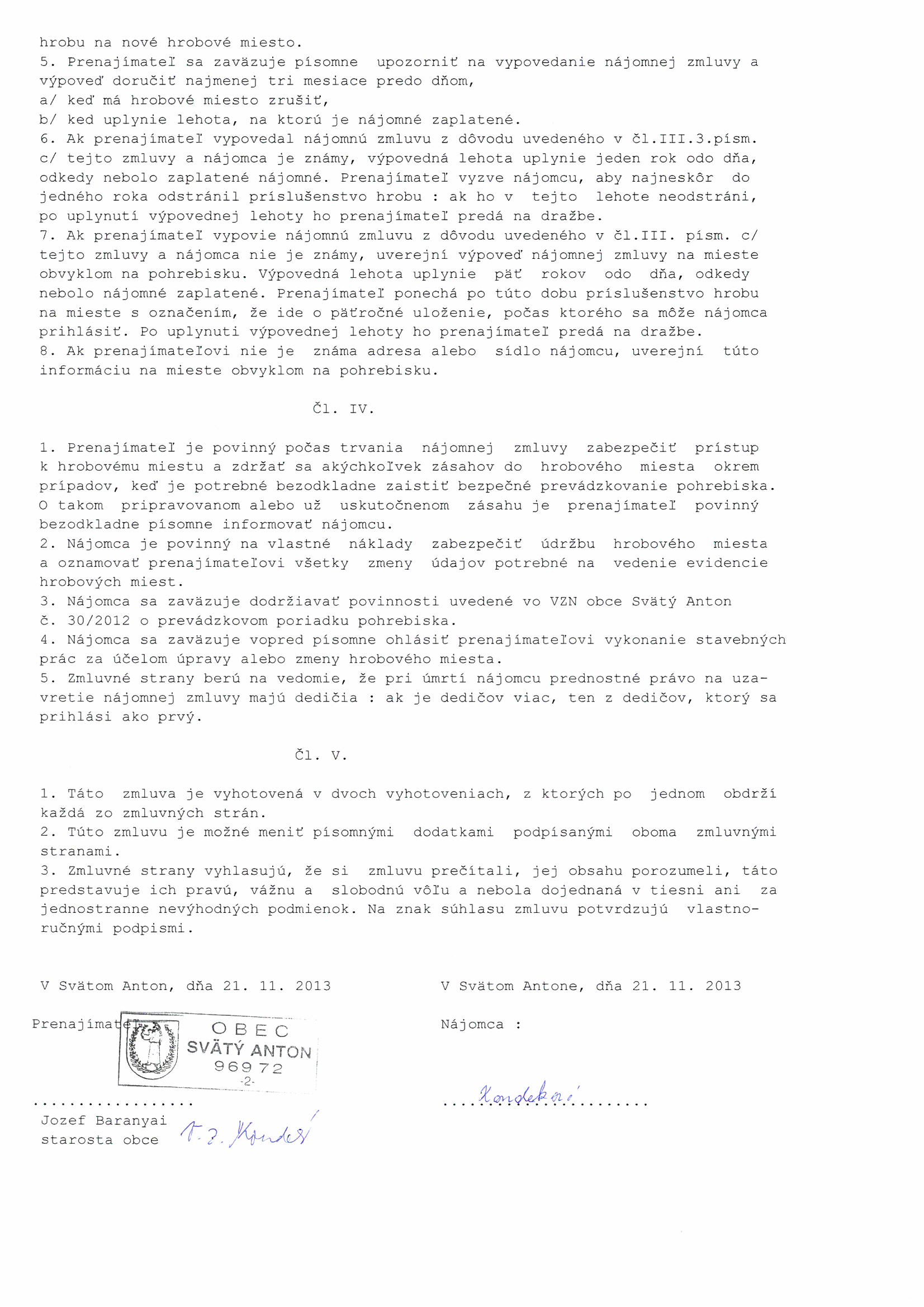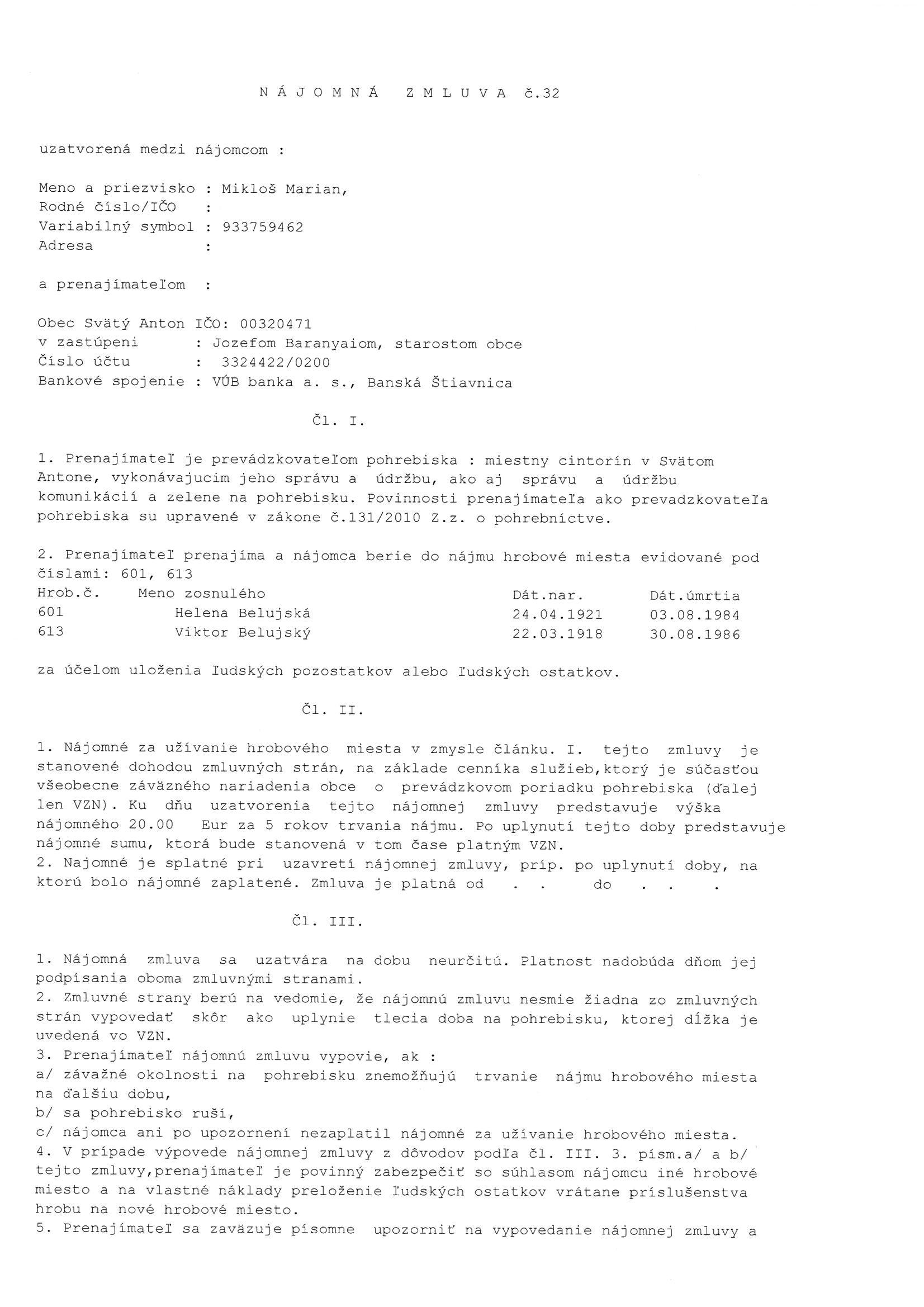 32, Marian Mikloš, Zmluva o prenájme hrobového miesta |