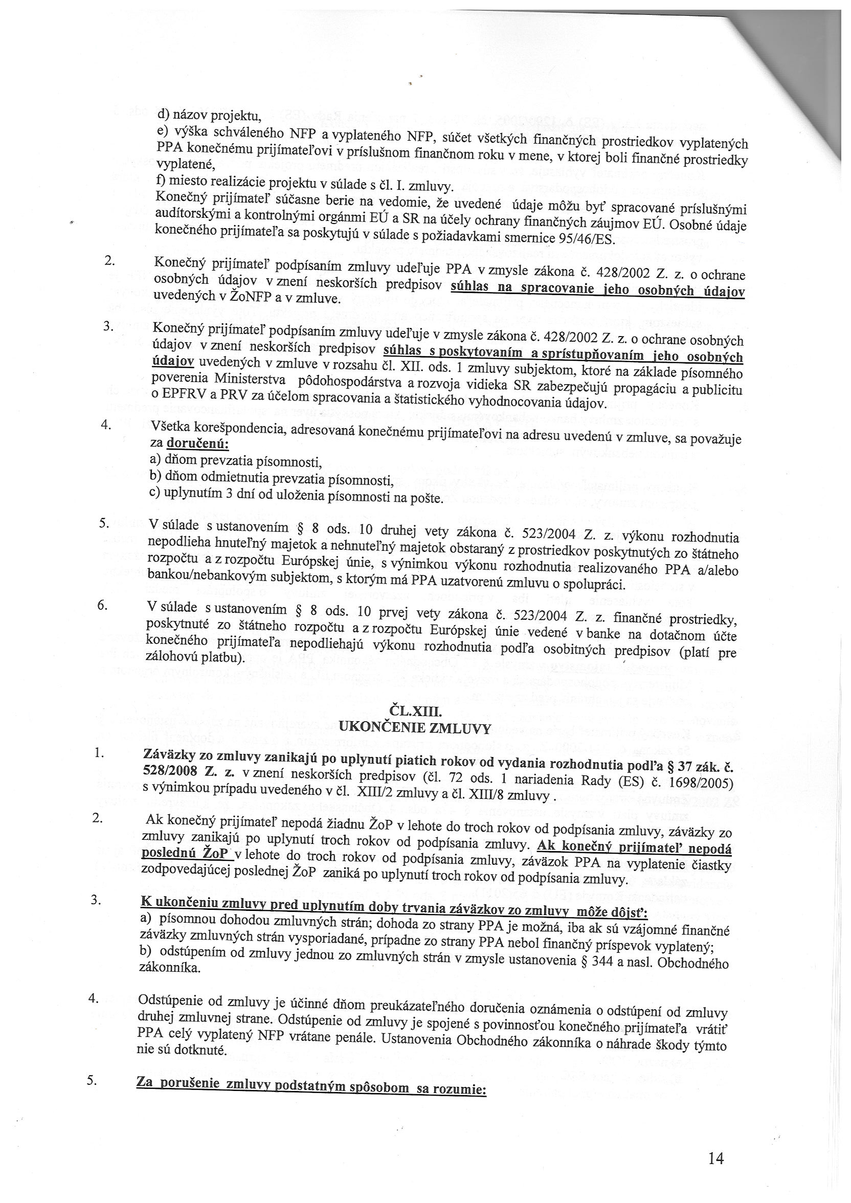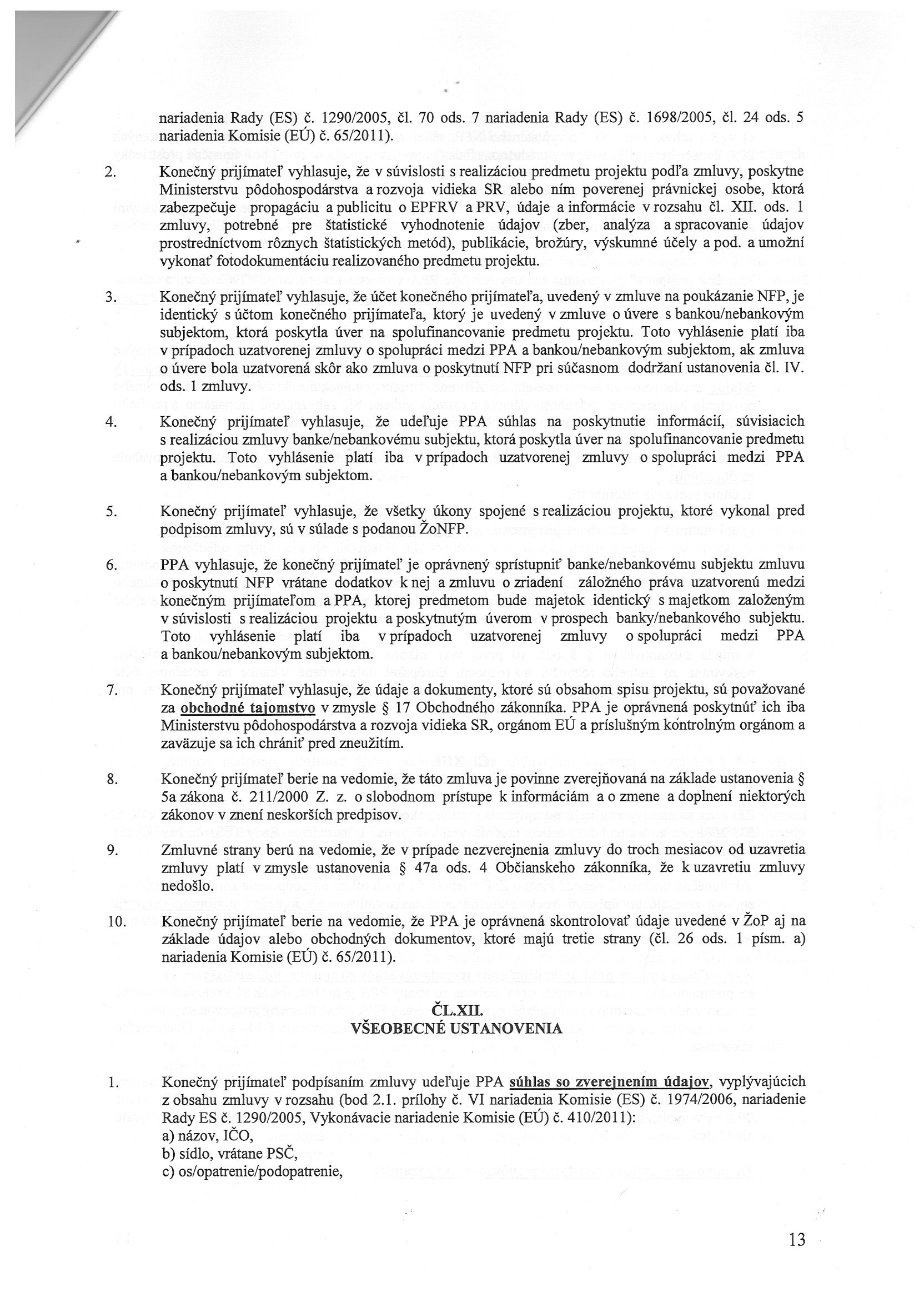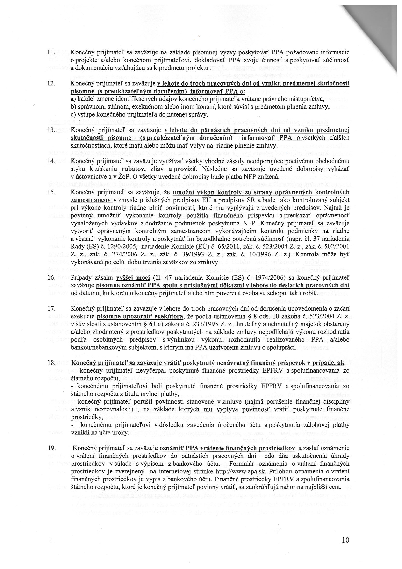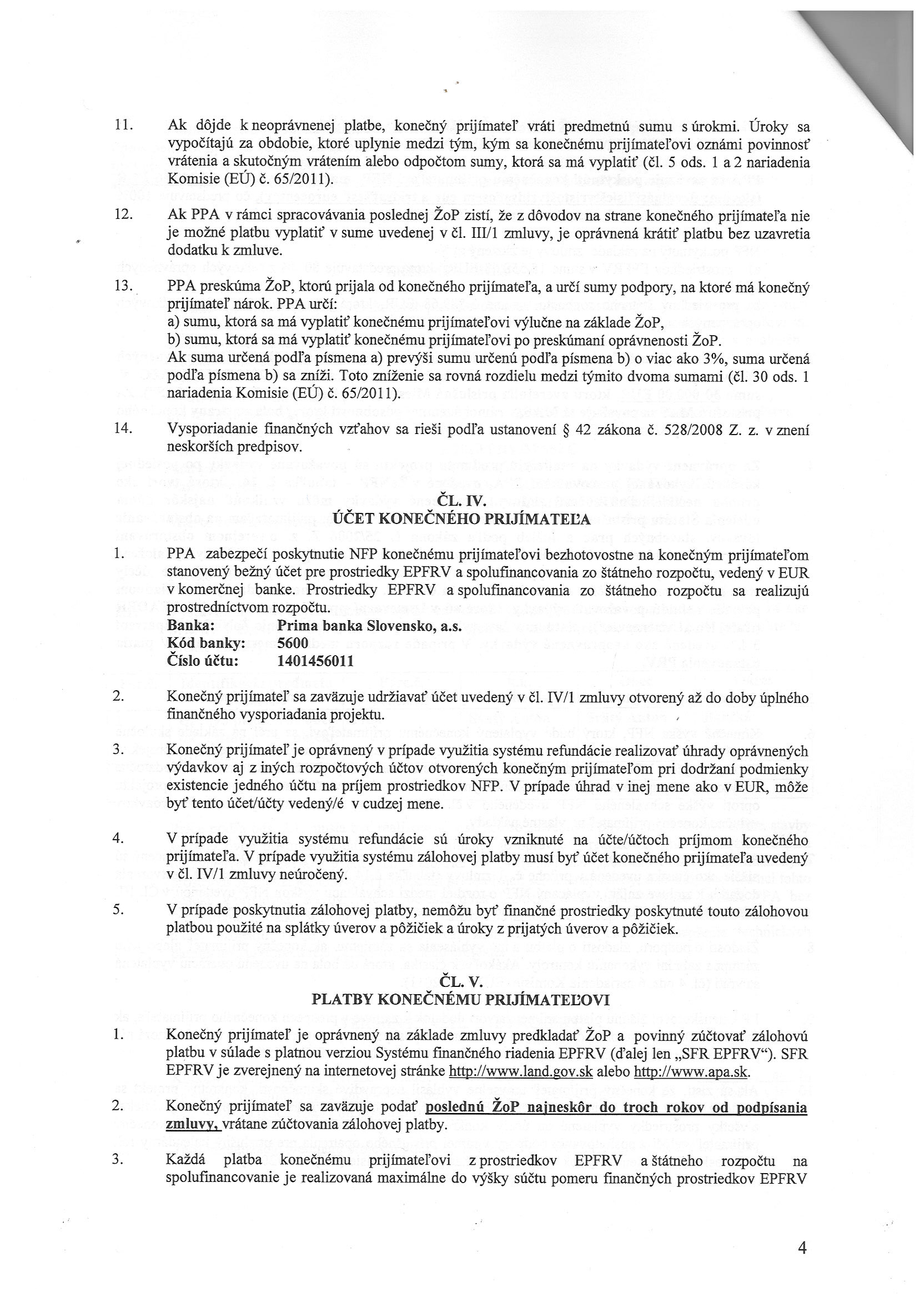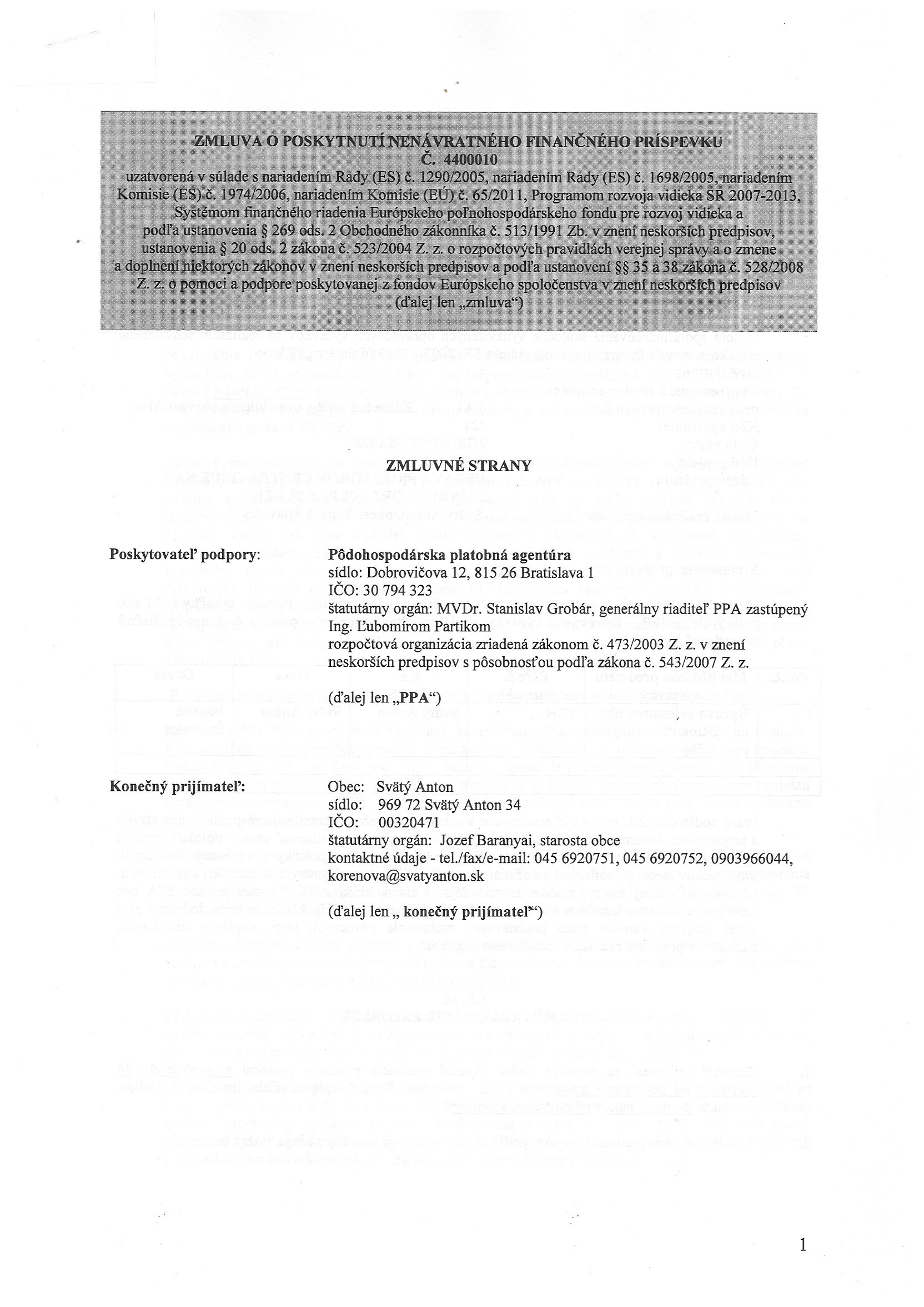 4400010, Pôdohospodárska platobná agentúra Bratislava, Zmluva o poskytnutí nenávratného finančného príspevku |