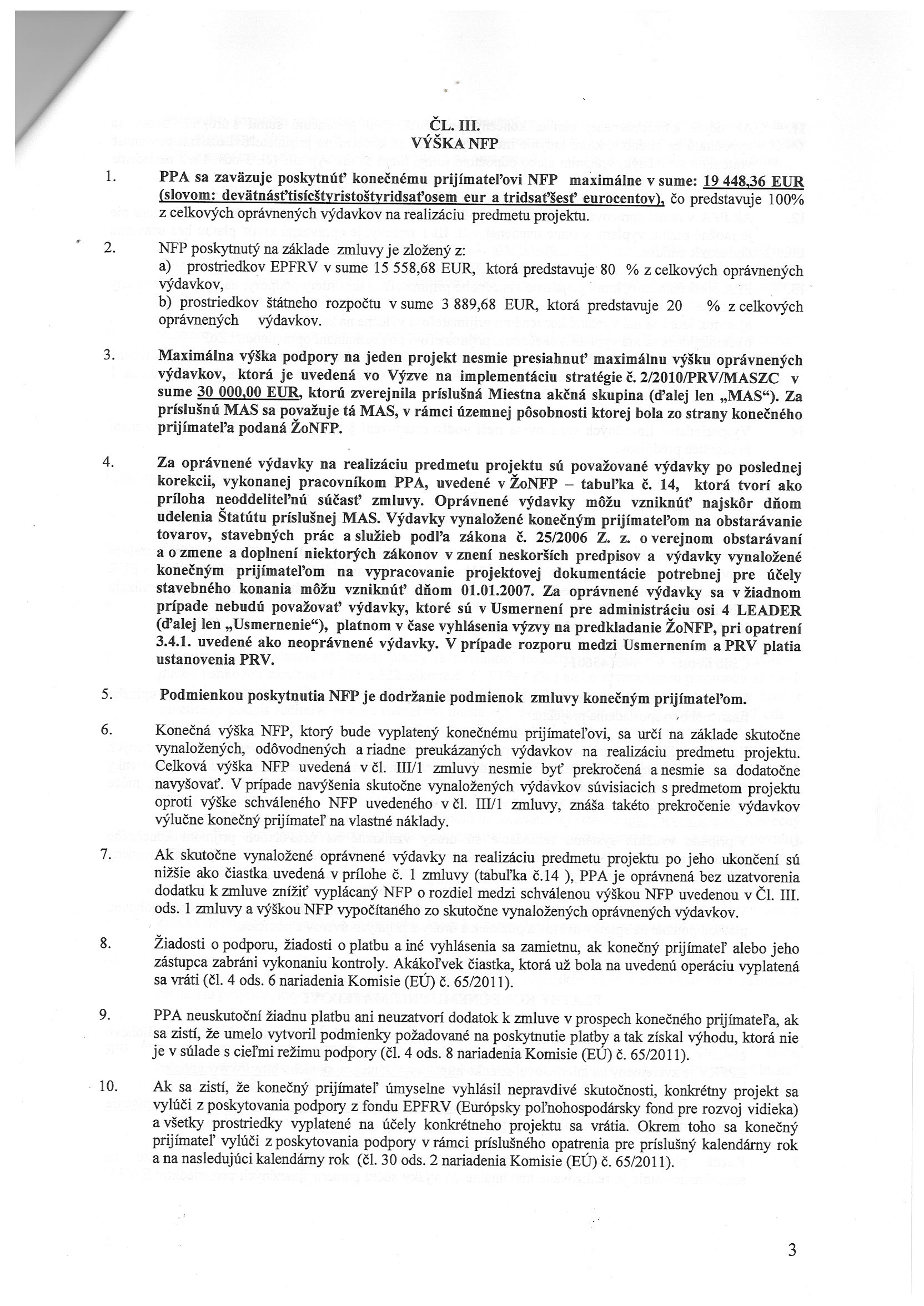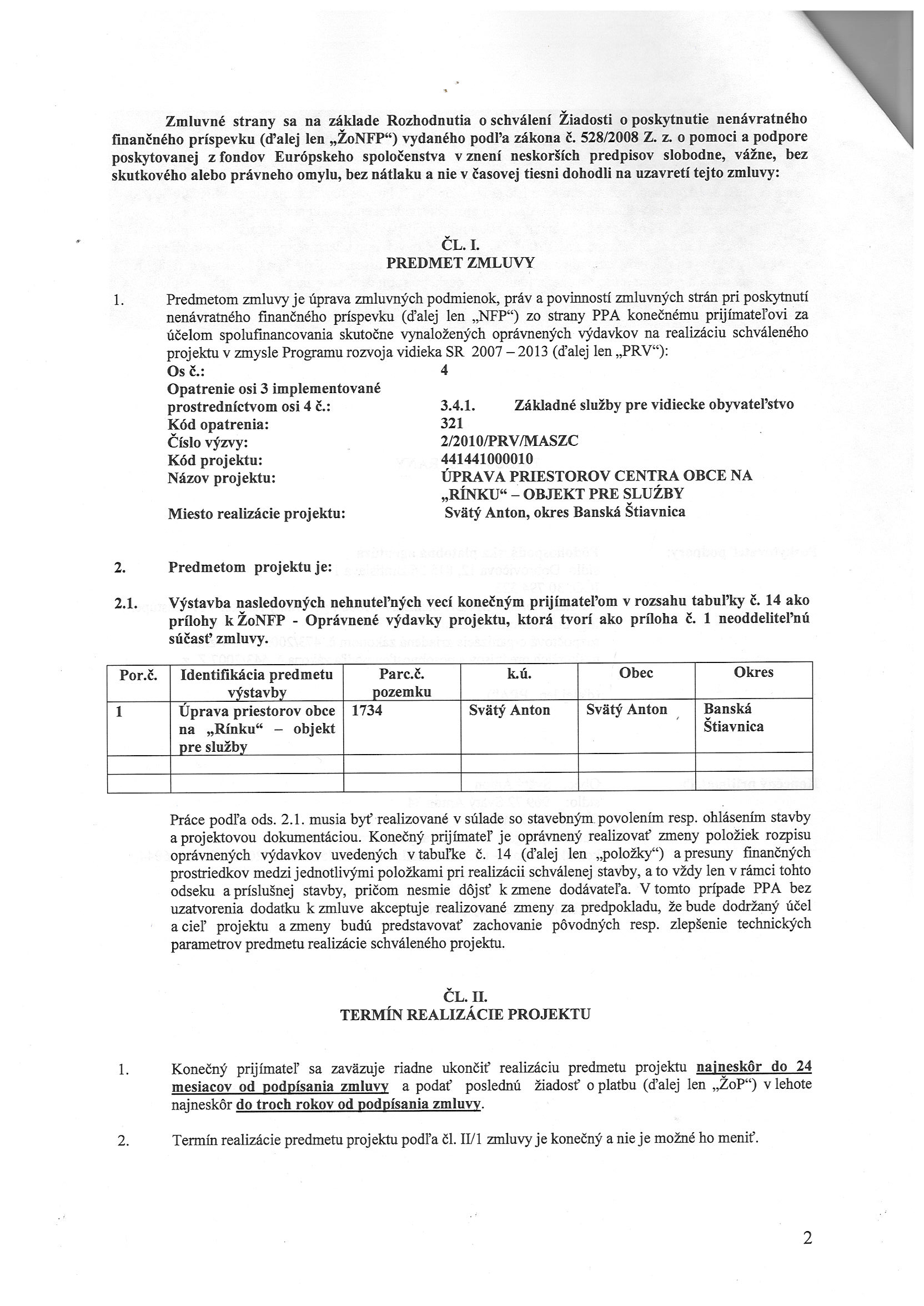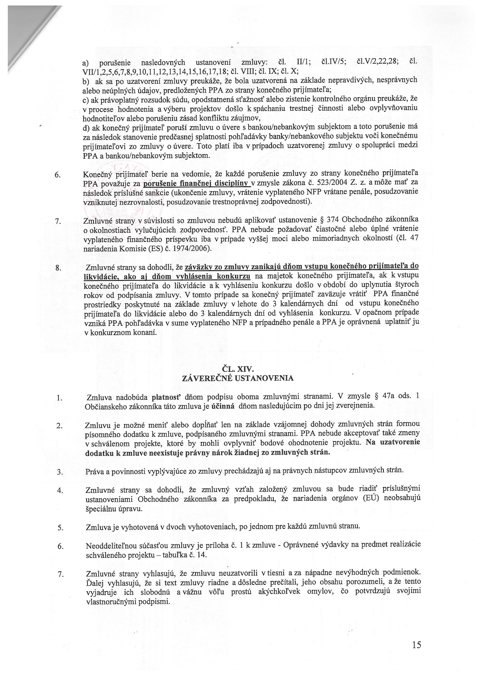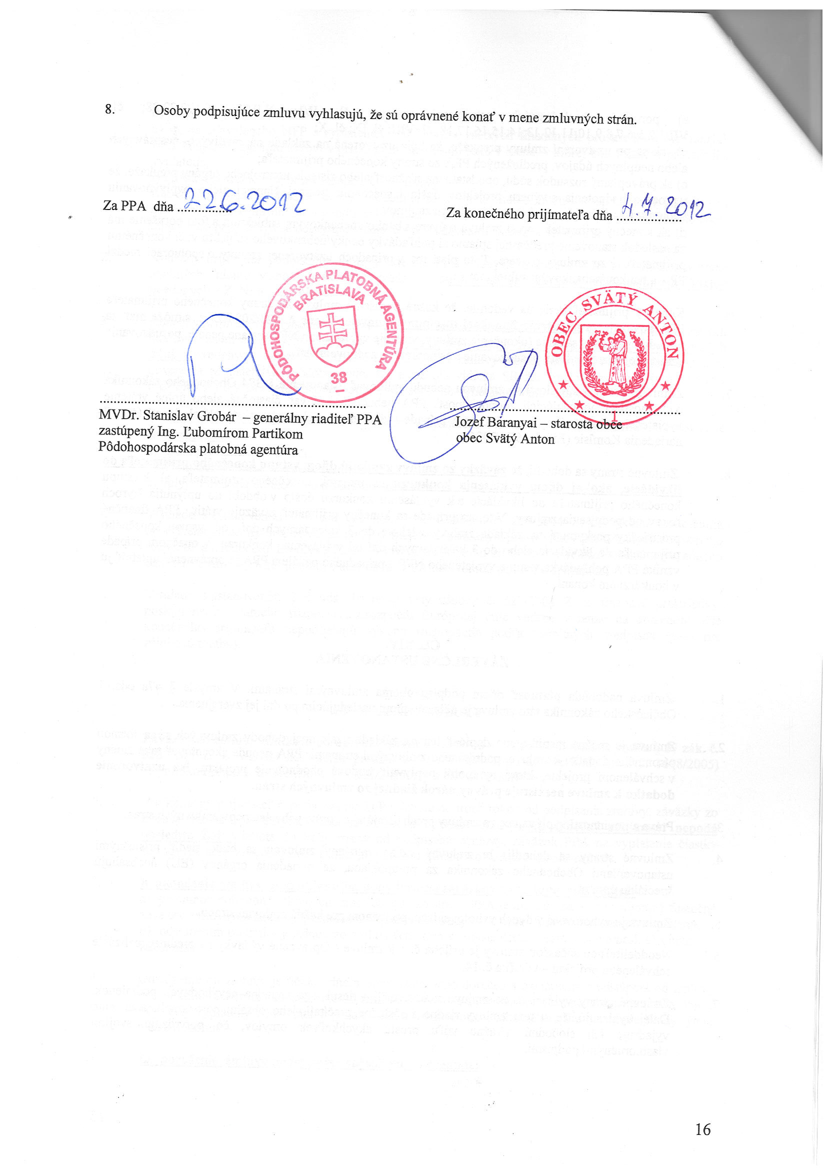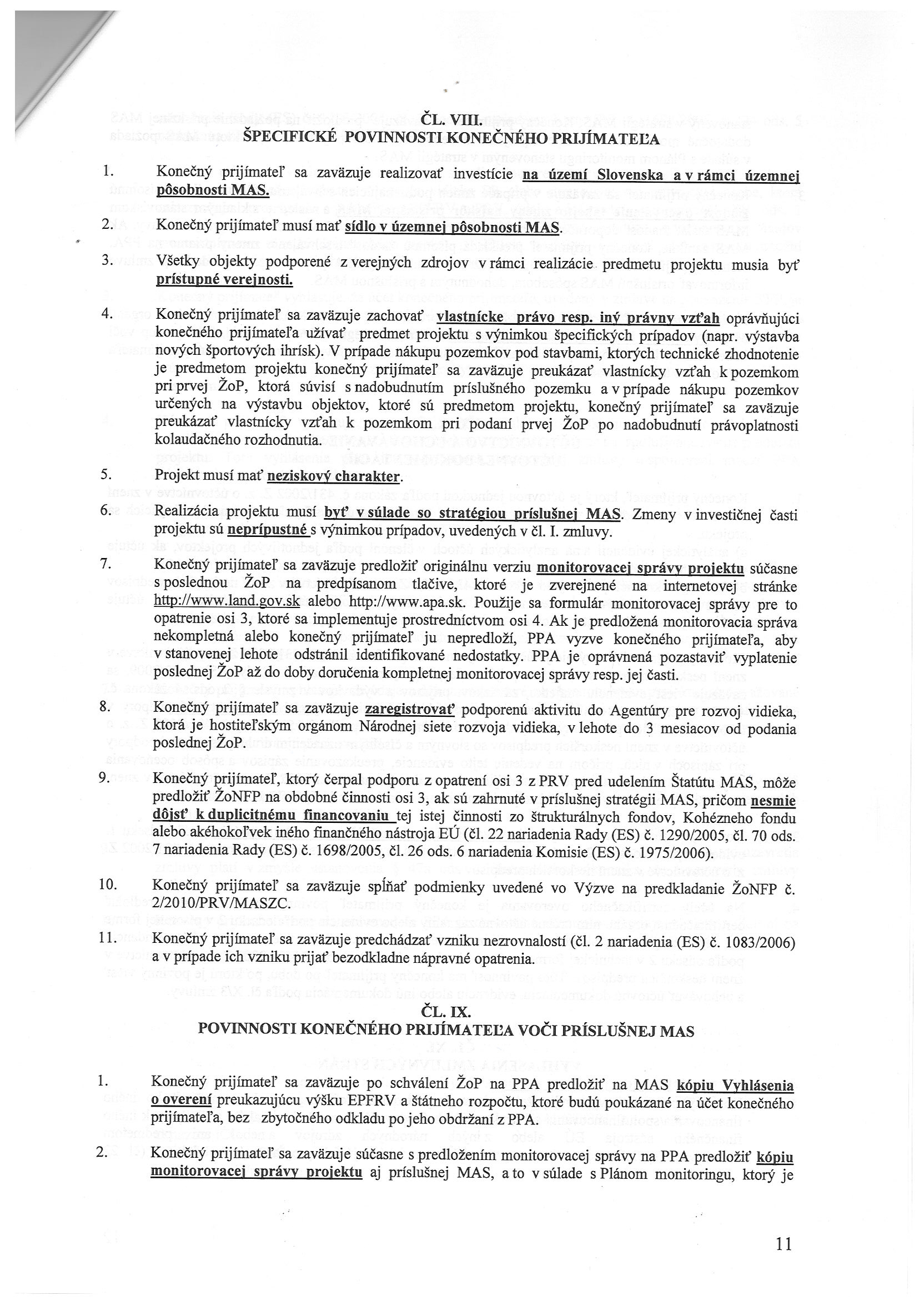4400010, Pôdohospodárska platobná agentúra Bratislava, Zmluva o poskytnutí nenávratného finančného príspevku |