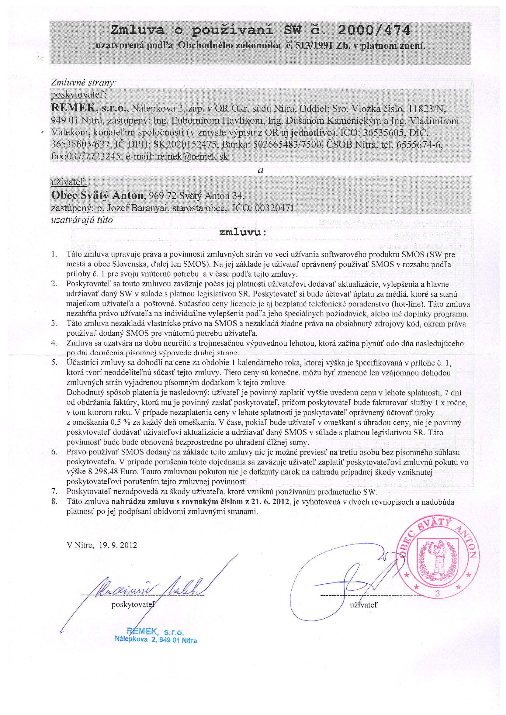 2000/474, Remek, s. r. o. Nitra, Zmluva o používaní SW |