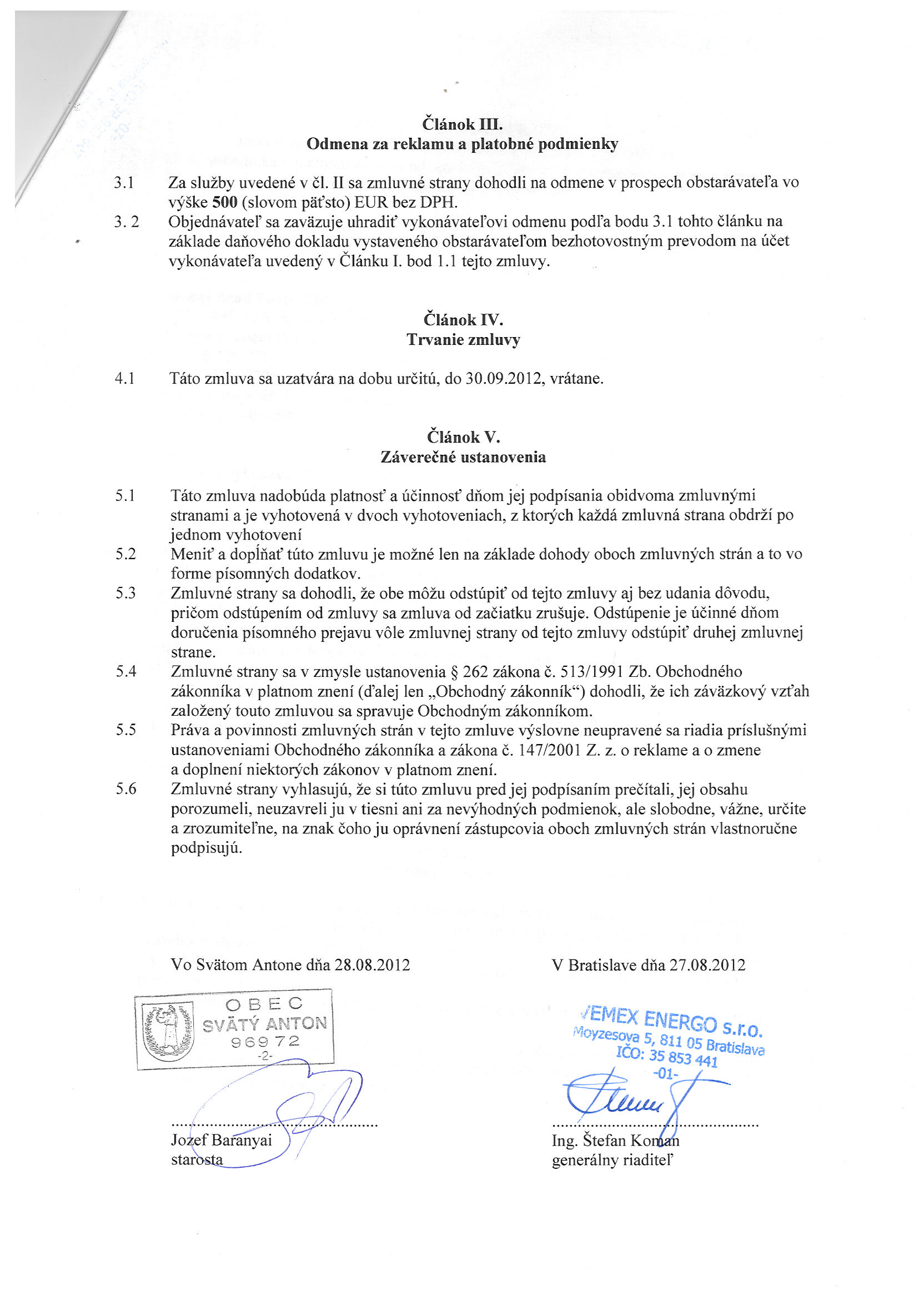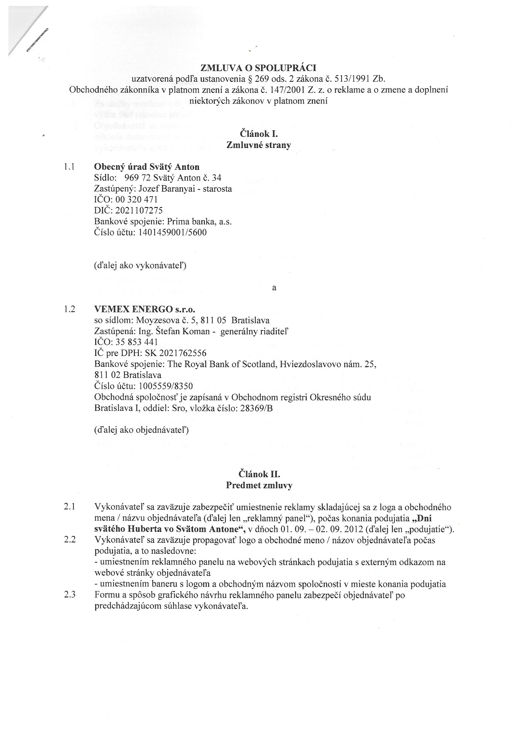 57/2012, VEMEX ENERGO, s. r. o. Bratislava, Zmluva o spolupráci |